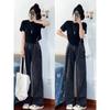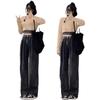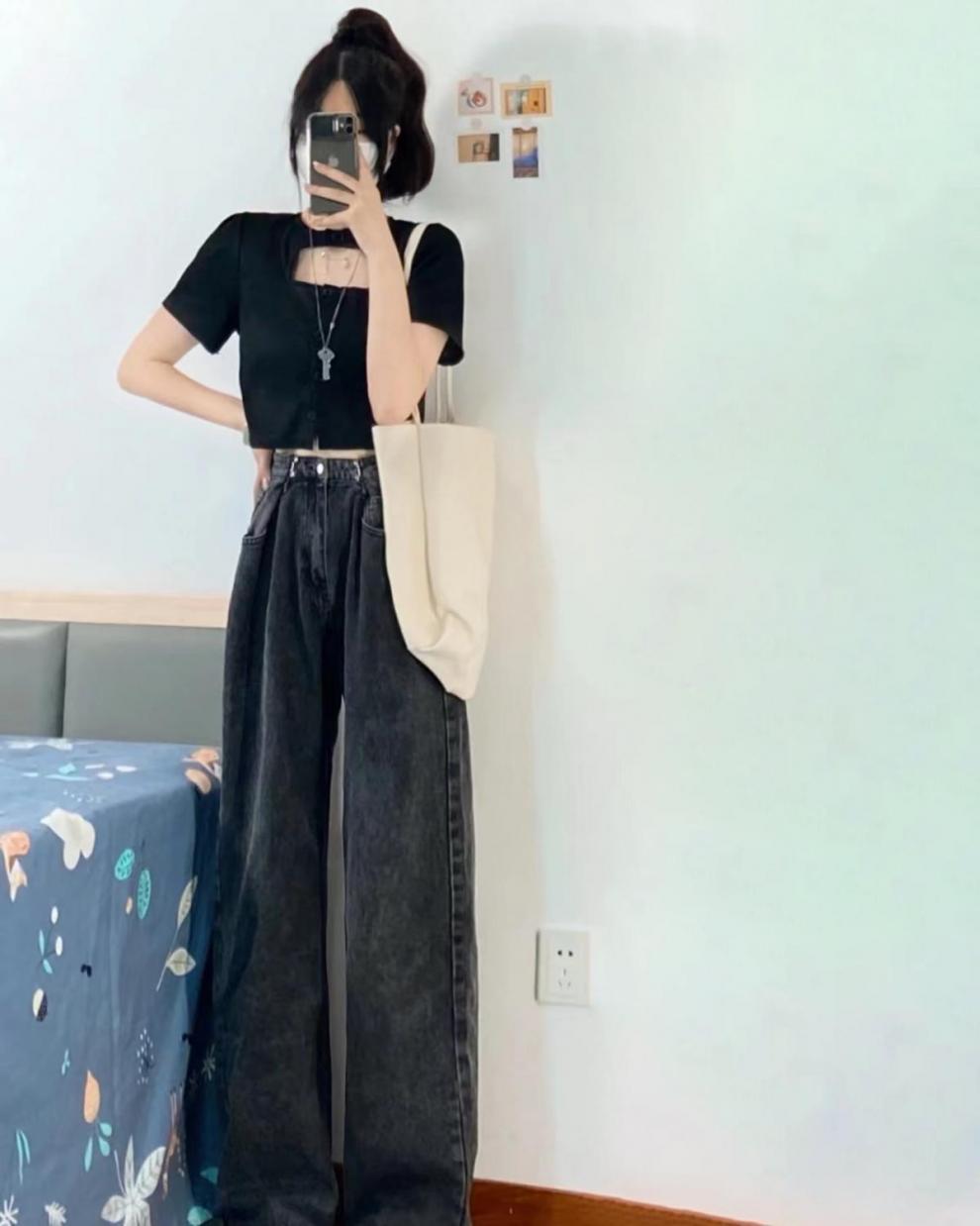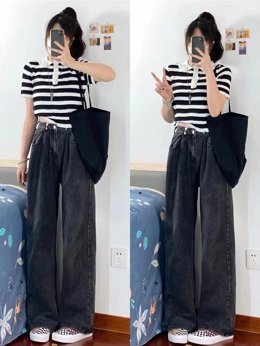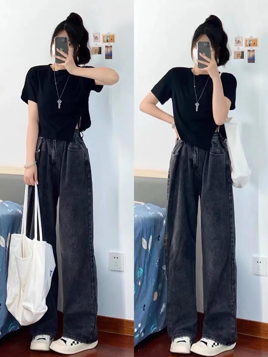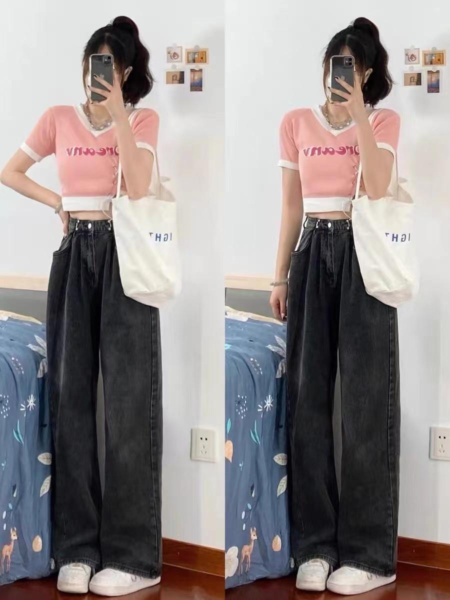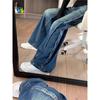 Jeans Ajustables de Talla Grande para Mujeres Gorditas mm Nuevos Pantalones Sueltos Rectos hasta el Piso de Pierna Ancha Retro de Cintura Alta Pantalones Slim