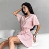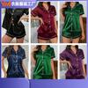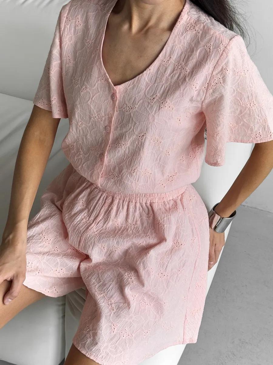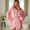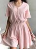 Nuevo Cárdigan de Punto con Cuello en V Europeo y Americano Transfronterizo, Top de Manga Corta con Botones, Shorts, Conjunto de Dos Piezas, Suave y Delicado con la Piel, Ropa de Casa para Mujer