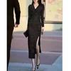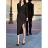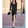 9926 Damei Ai Yuan 2025 Primavera Nuevo Vestido Cuello en V Ajustado Bodycon Abertura Vestido Midi para Mujer