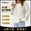 Suéter Europeo y Americano Retro Estilo Lazy Cable Grueso Transfronterizo Color Sólido Tejido Suave Otoño e Invierno Cuello Redondo Suéter Pulóver para Mujer