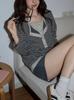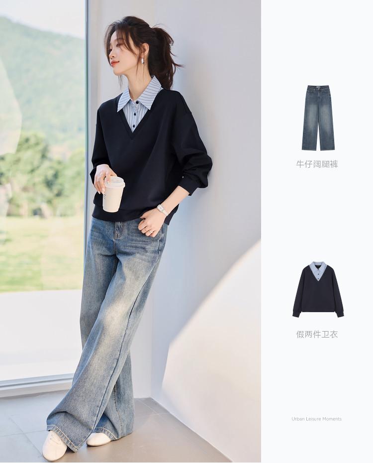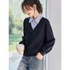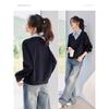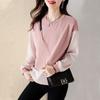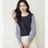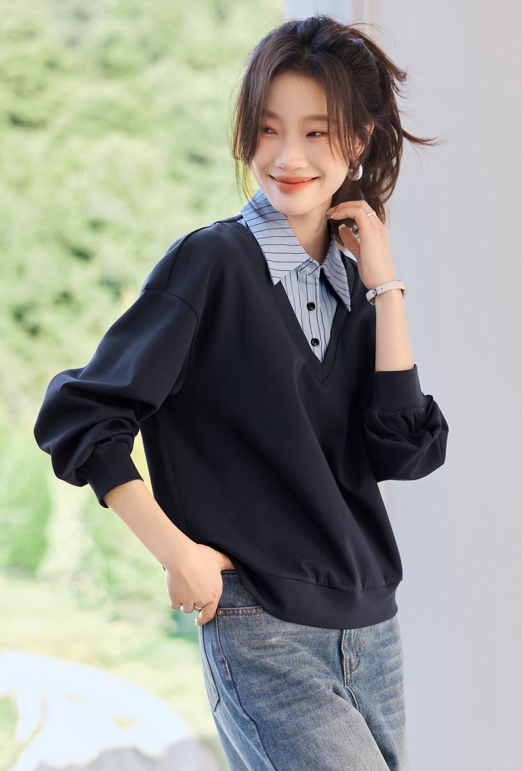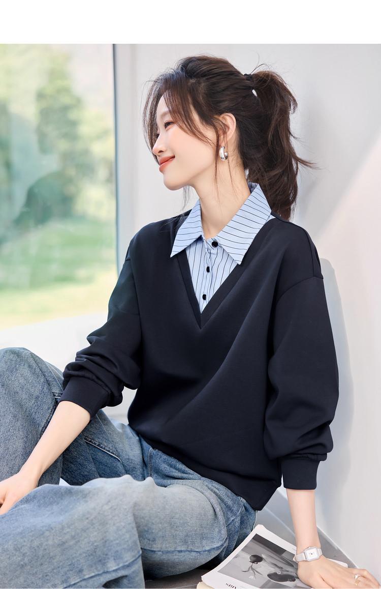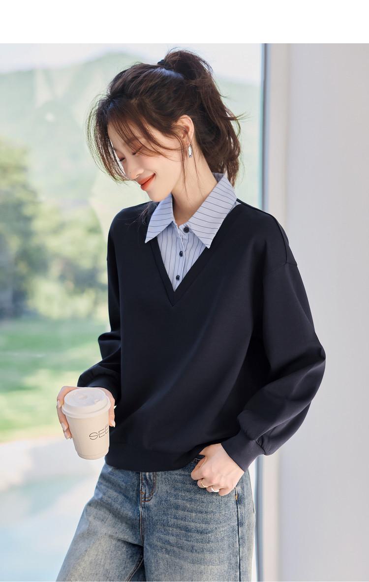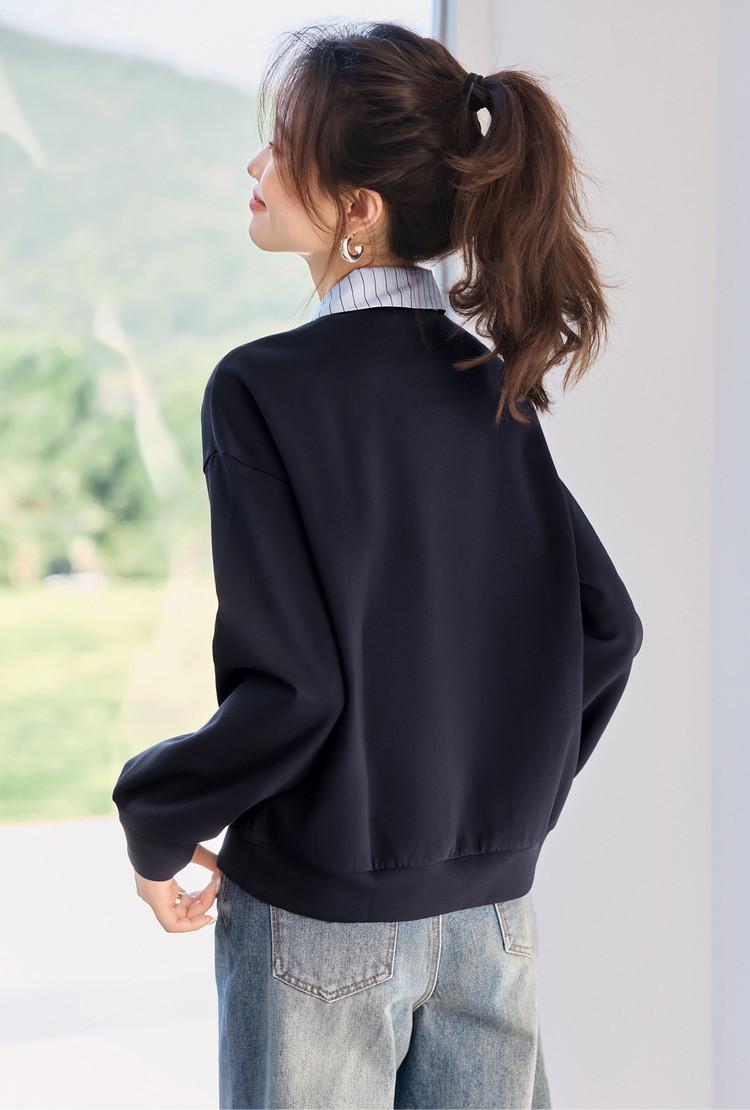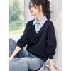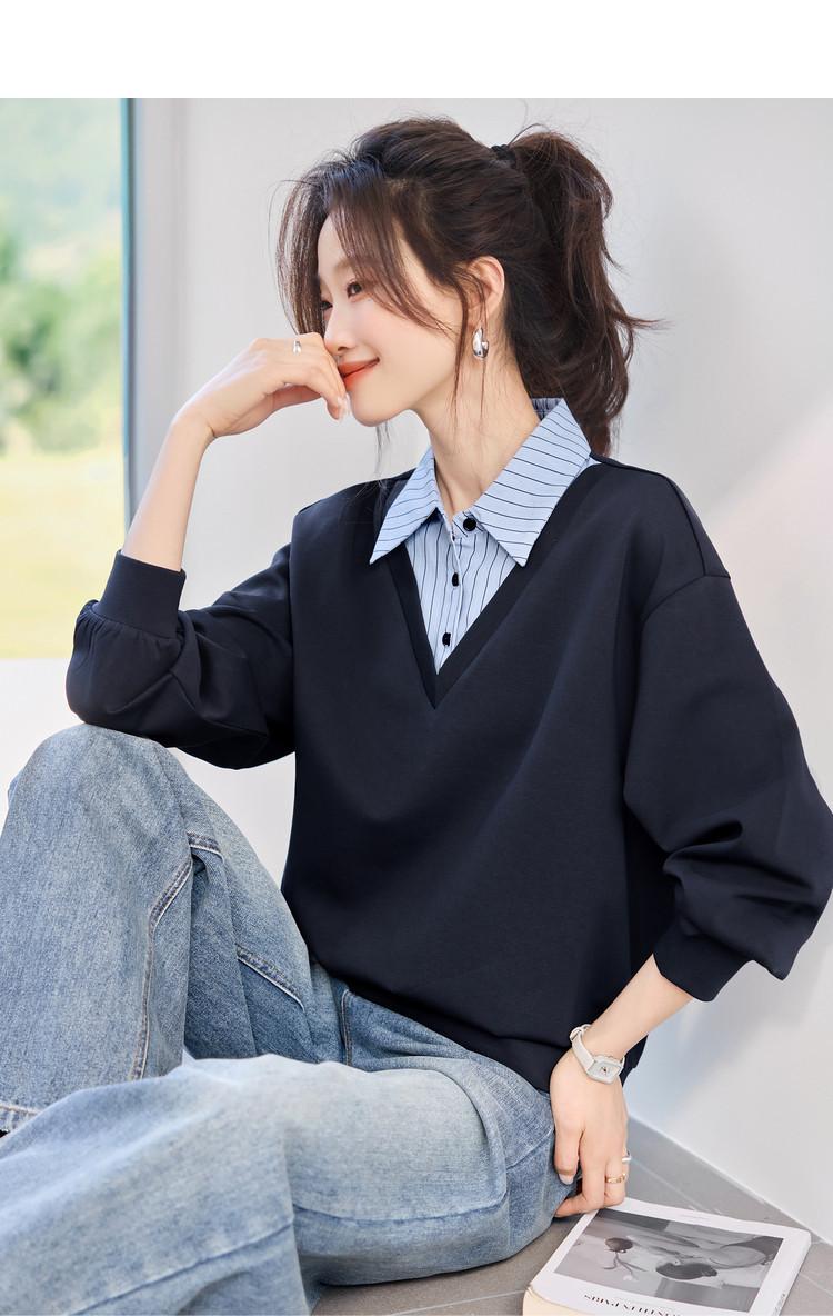 Suéteres de Solapa de Dos Piezas Falsas a Rayas con Costuras de Moda Estilo Coreano 2025 Primavera Nuevo Jersey Suelto