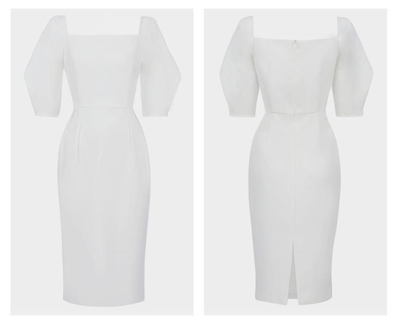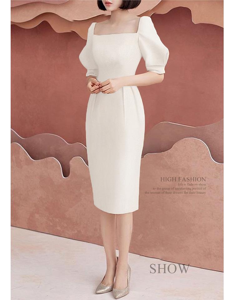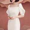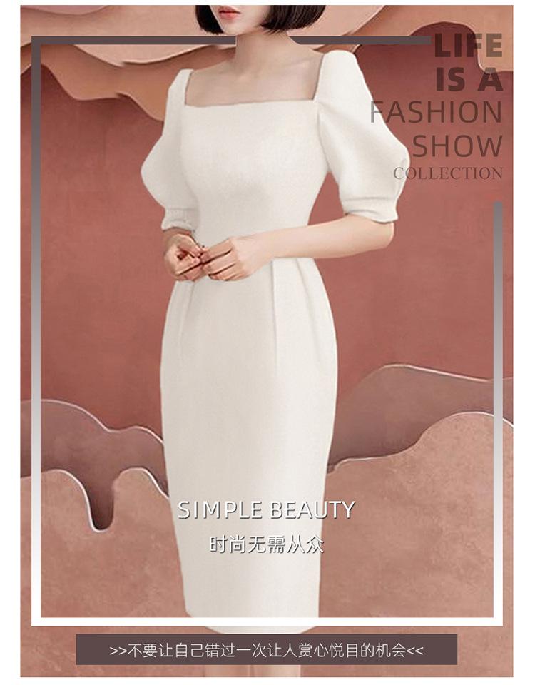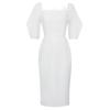 Nuevo Vestido Negro Corto Retro Francés 2020 Vestido Elegante de Celebridad Cuello Cuadrado Manga Abullonada Vestido de Cintura Alta Vestido Midi