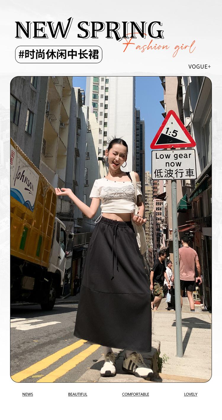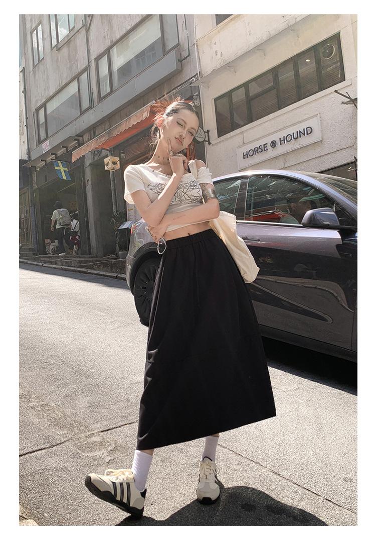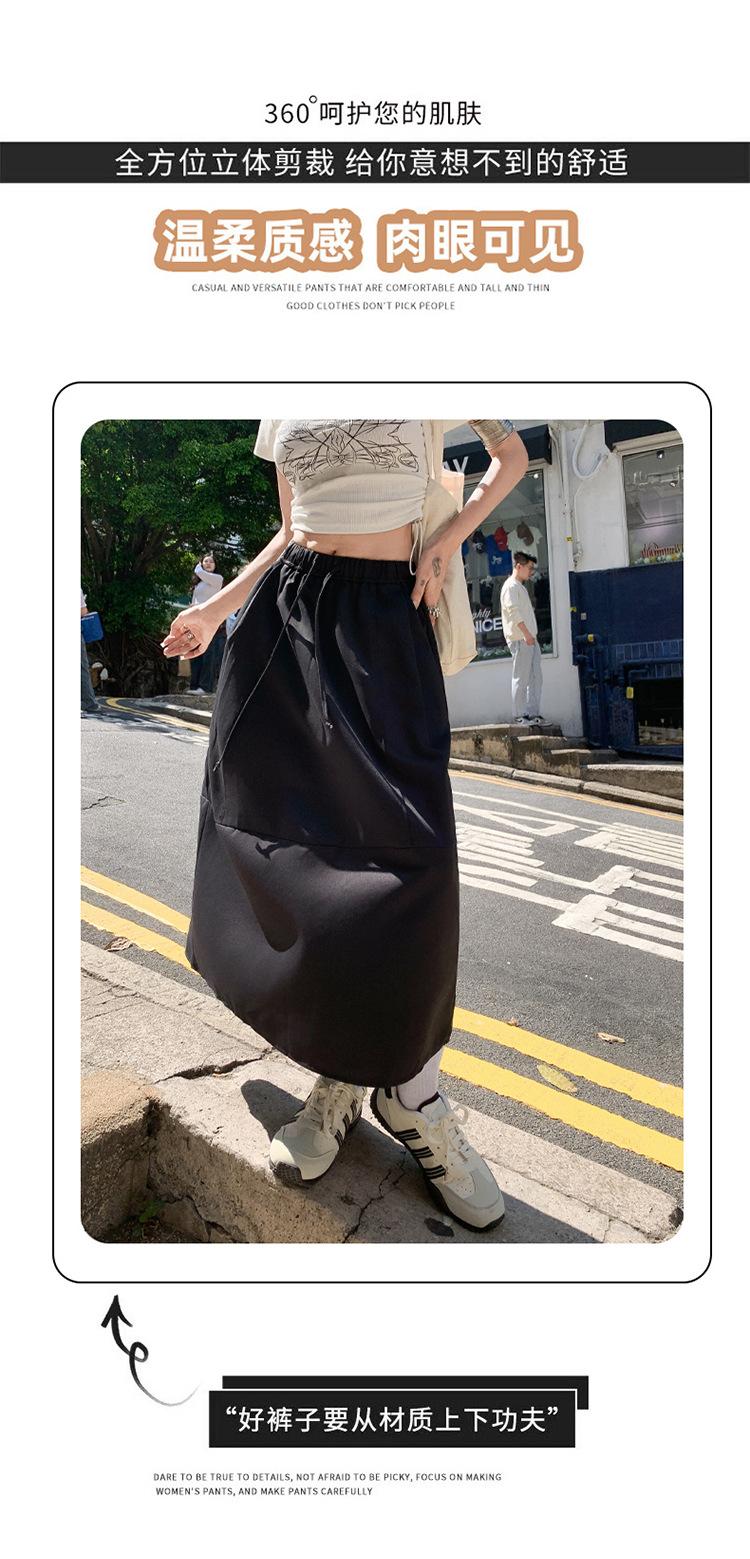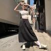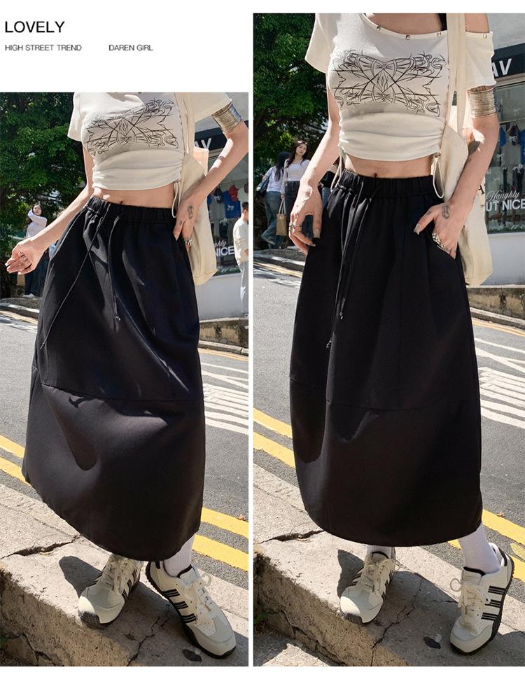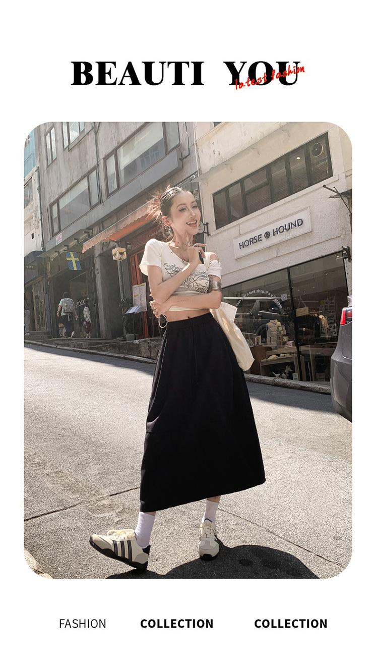 Infantil Naranja # Verano Nuevo Color Sólido Negro Cintura Alta Adelgazante Elegante Versátil Falda Midi A-Line para Mujer