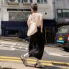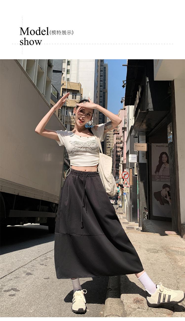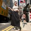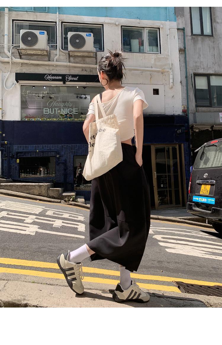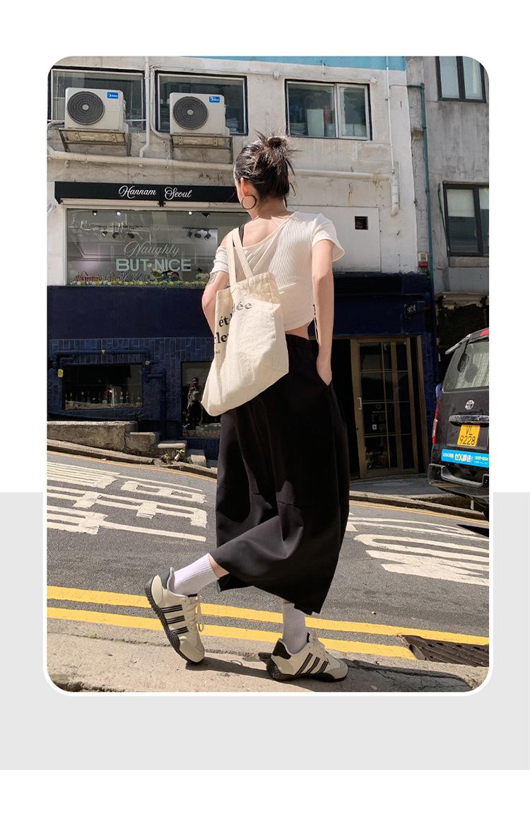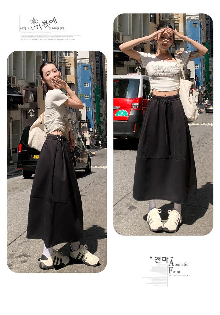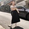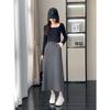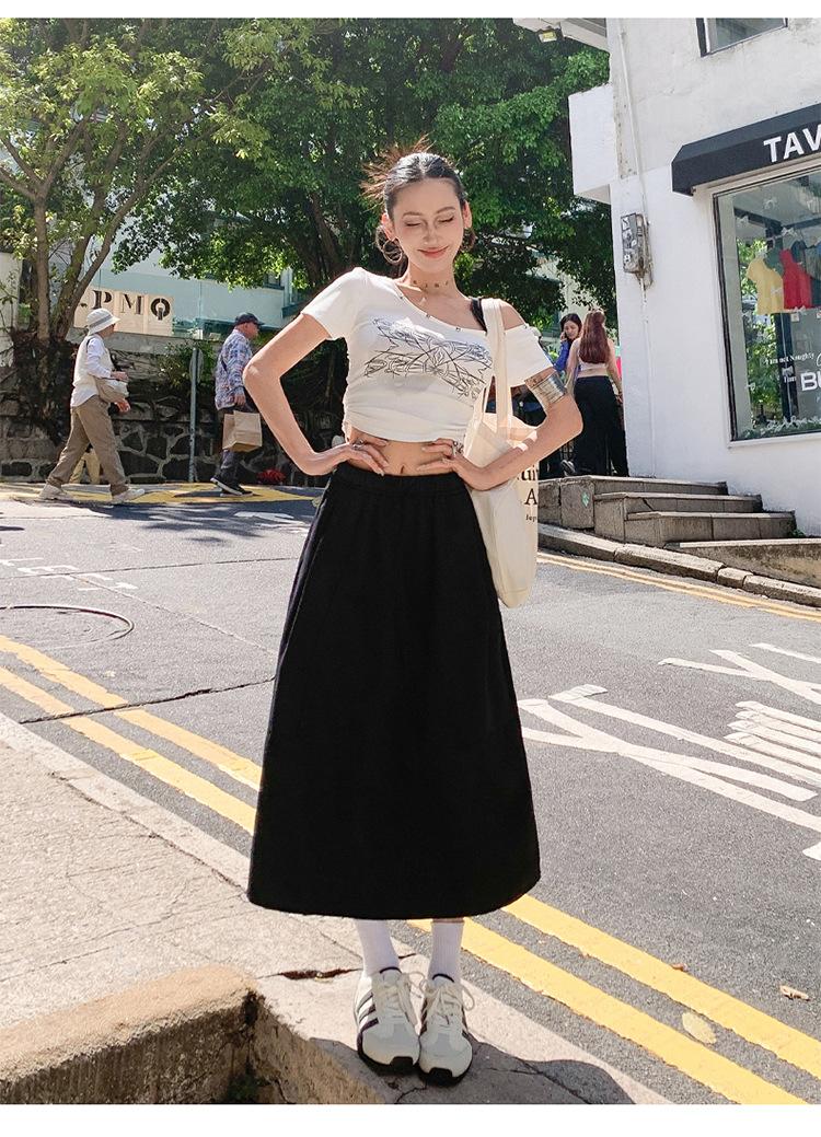 Infantil Naranja # Verano Nuevo Color Sólido Negro Cintura Alta Adelgazante Elegante Versátil Falda Midi A-Line para Mujer