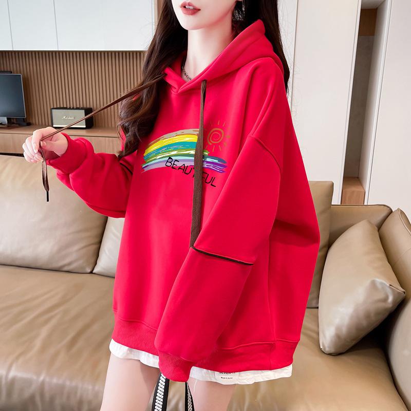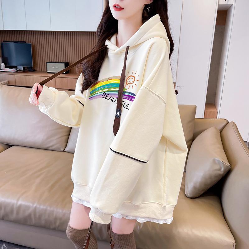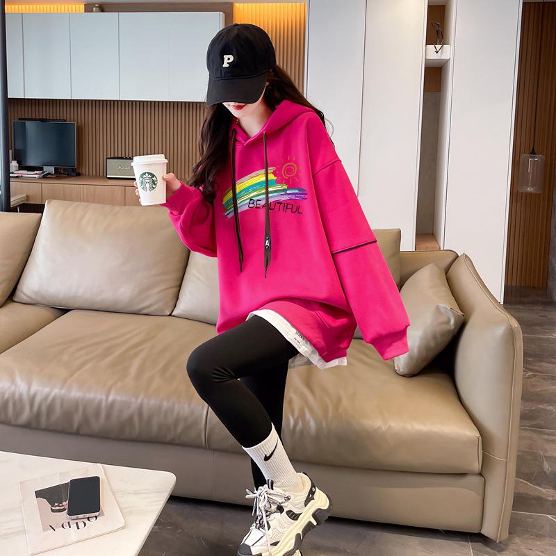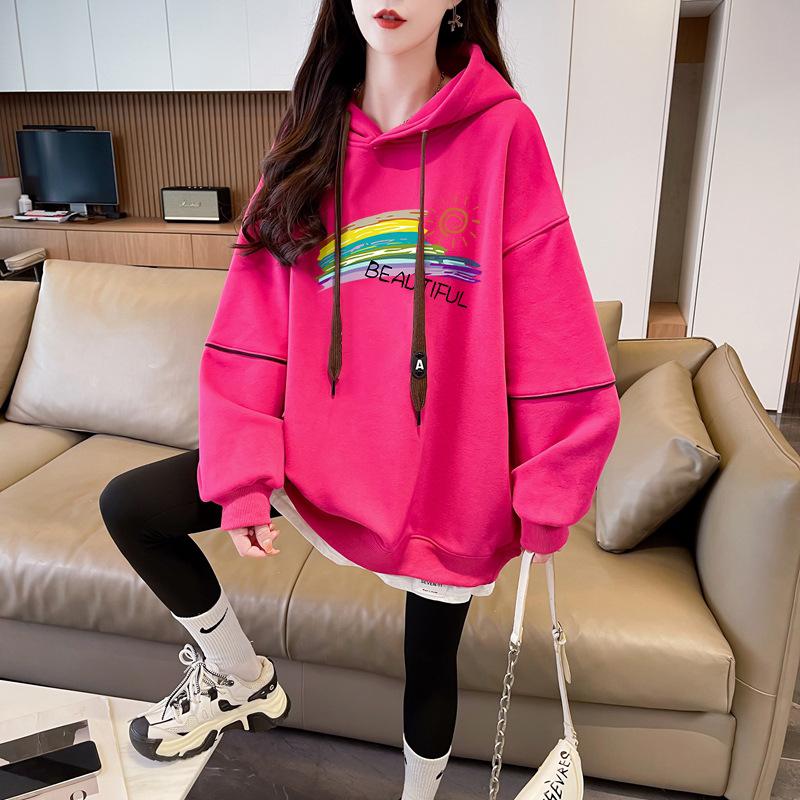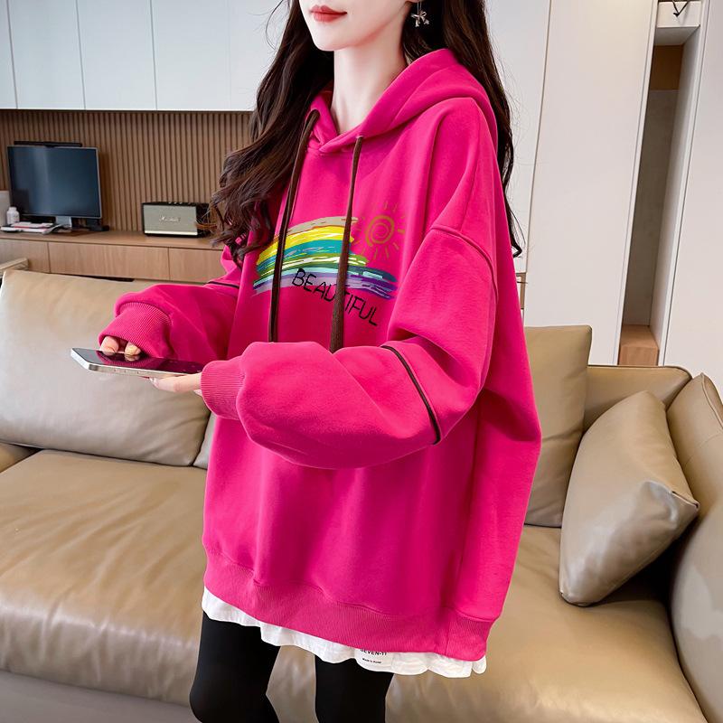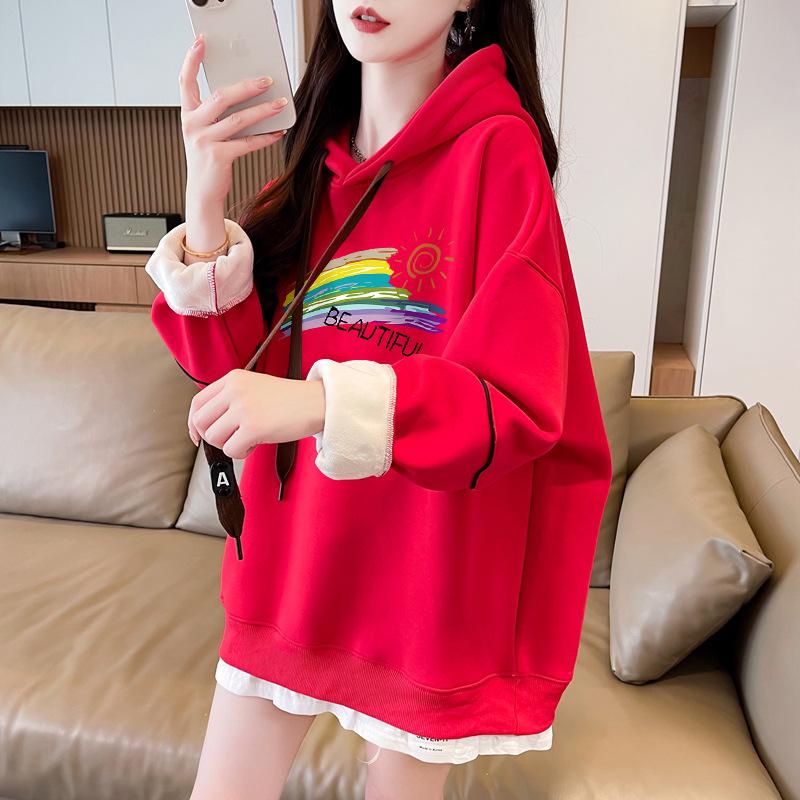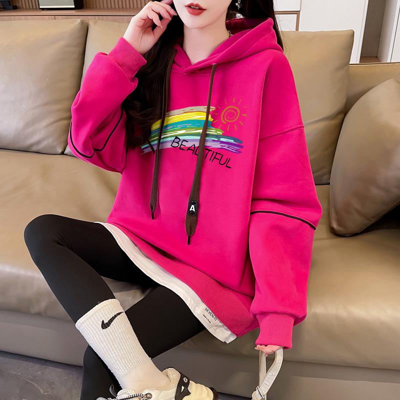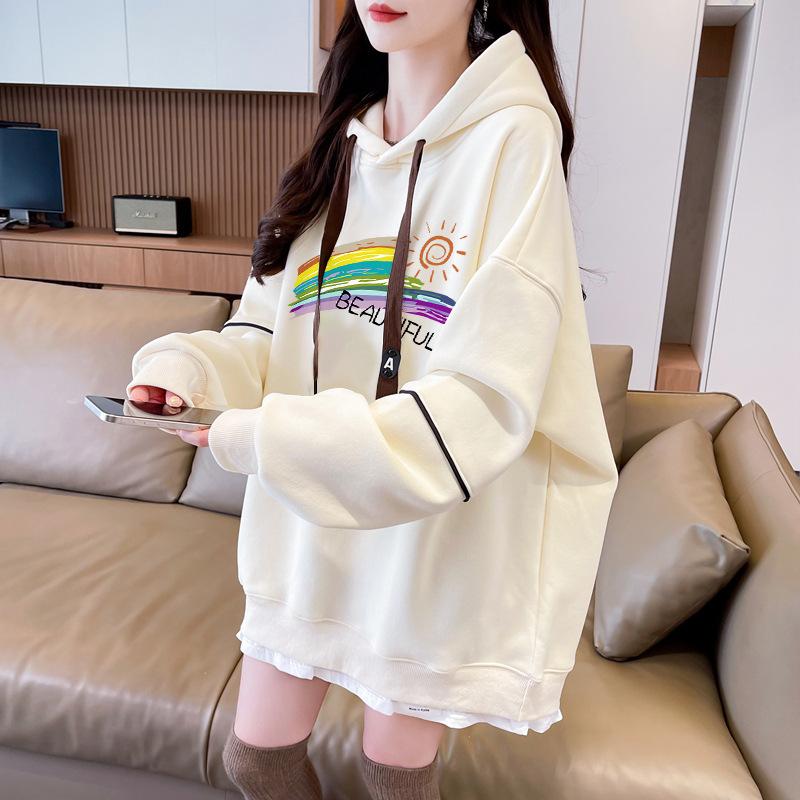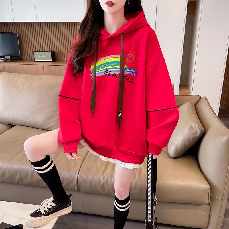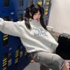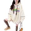 Otoño e Invierno Nuevo Chic Moderno Estampado Graffiti de Letras Forrado de Vellón Grueso Oversize Ajustado Sudadera con Capucha para Mujer