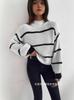 Compra Suéter Holgado de Punto de Otoño y Primavera Transfronterizo Europeo y Americano Delgado Casual Rayado Bloque de Color Manga Linterna Cuello Medio Alto al por mayor en Joom.pro