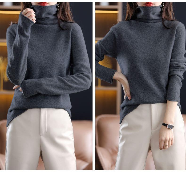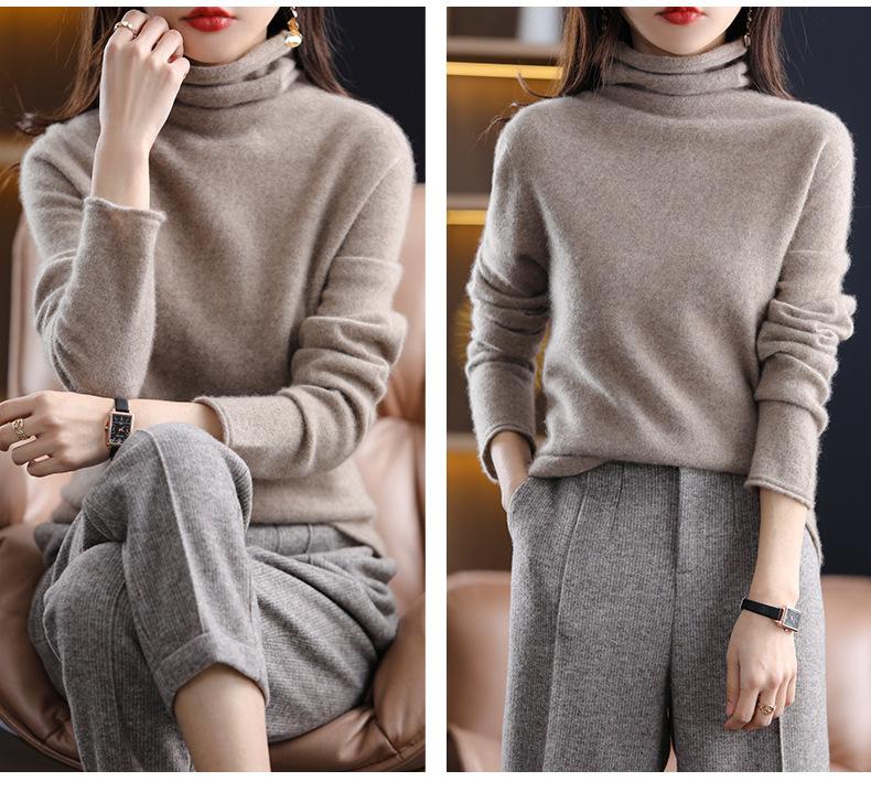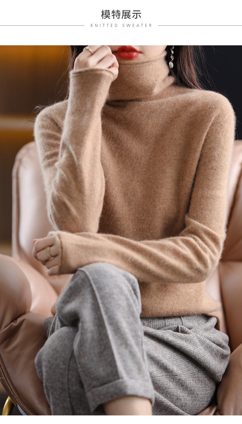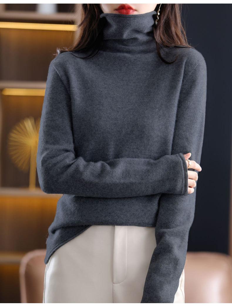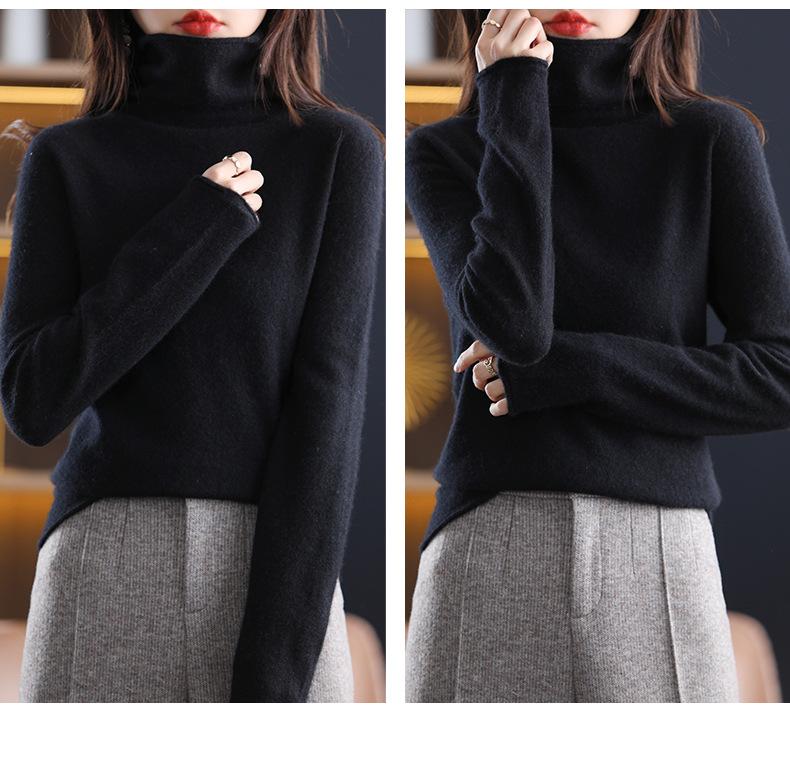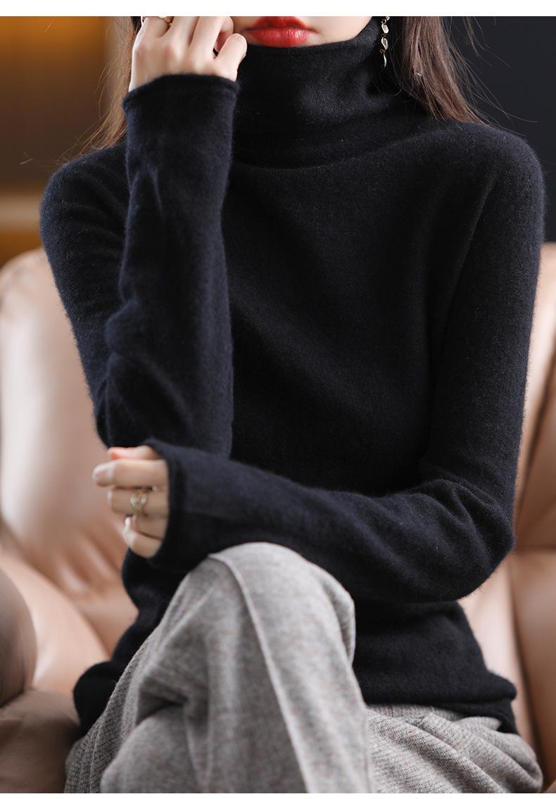 Suéter de Lana Listo para Usar de Una Línea para Mujer Cuello Alto para Mujer Suéter de Cuello Alto de Otoño e Invierno Ajustado Interior de Cachemira Camisa Base Tejida