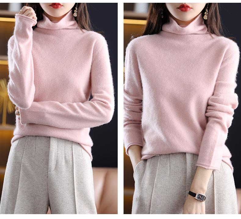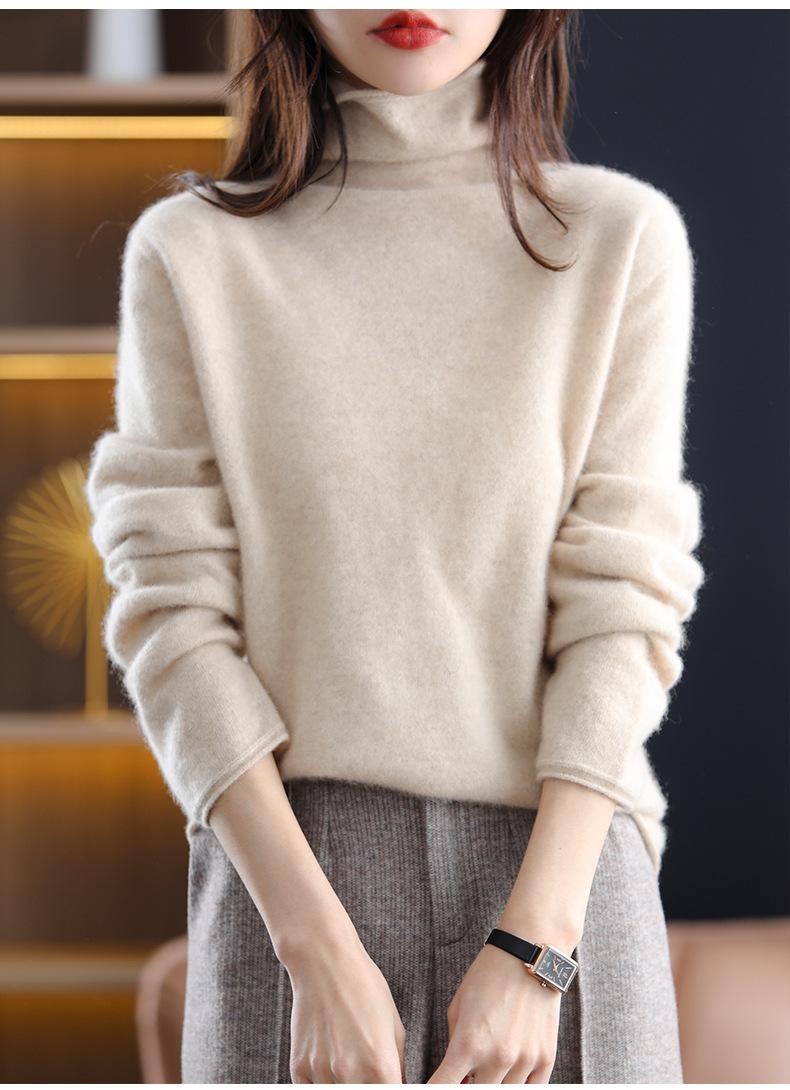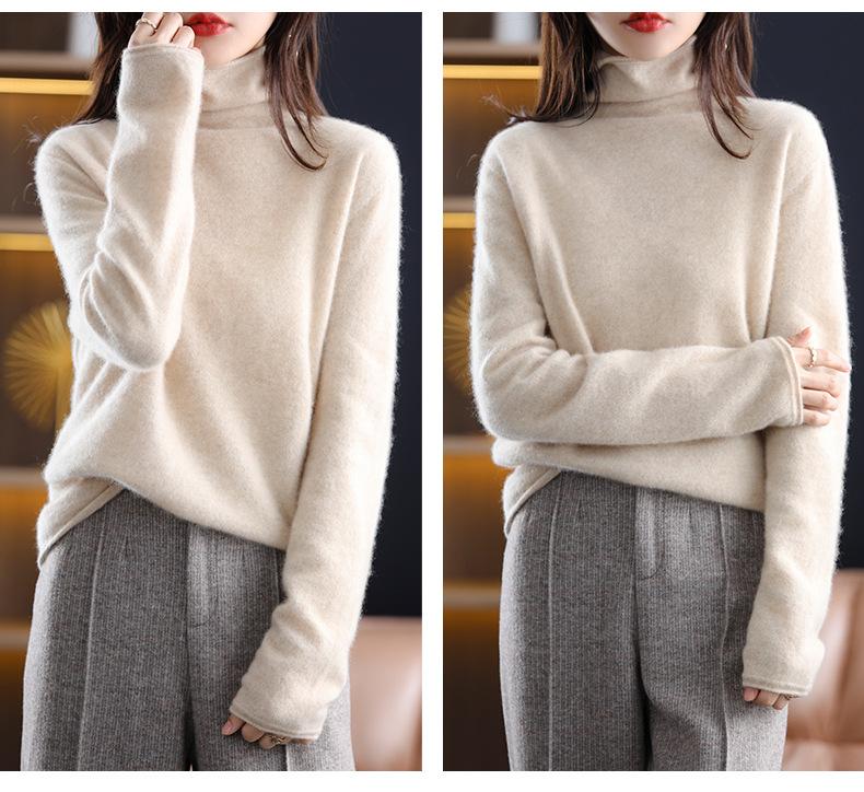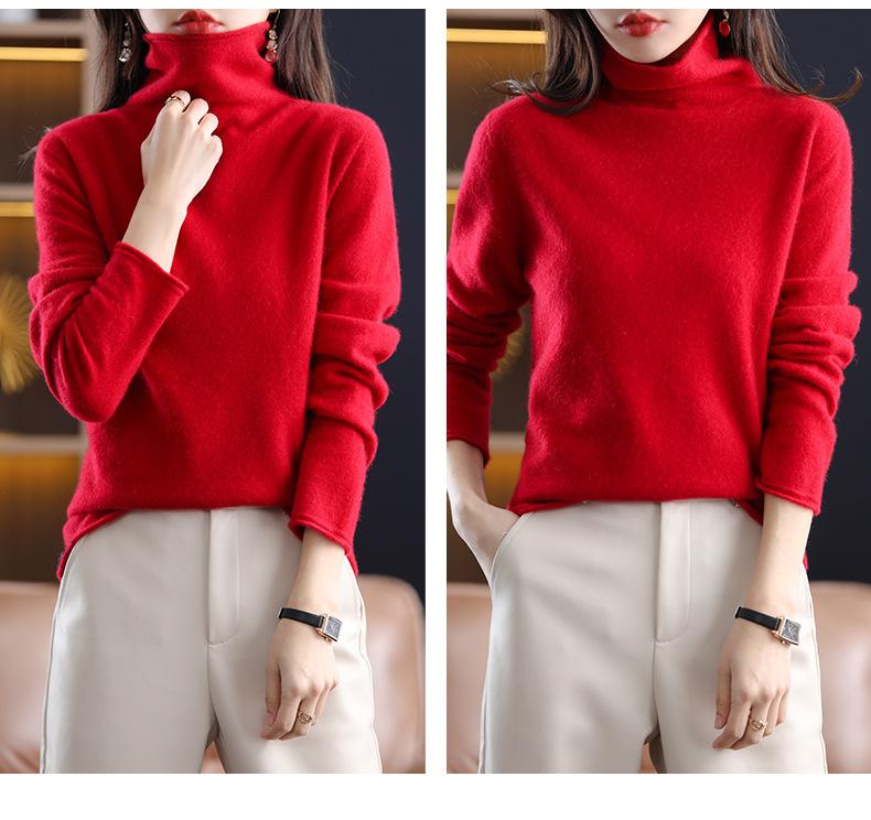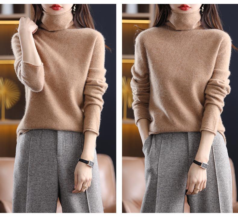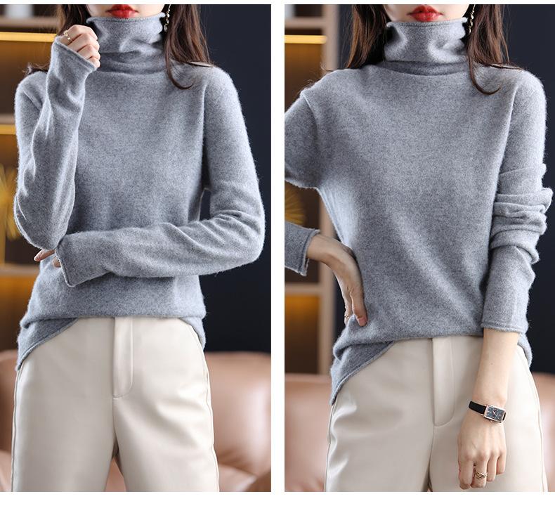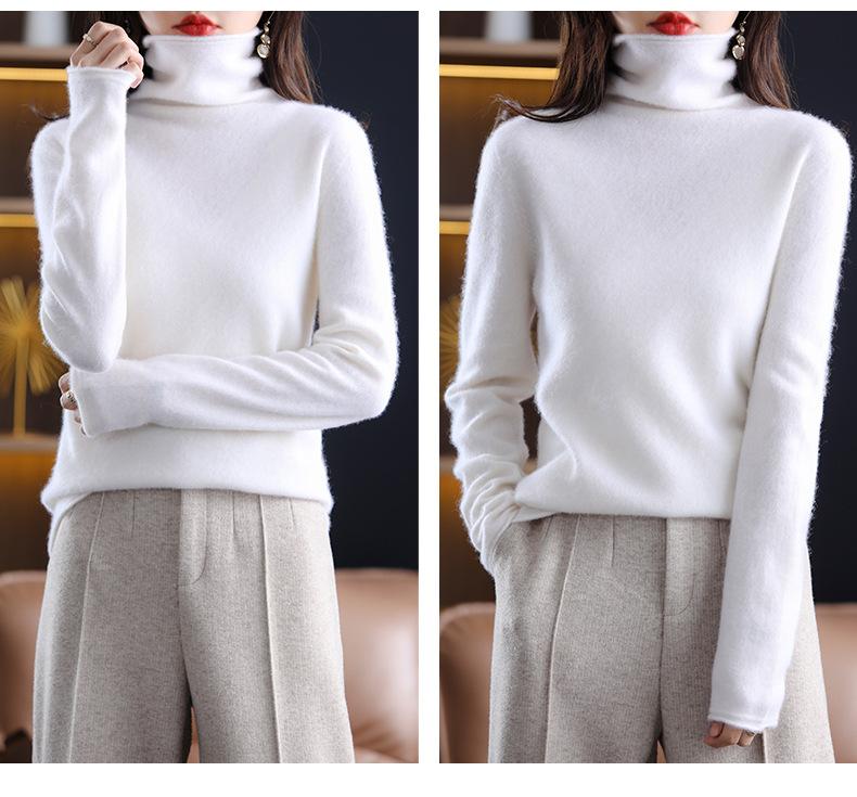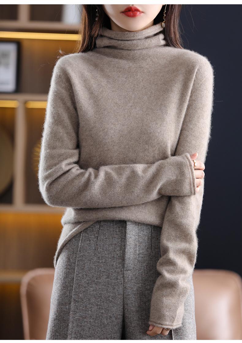 Suéter de Lana Listo para Usar de Una Línea para Mujer Cuello Alto para Mujer Suéter de Cuello Alto de Otoño e Invierno Ajustado Interior de Cachemira Camisa Base Tejida