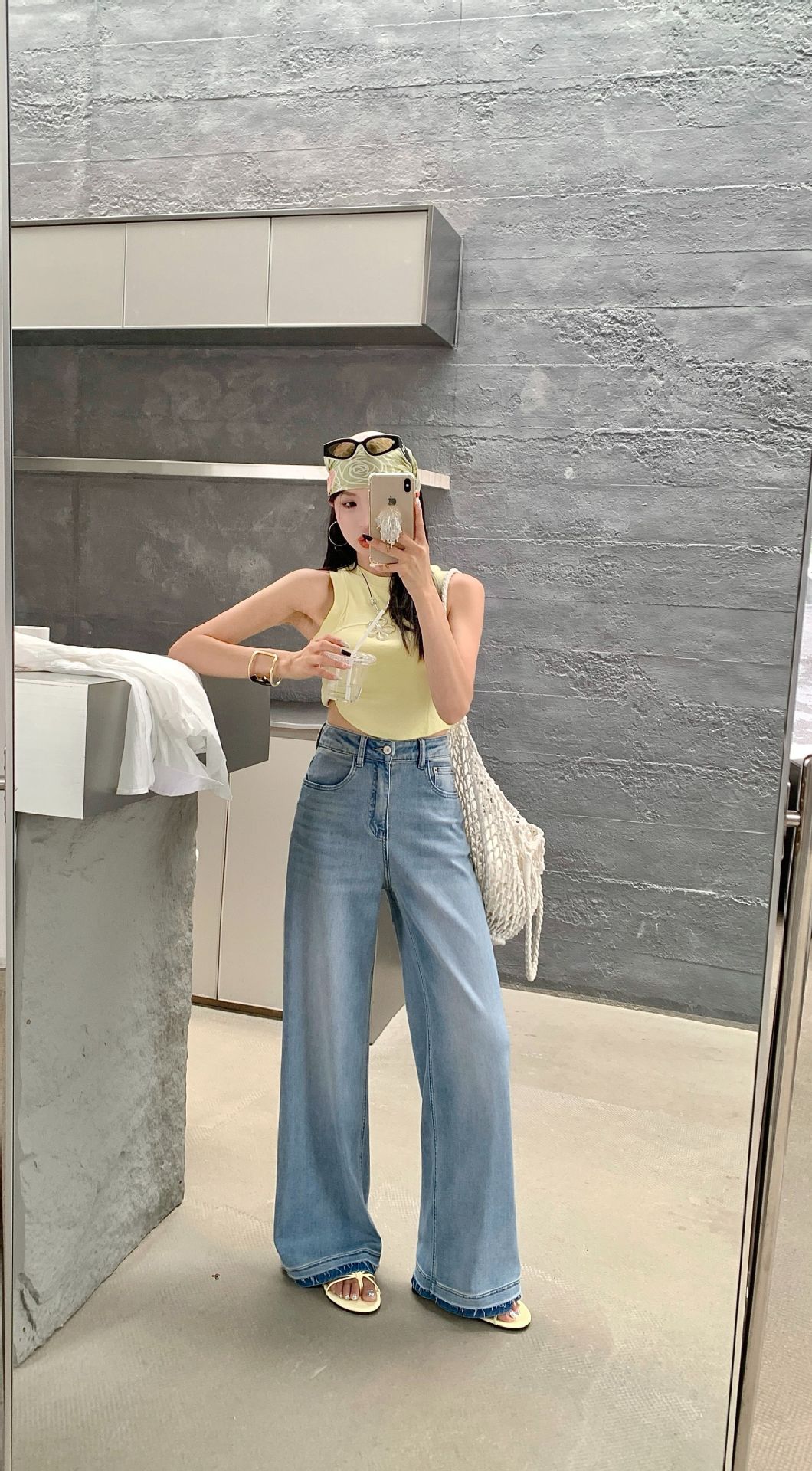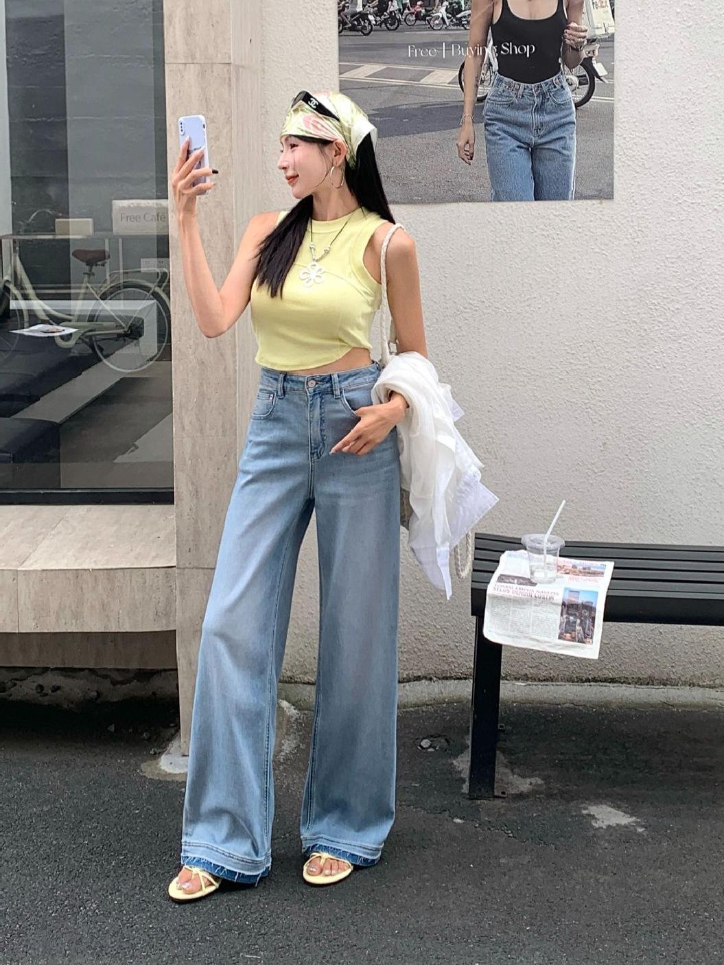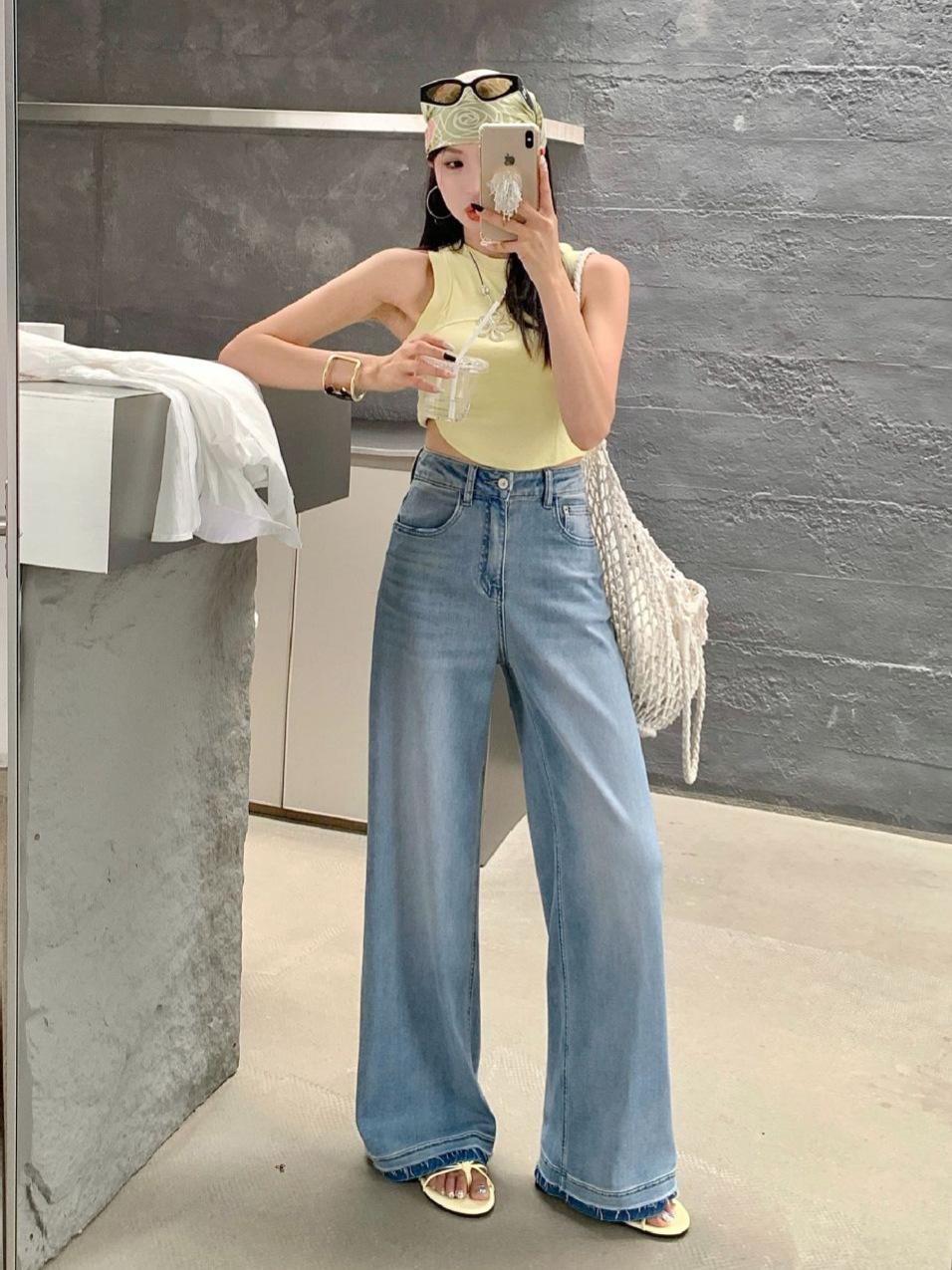 Compra Youmantie Trece Filas 2025 Nuevo Americano Retro Desgastado Suelto Recto Jeans Pantalones Largos de Pierna Ancha para Mujer al por mayor en Joom.pro
