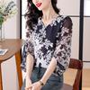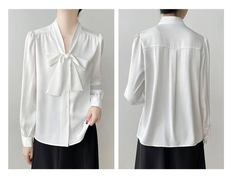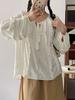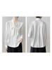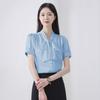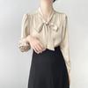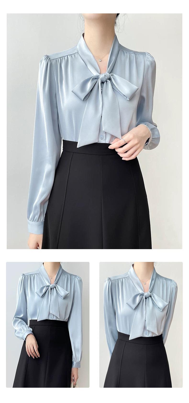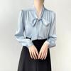 Camisa de Gasa Suelta Personalizada para Mujer, Top Azul de Encaje Francés con Cordones de Manga Larga, Nueva Camisa de Otoño para Viajeros 2025