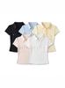 Camiseta de Manga Corta con Diseño de Solapa Trendy Spicy Girl, Doble Bolsillo, Verano Nueva, Versátil, Slim, Color Sólido, Top Básico