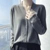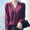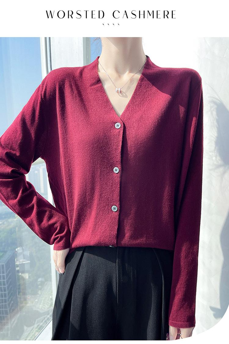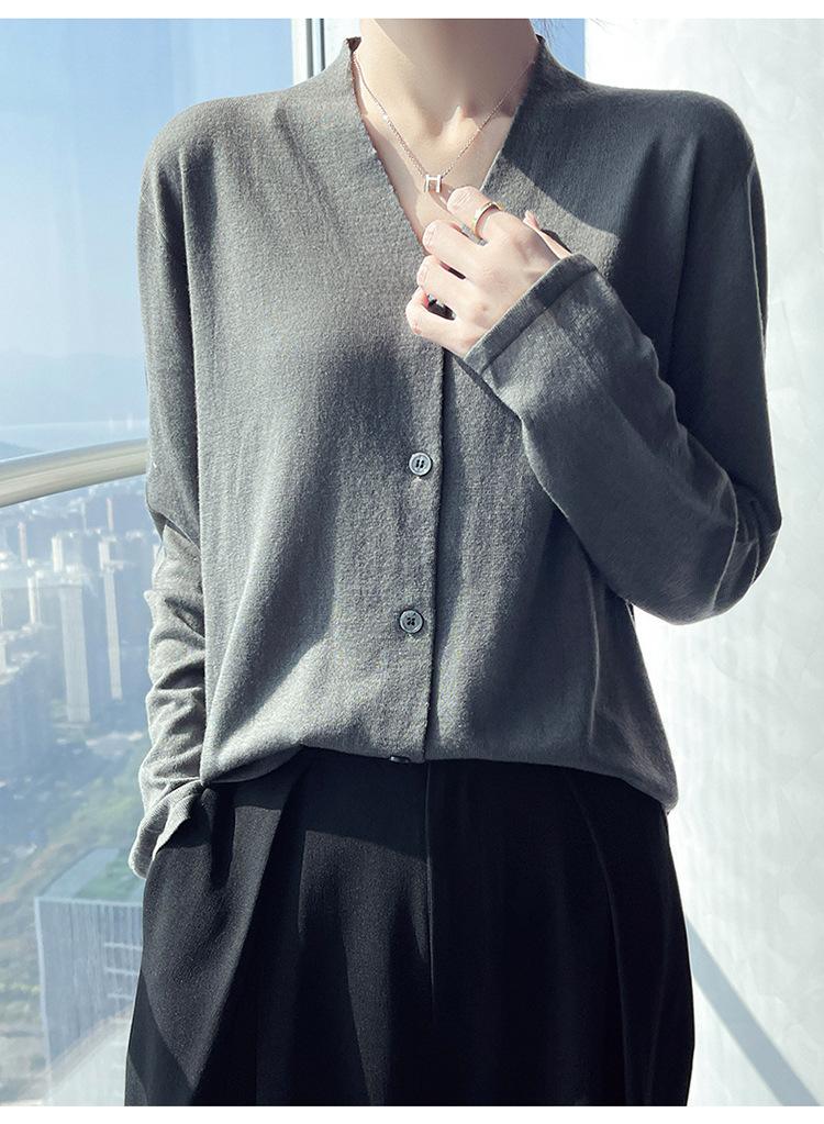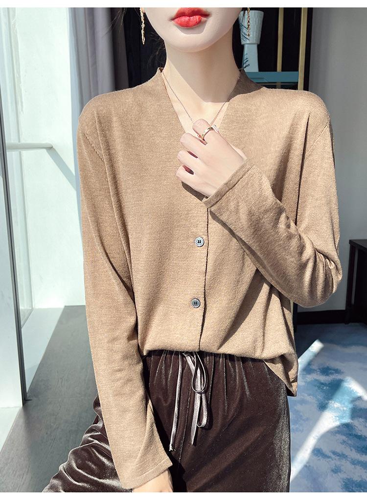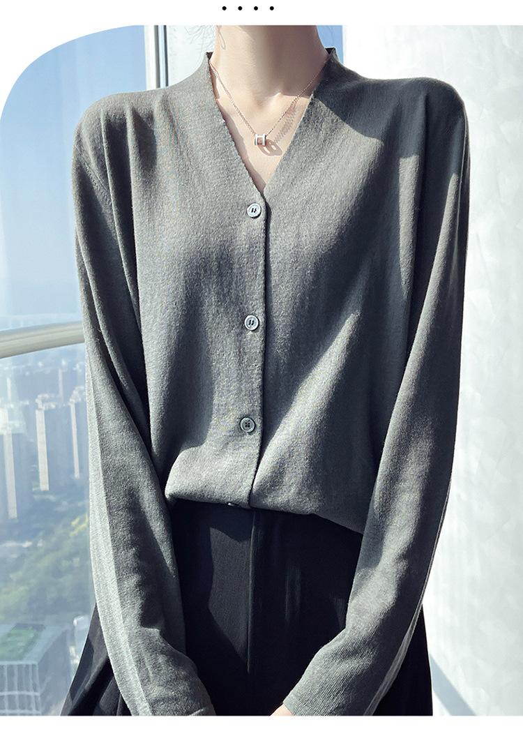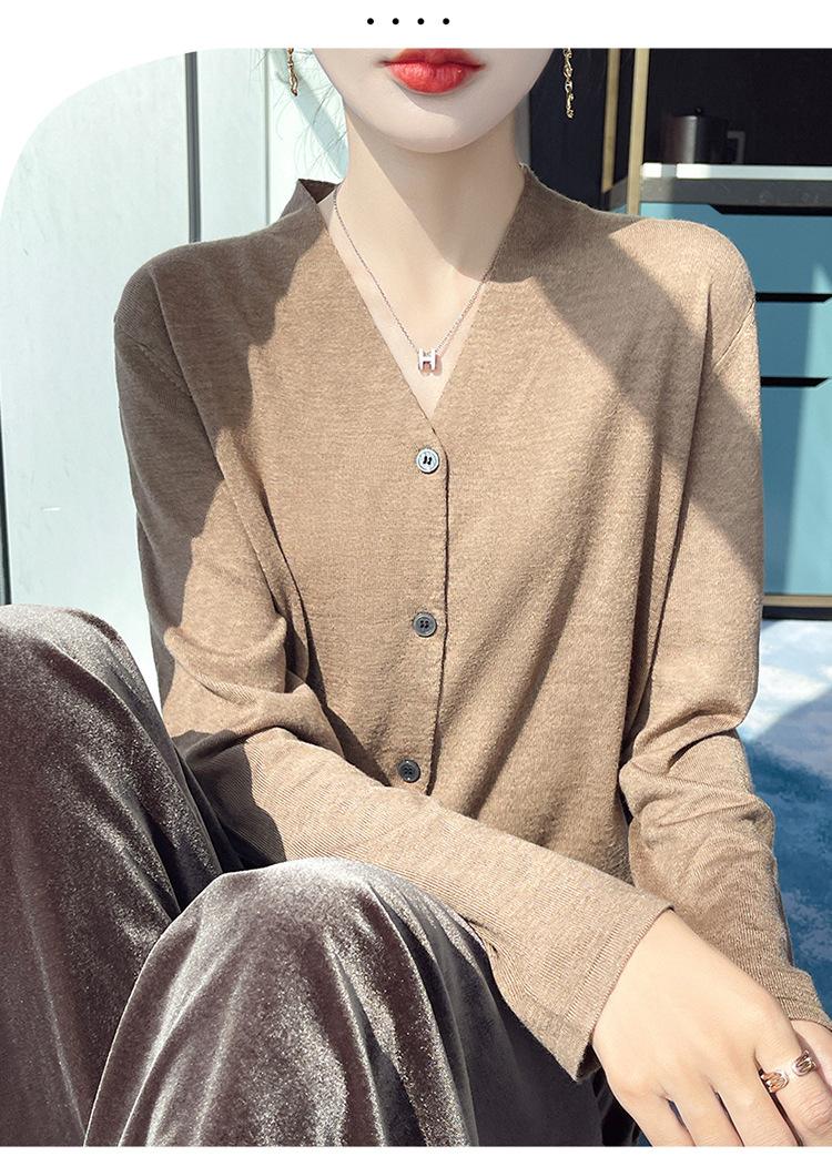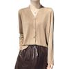 Cárdigan de Punto de Lana Peinada con Cuello en V de Nueva Colección Primavera-Verano 2025, Color Sólido, Holgado, Versátil, Elegante, de Manga Larga para Mujer