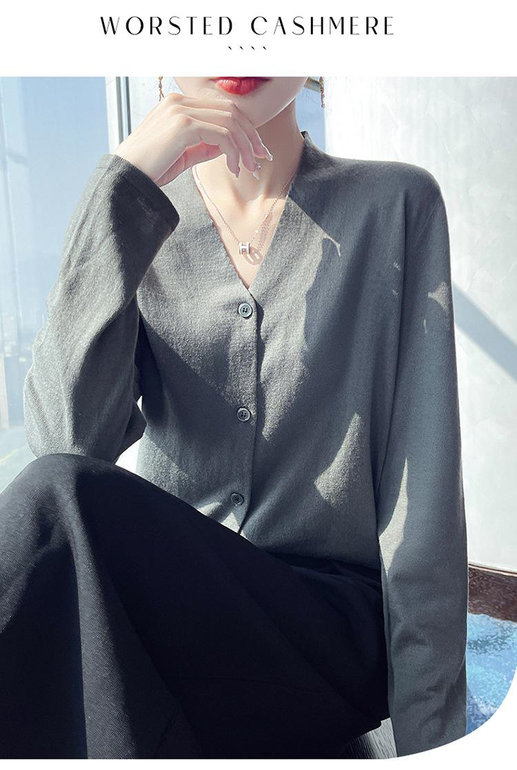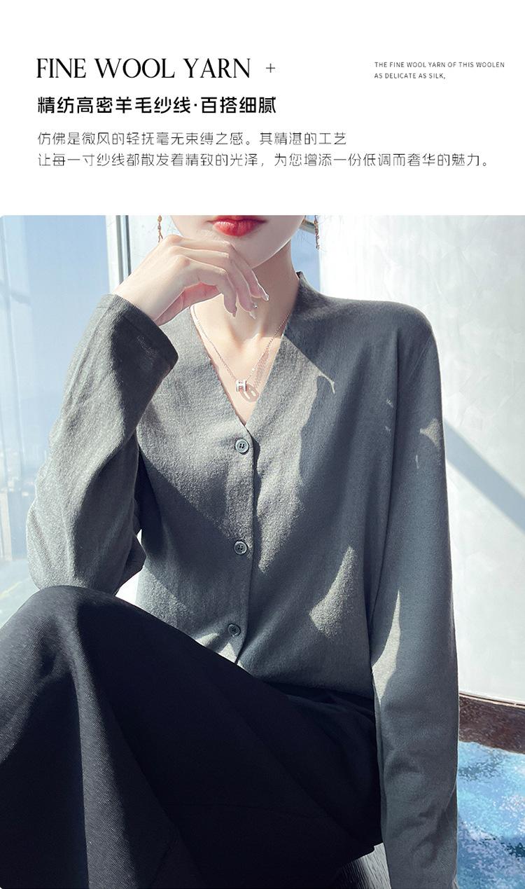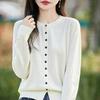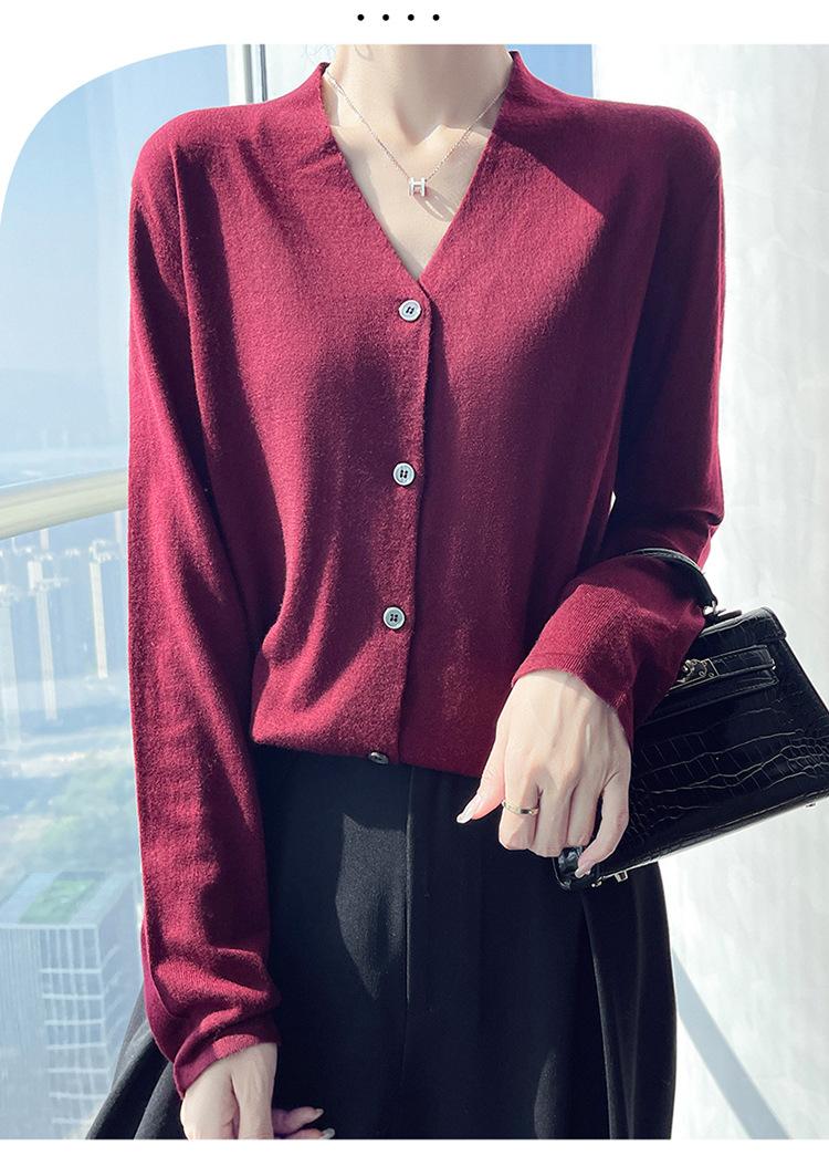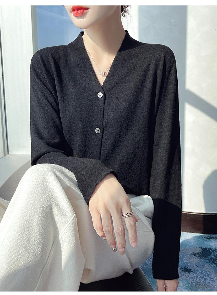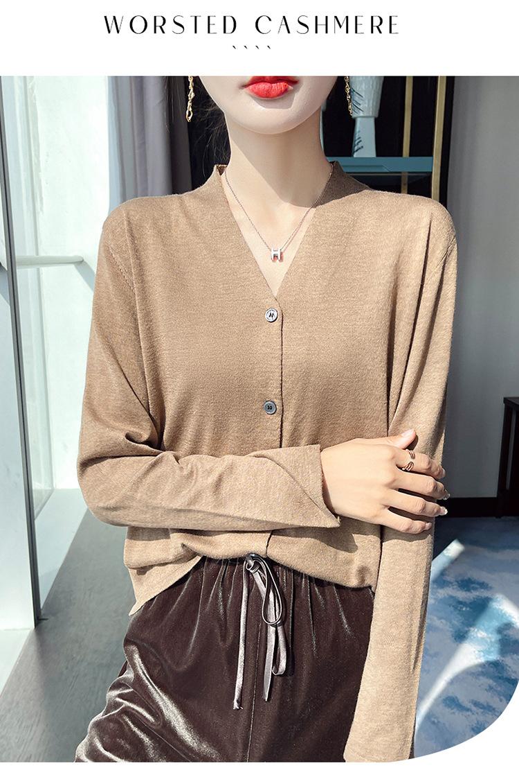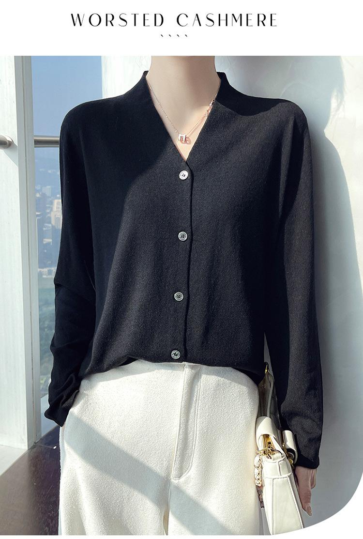 Cárdigan de Punto de Lana Peinada con Cuello en V de Nueva Colección Primavera-Verano 2025, Color Sólido, Holgado, Versátil, Elegante, de Manga Larga para Mujer