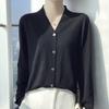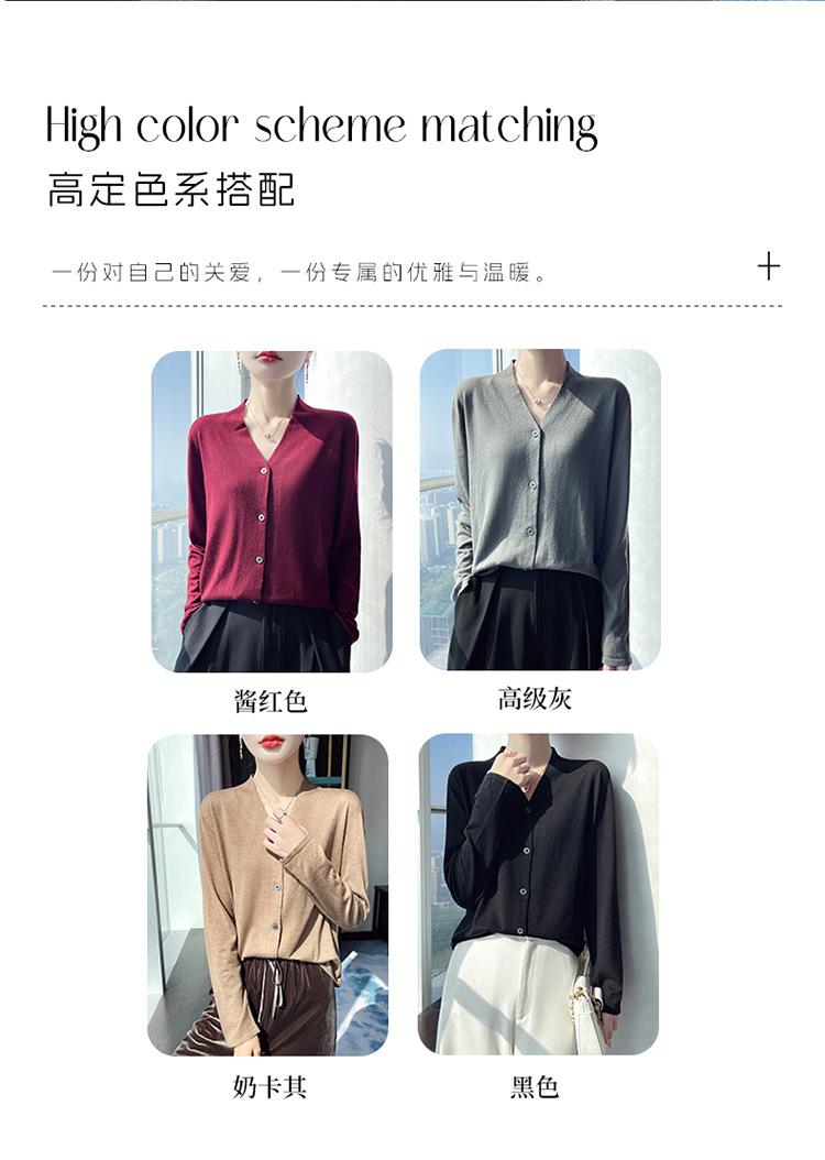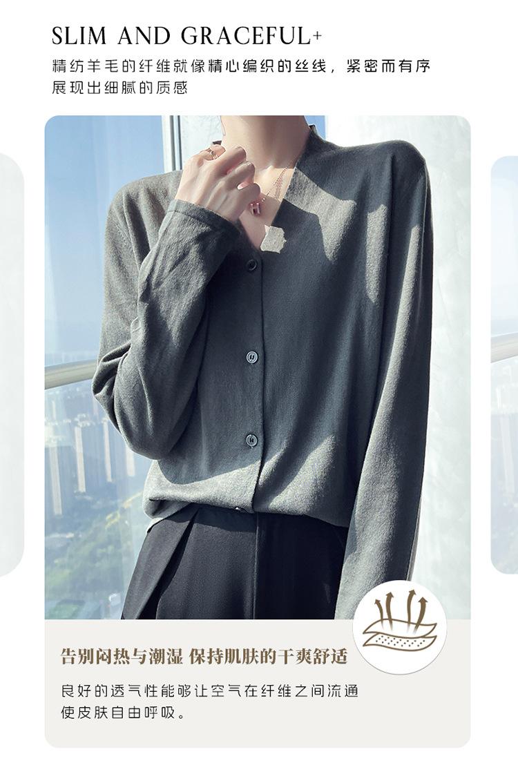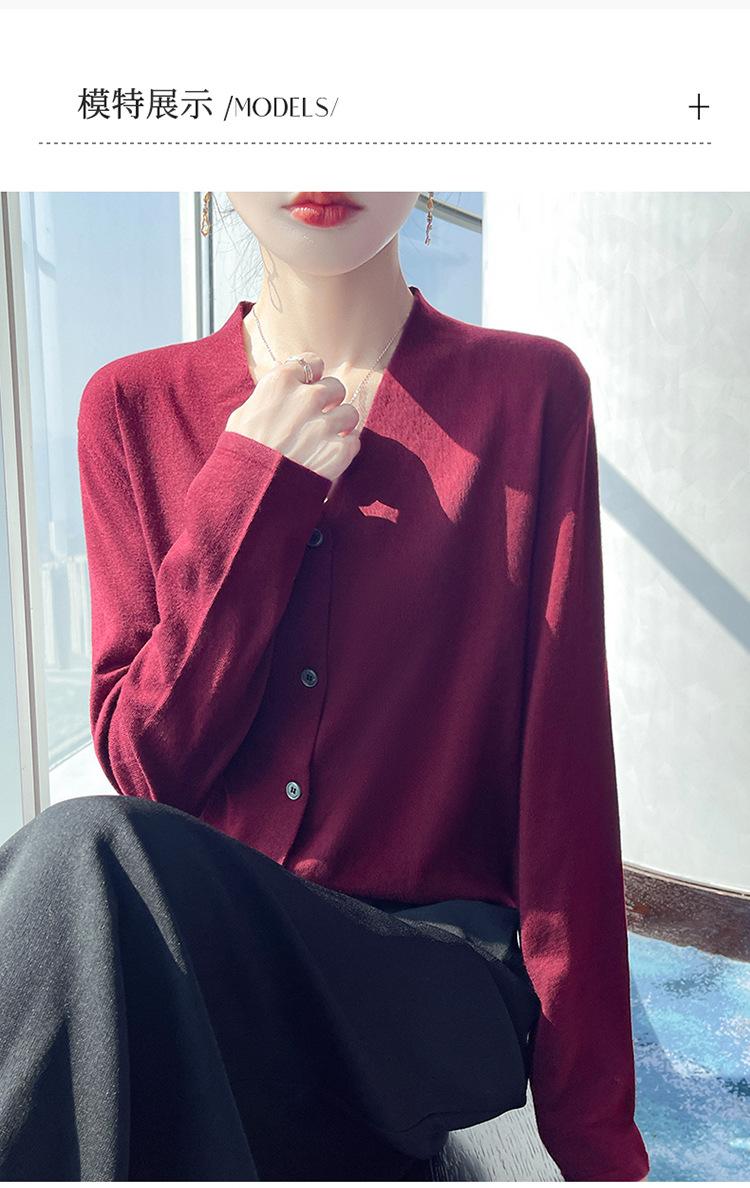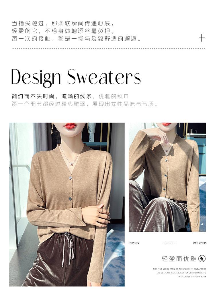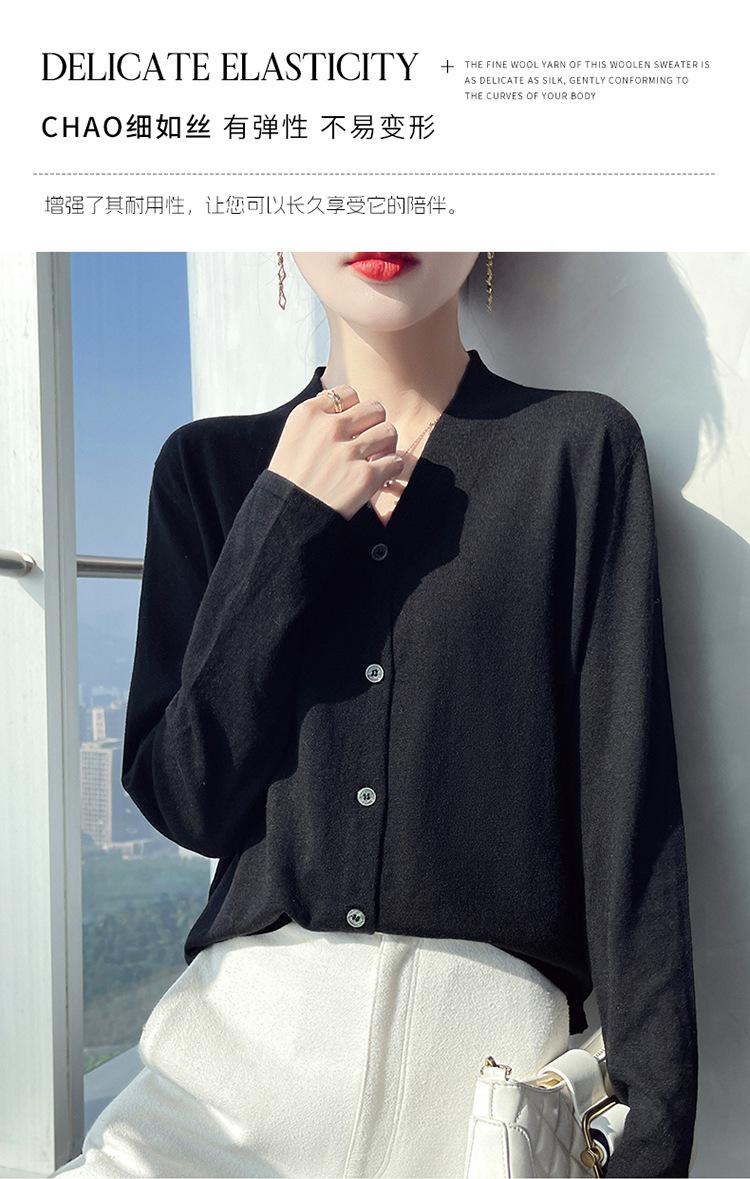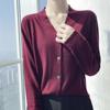 Cárdigan de Punto de Lana Peinada con Cuello en V de Nueva Colección Primavera-Verano 2025, Color Sólido, Holgado, Versátil, Elegante, de Manga Larga para Mujer