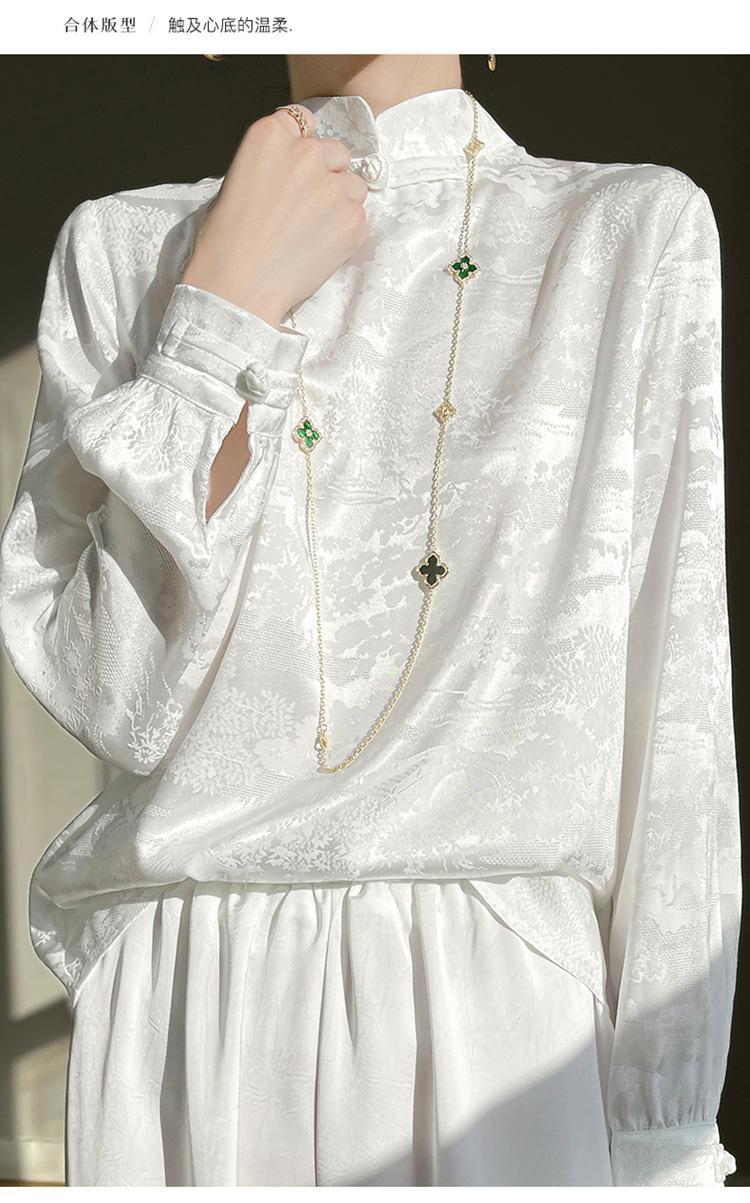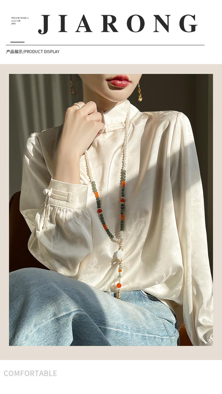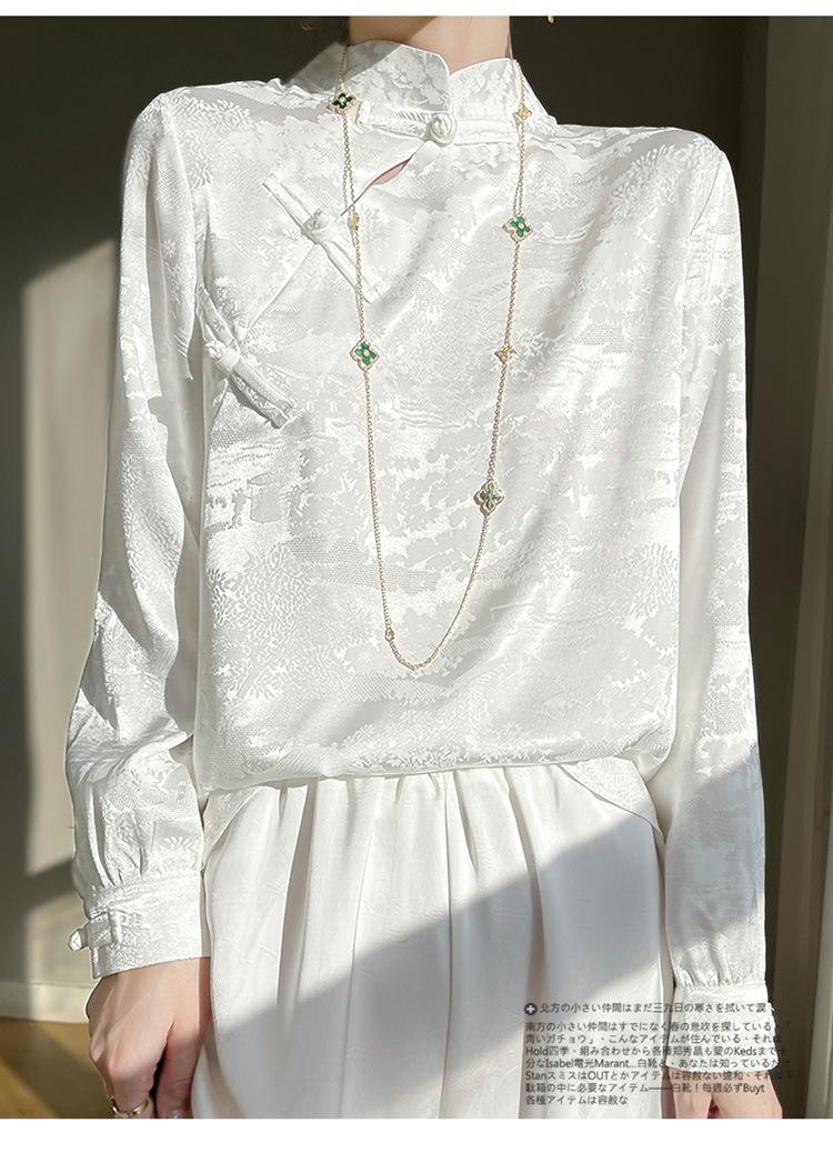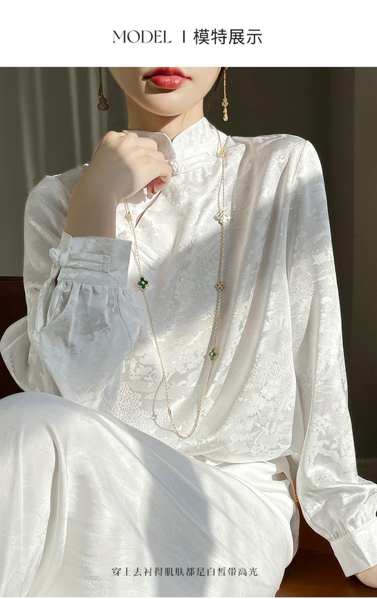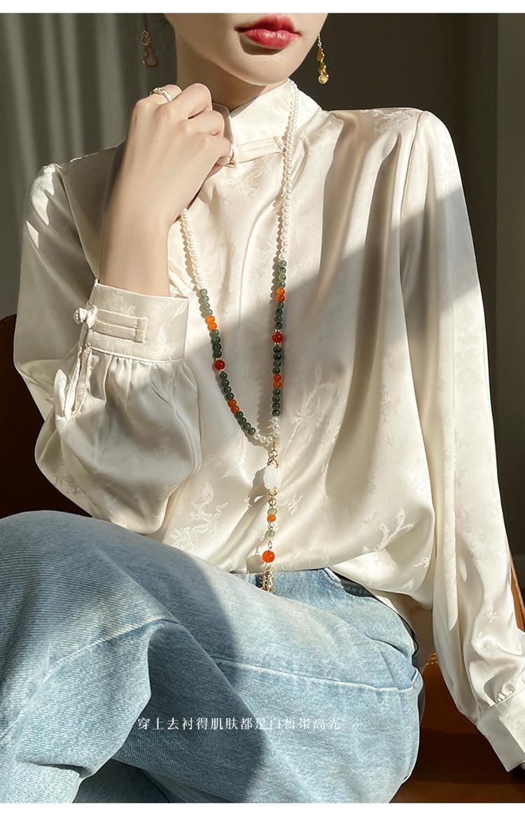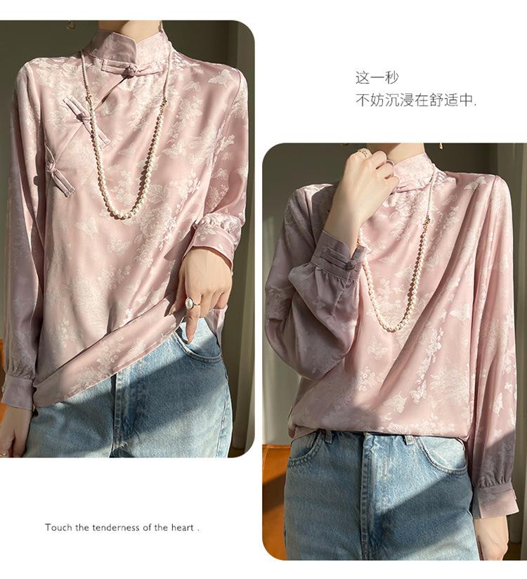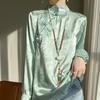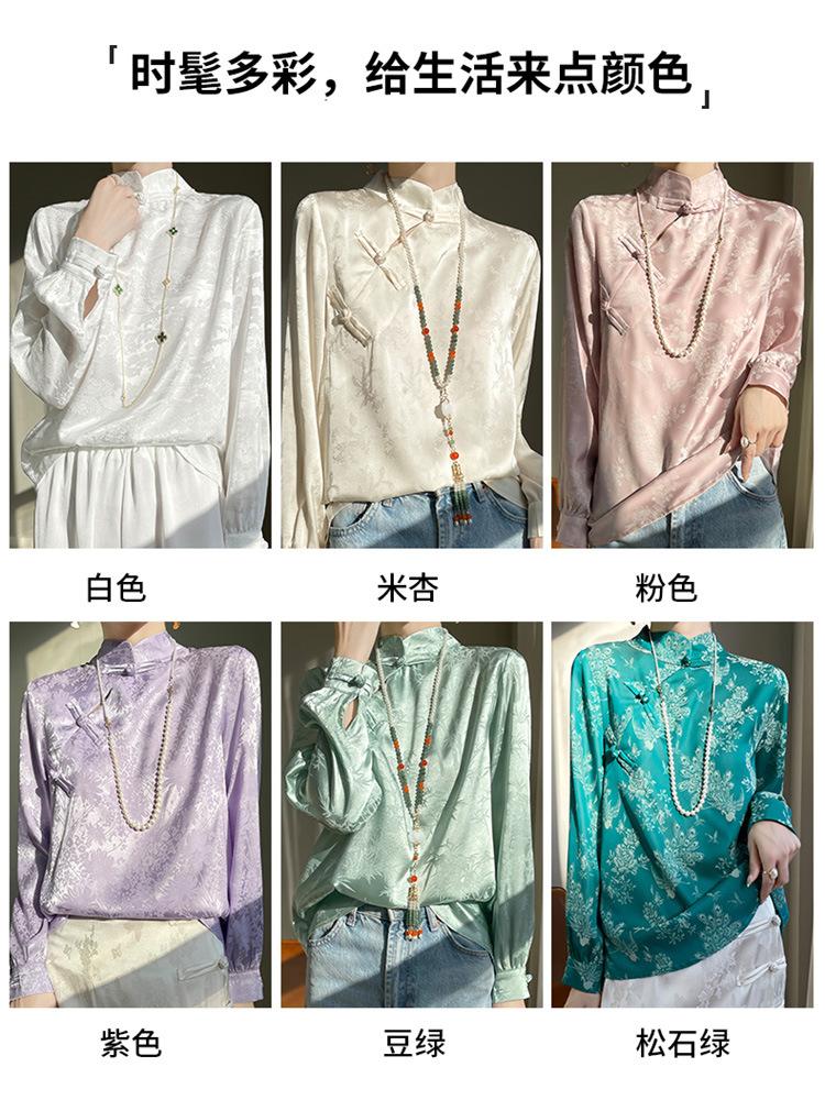 Primavera/Verano 2024 Nuevo Estilo Chino Estilo Nacional Camisa Jacquard de Satén para Mujer Nueva Cuello Camisa Base Elegante Camisa
