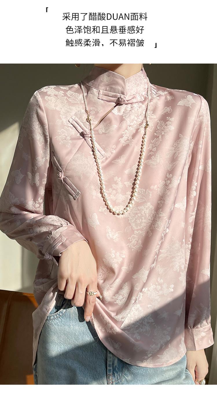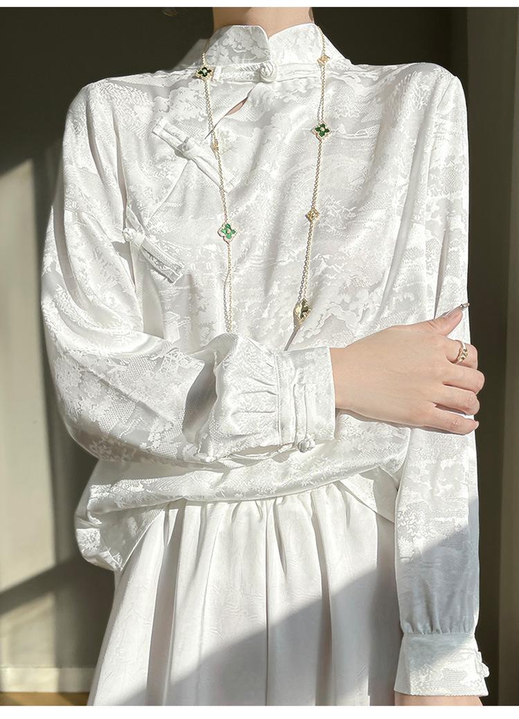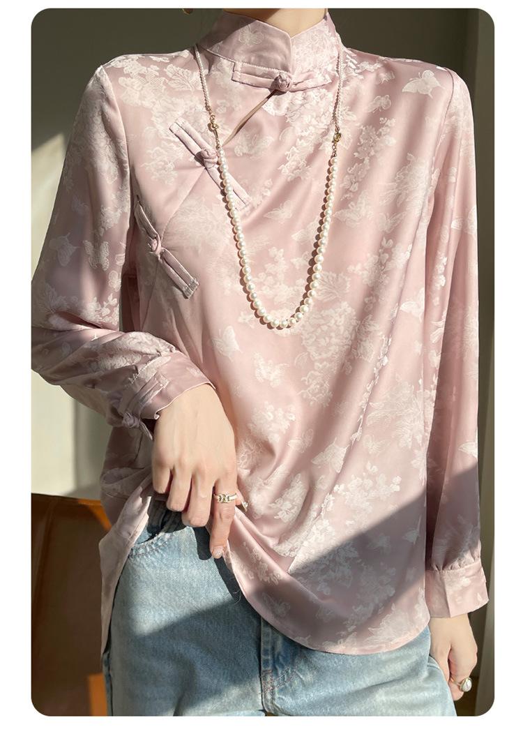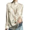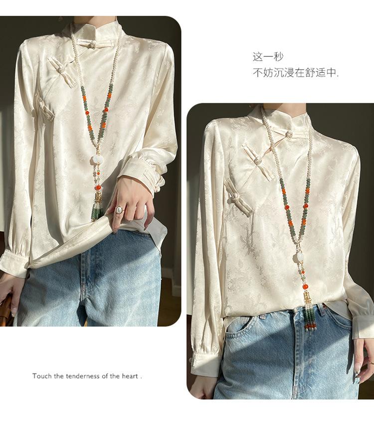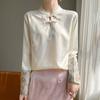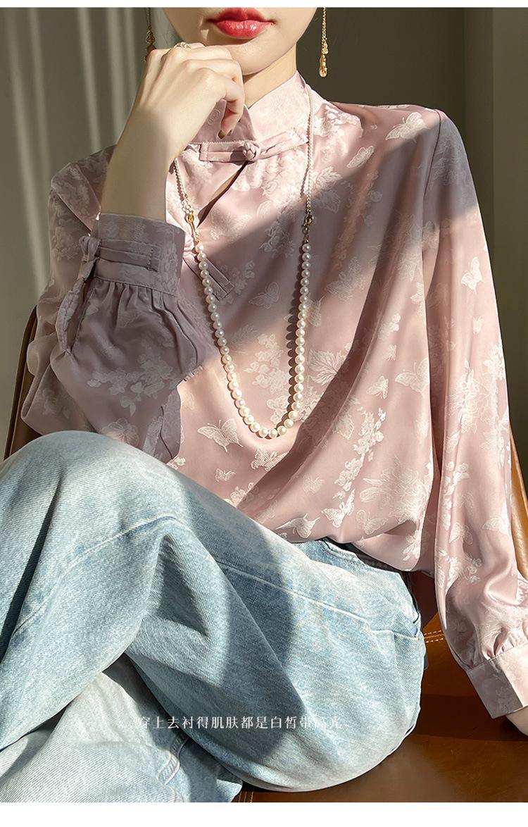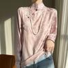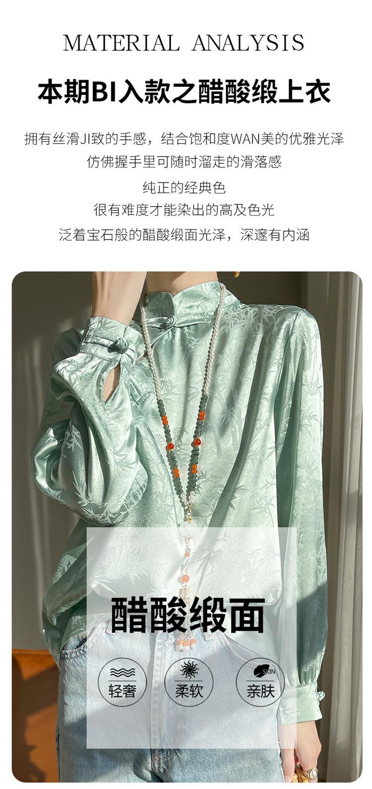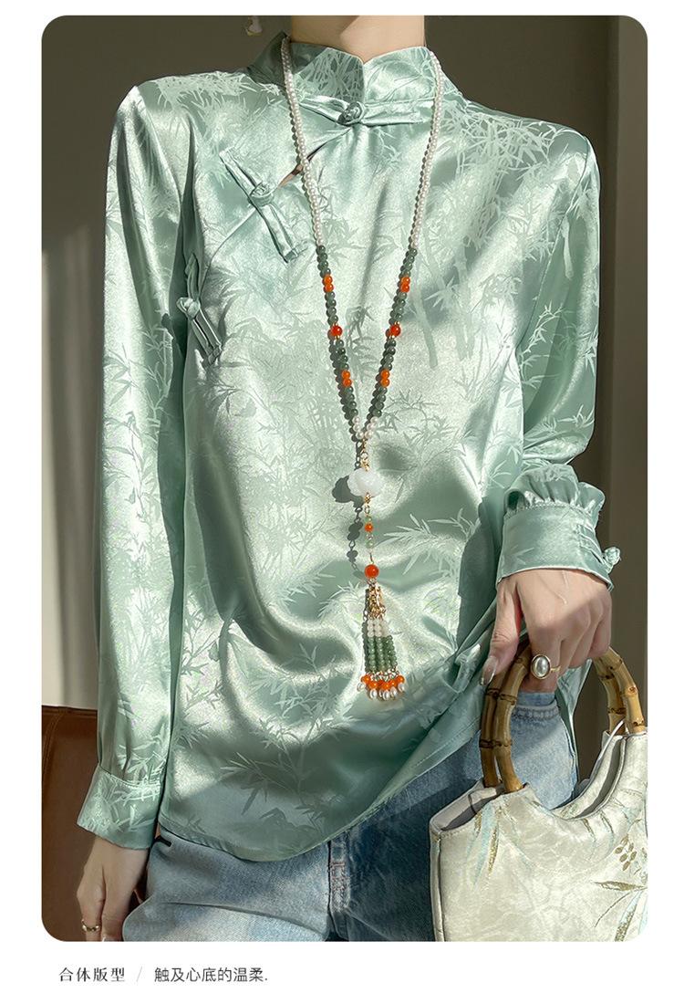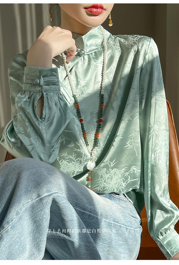Primavera/Verano 2024 Nuevo Estilo Chino Estilo Nacional Camisa Jacquard de Satén para Mujer Nueva Cuello Camisa Base Elegante Camisa