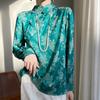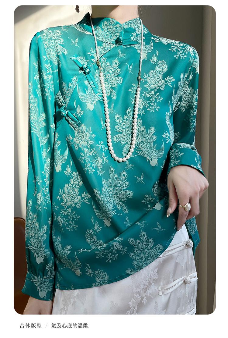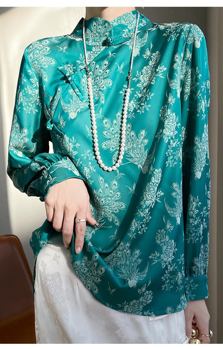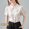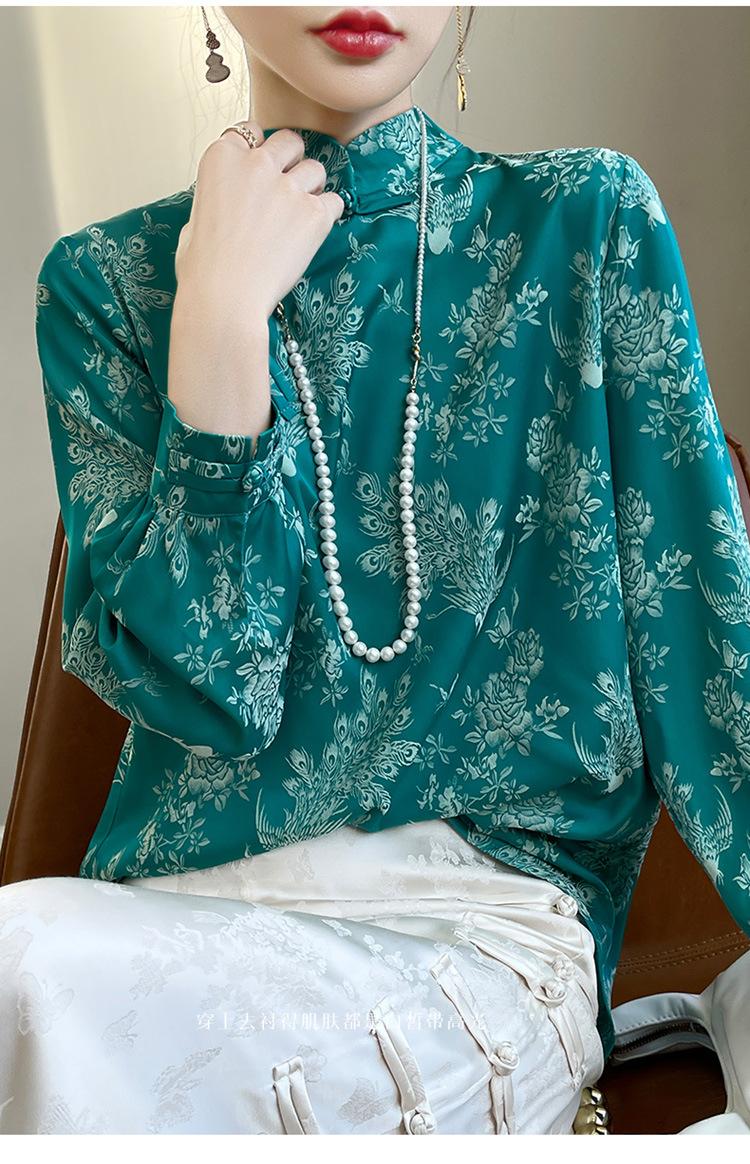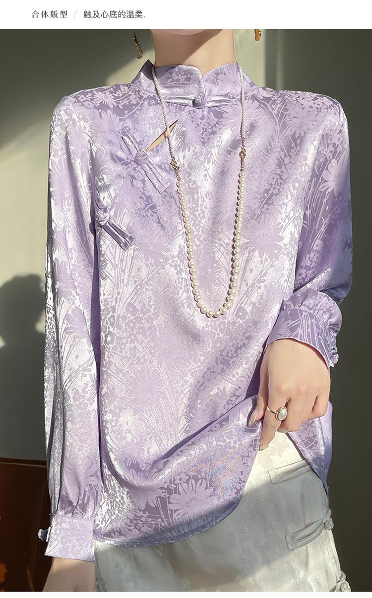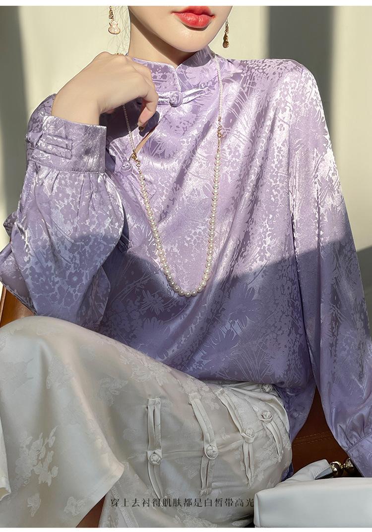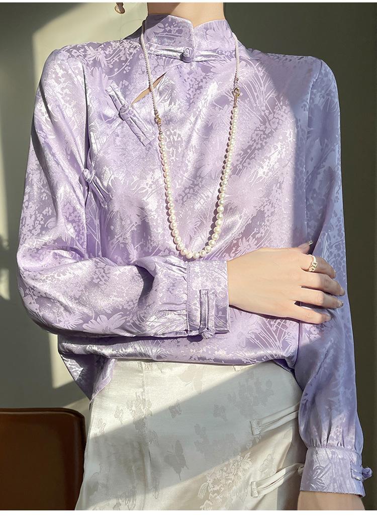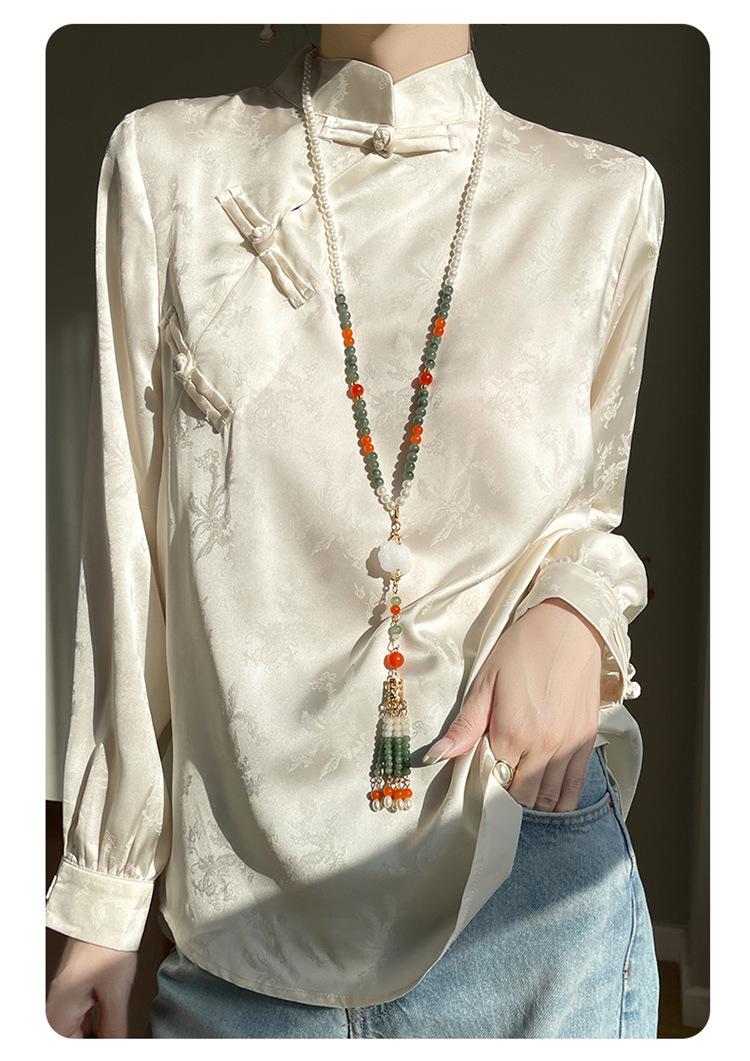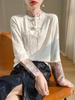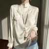 Primavera/Verano 2024 Nuevo Estilo Chino Estilo Nacional Camisa Jacquard de Satén para Mujer Nueva Cuello Camisa Base Elegante Camisa