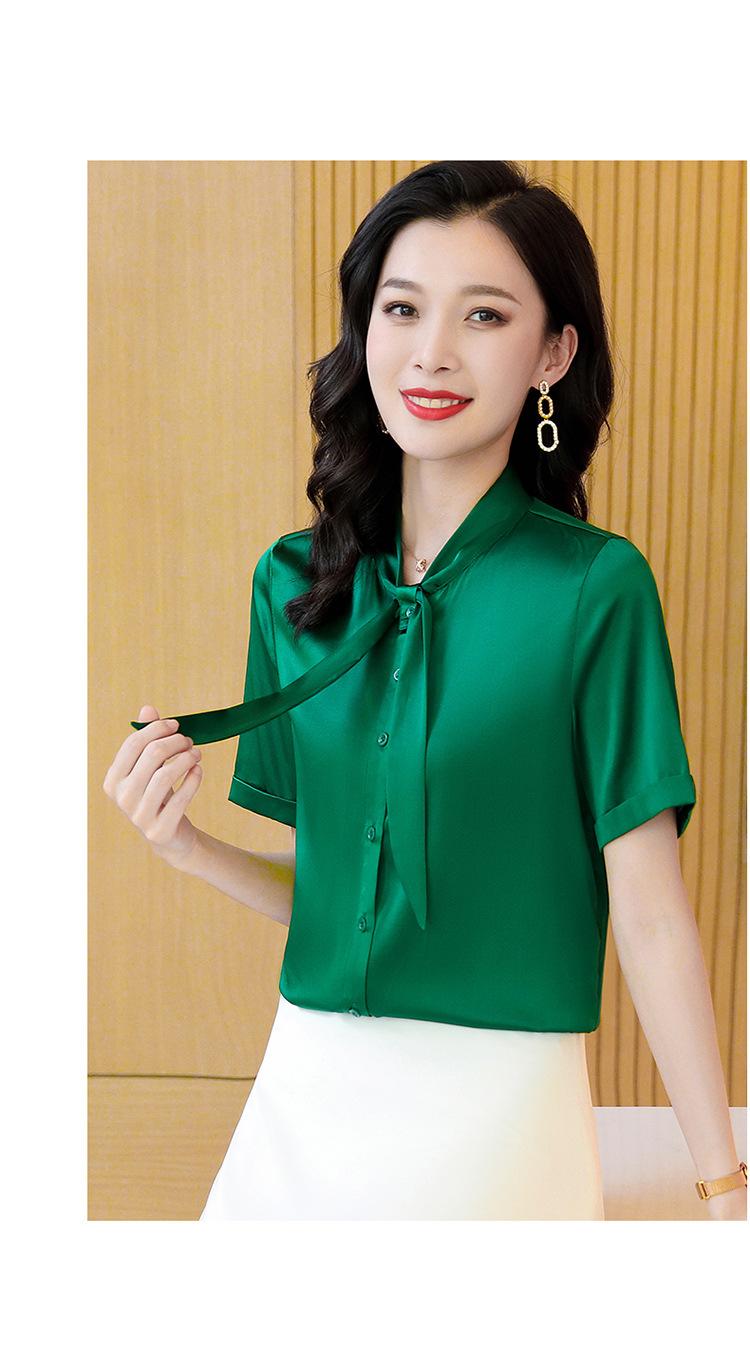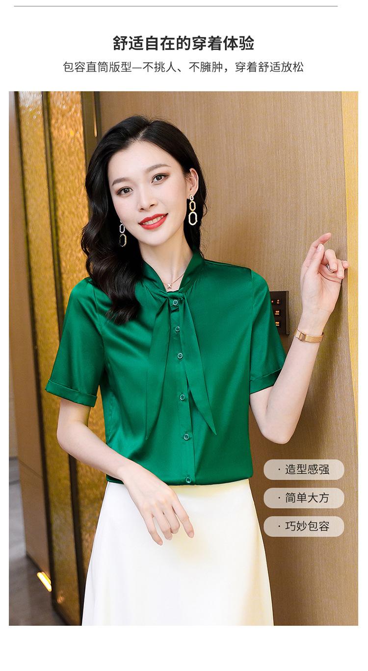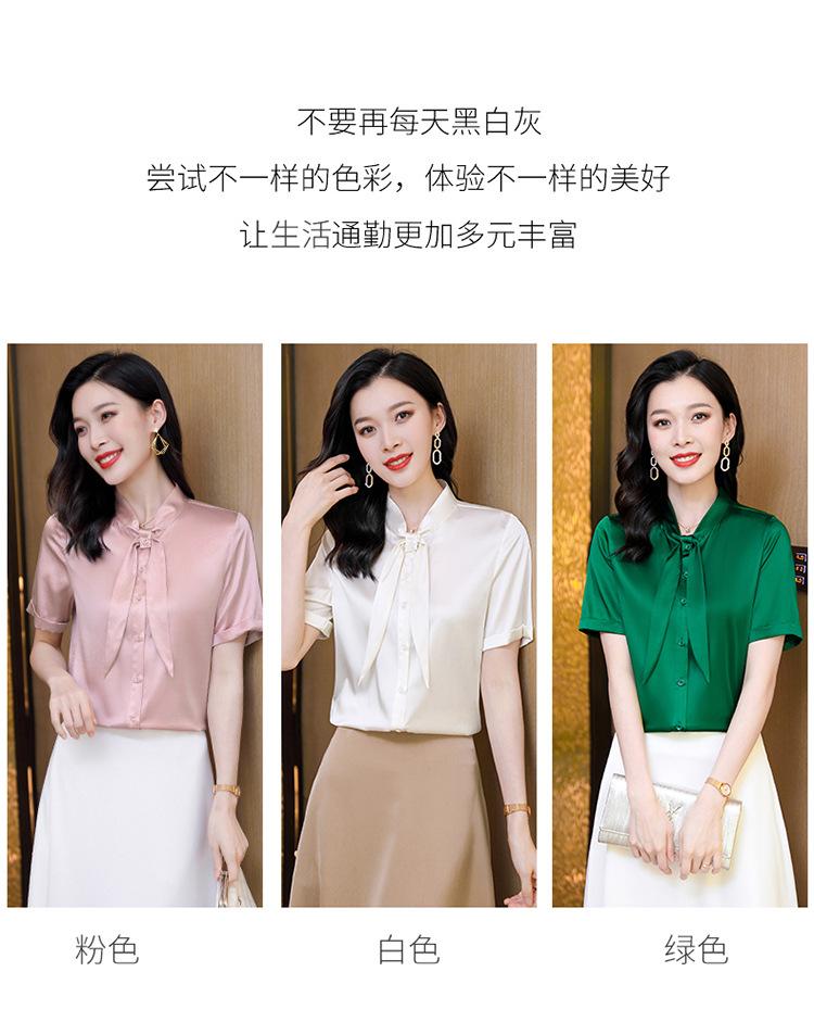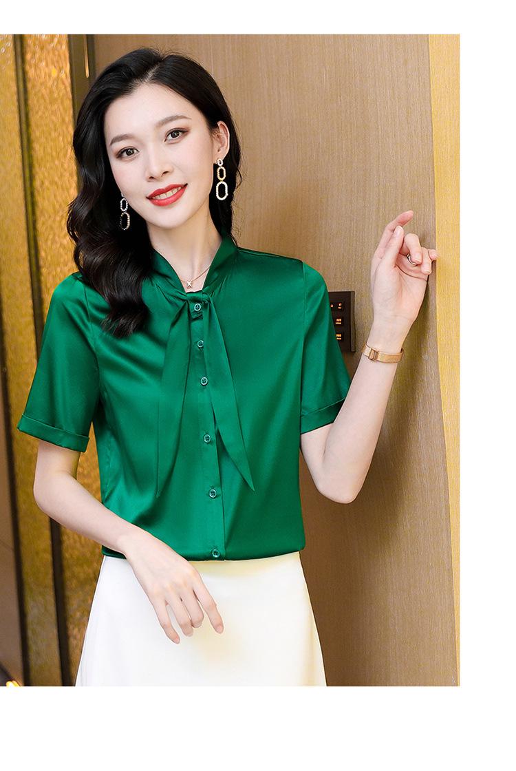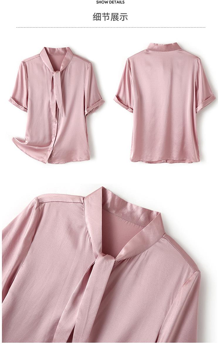Verano Nuevo Estilo Encaje Diseño de Seda Color Sólido Estilo Elegante Maduro Versátil Moda Lazo Camisa de Manga Corta para Mujer