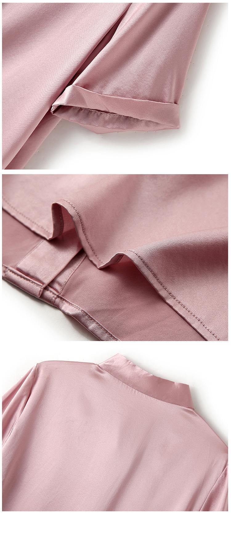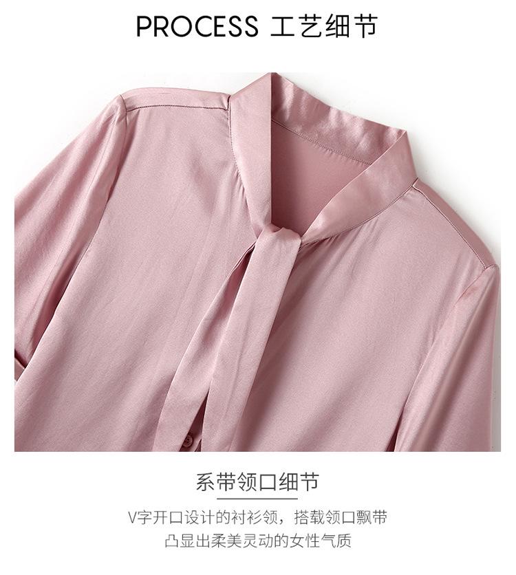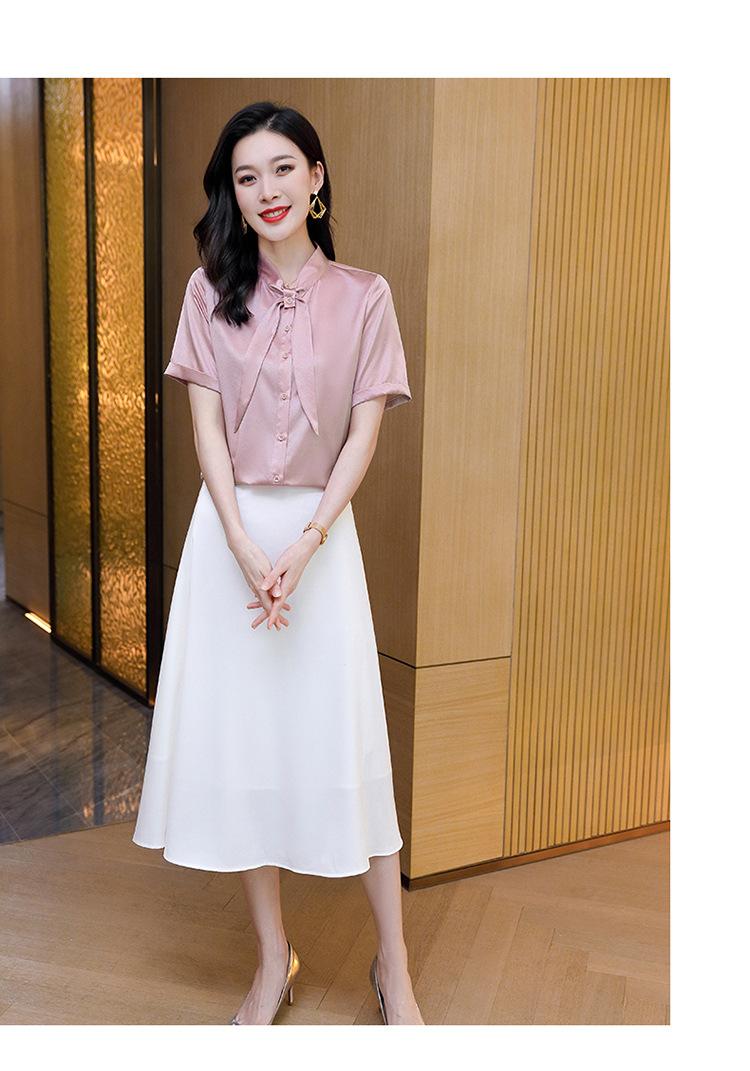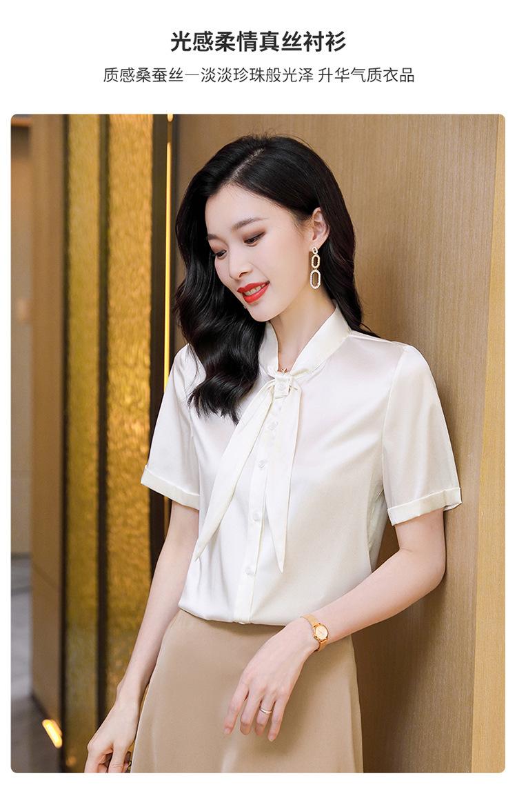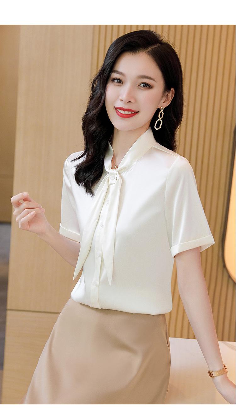Verano Nuevo Estilo Encaje Diseño de Seda Color Sólido Estilo Elegante Maduro Versátil Moda Lazo Camisa de Manga Corta para Mujer