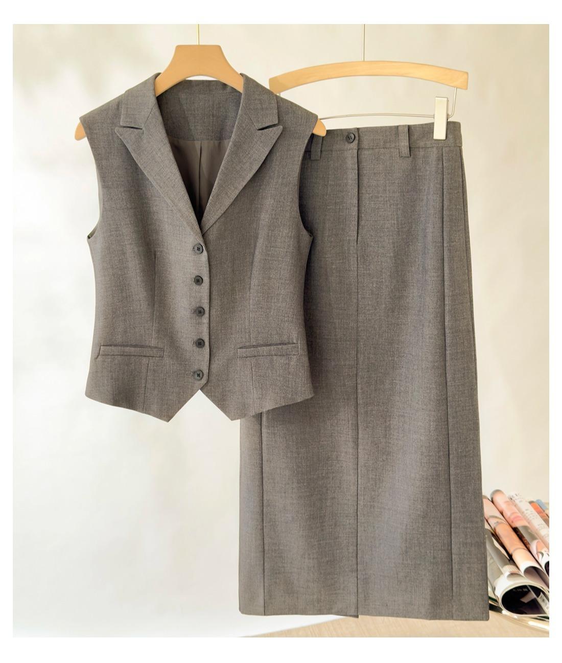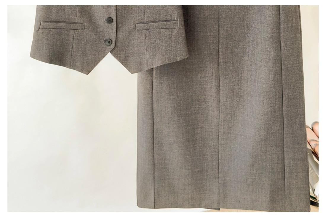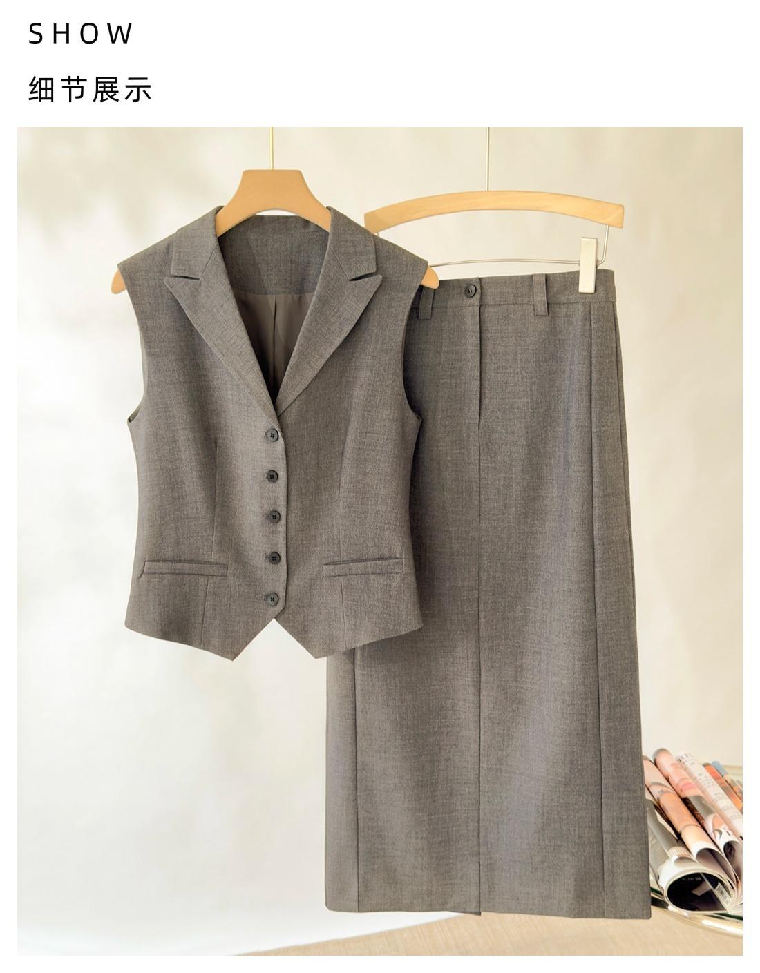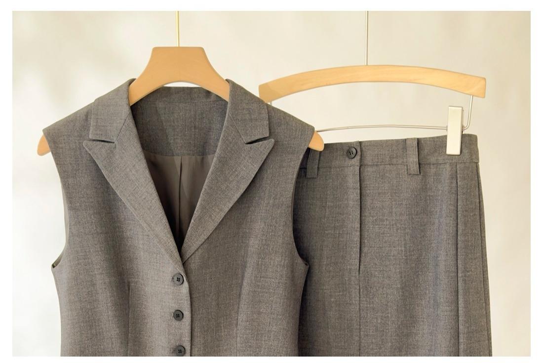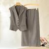 Traje de falda y chaleco de lana peinada profesional Endy Verano Sentido de alta gama Elegante Top chaleco sin mangas Falda recta