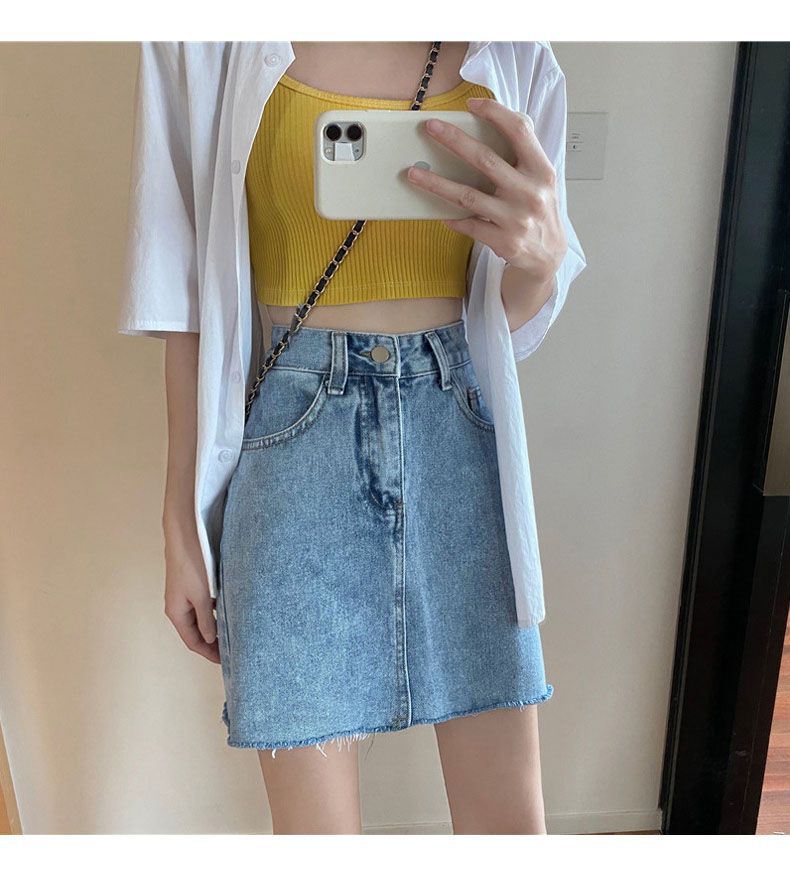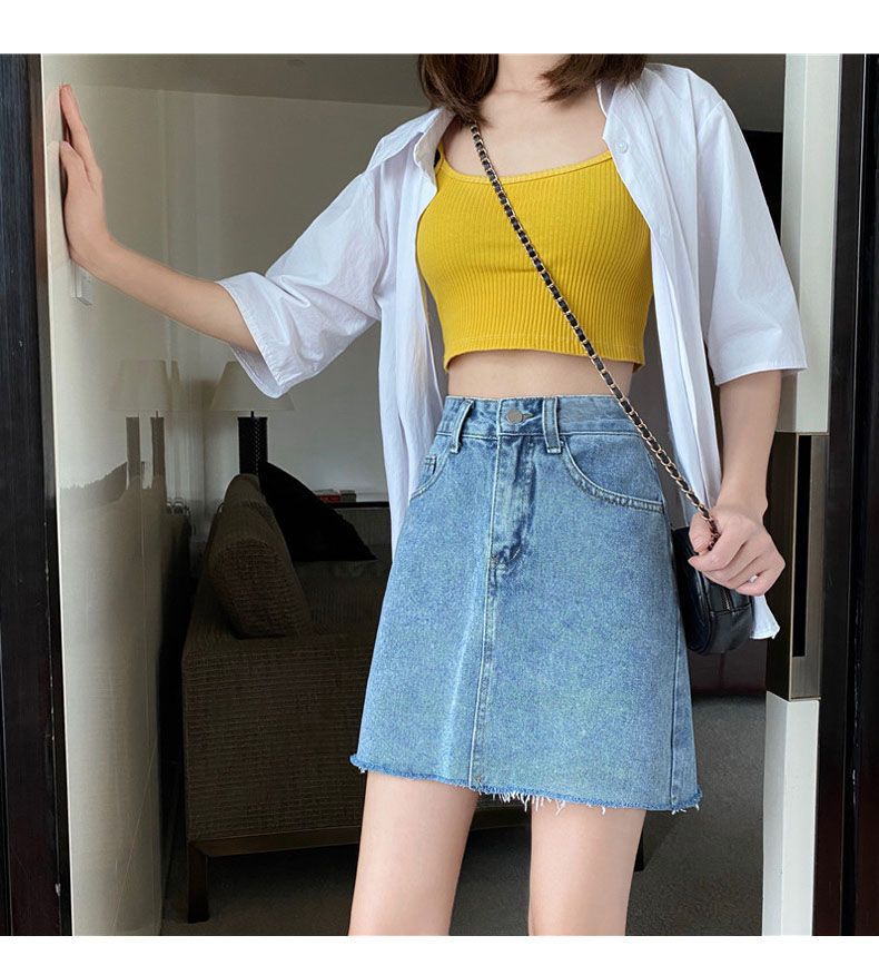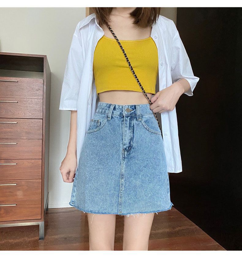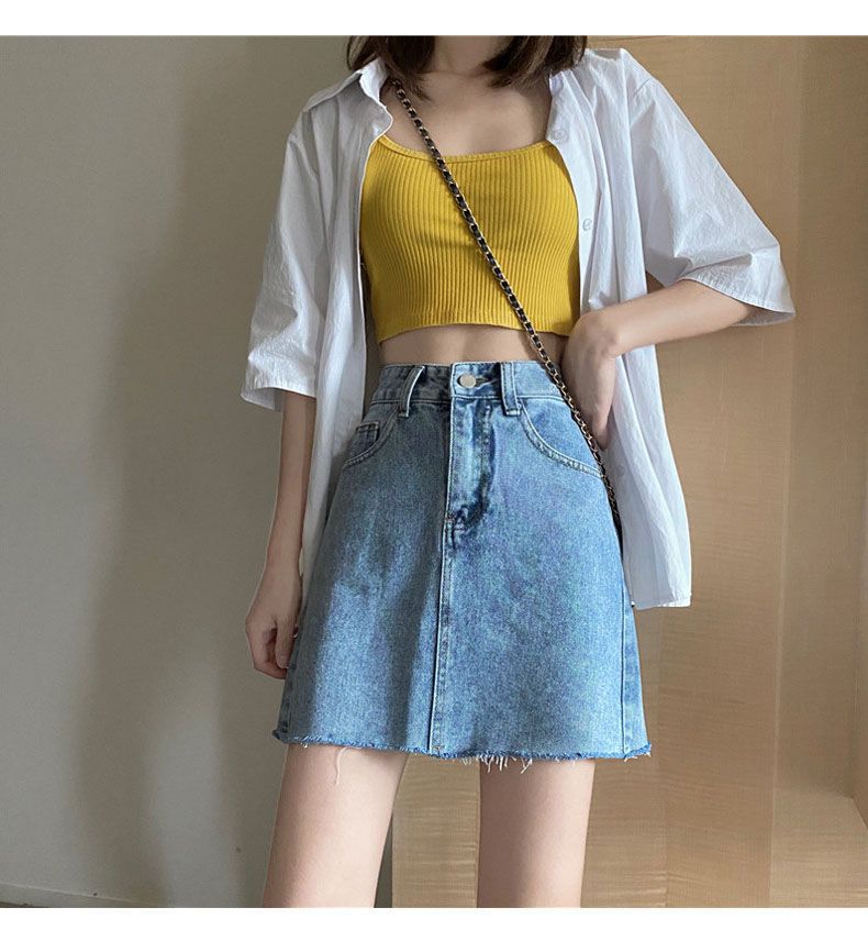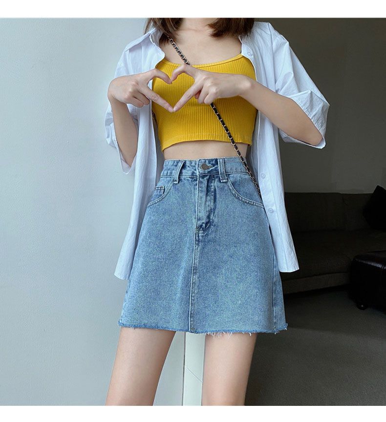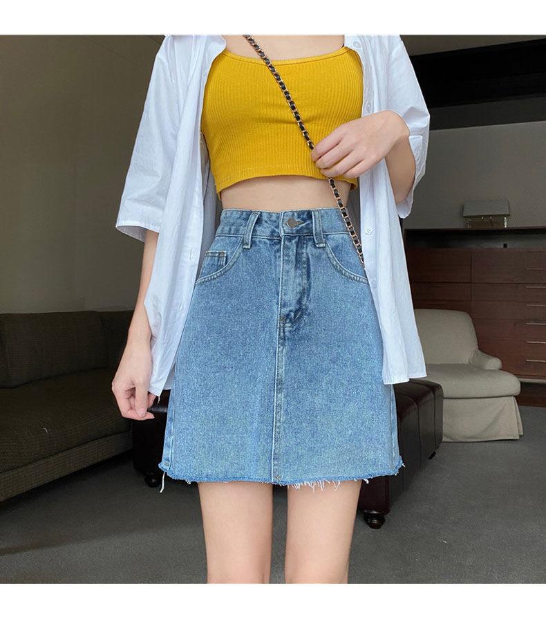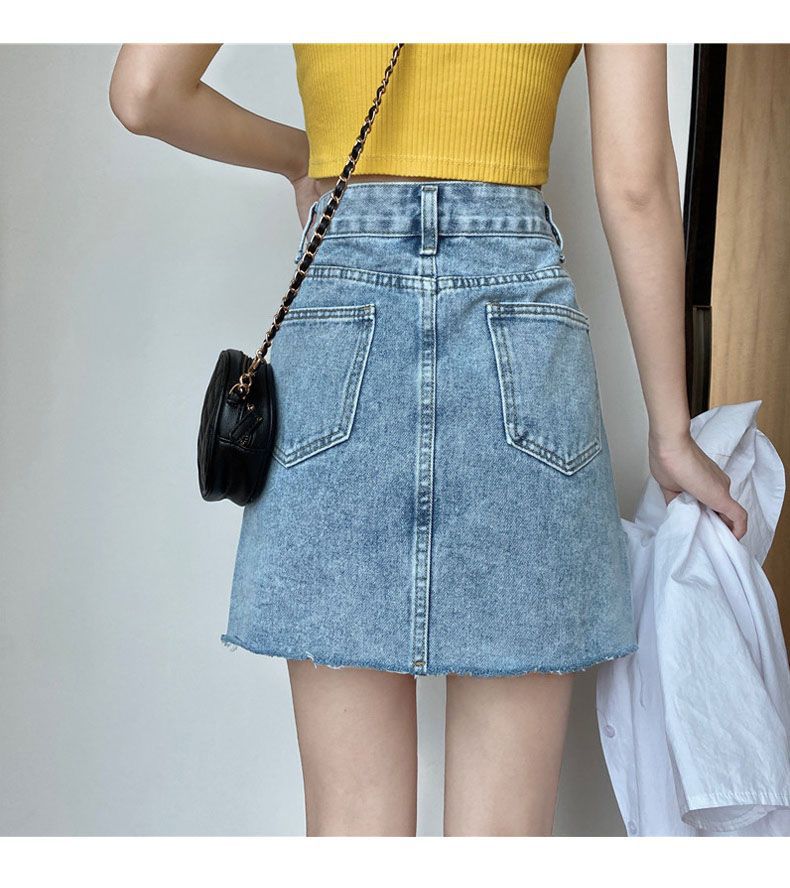Falda Vaquera Azul Claro Chic Corte A Cintura Alta Primavera Falda de Mujer 2025 Nuevo Estilo de Alta Gama Falda Corta Moderna