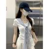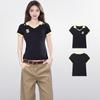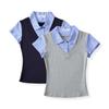 Playera de Manga Corta para Mujer de Verano Slim Corta Estilo Preppy Americano de Dos Piezas Falsas con Cuadros y Cuello Polo Hombro Derecho