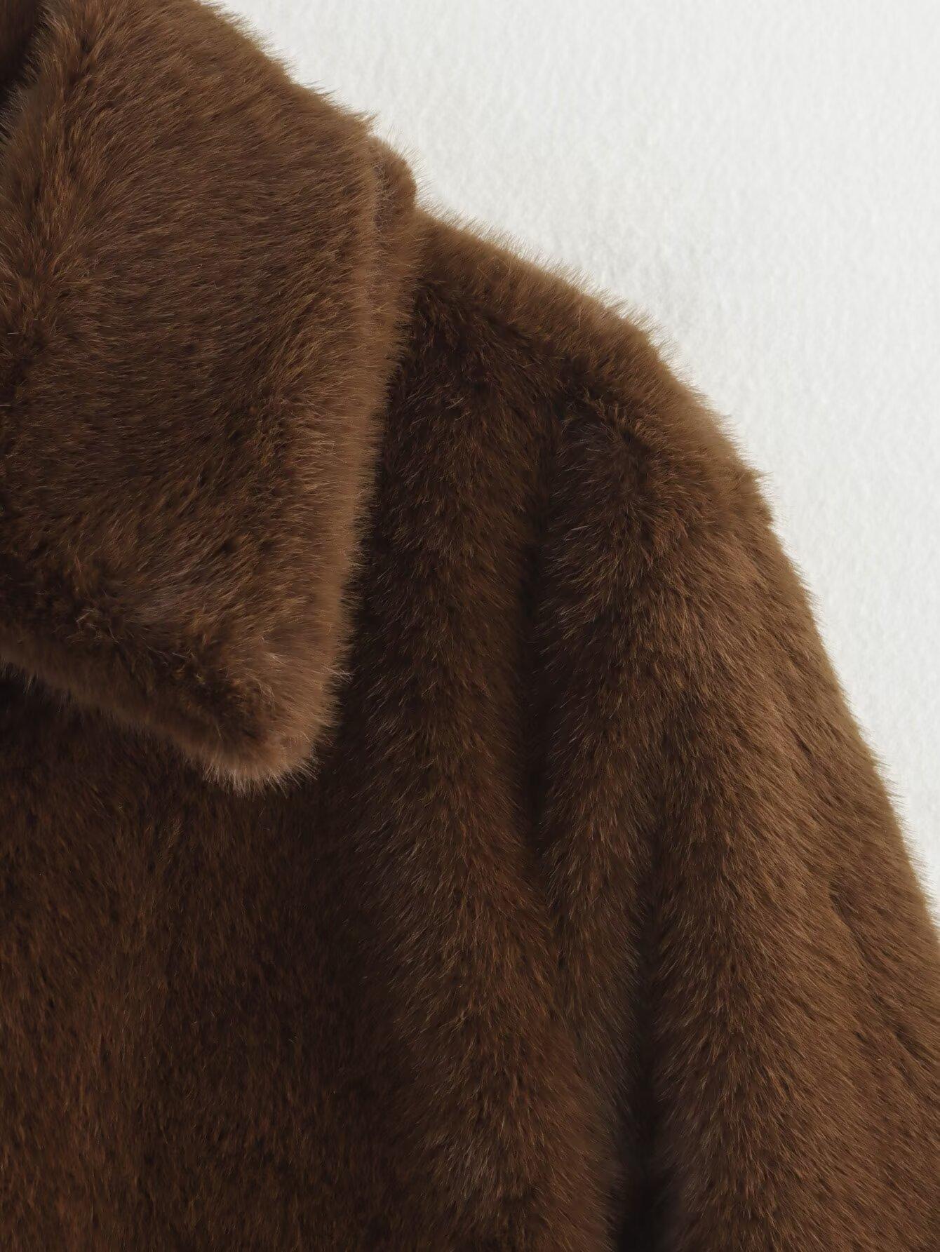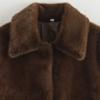 Abrigo Chaqueta Casual Holgada Versátil de Solapa con Efecto de Piel Sintética Retro para Mujer Otoño e Invierno