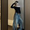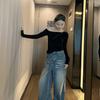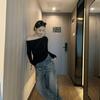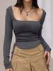 2025 Otoño Deseo Puro Spice Girl Ajustado Adelgazante Hombro Camiseta de Manga Larga para Mujer Diseño Nicho de Principios de Otoño Top Combinable
