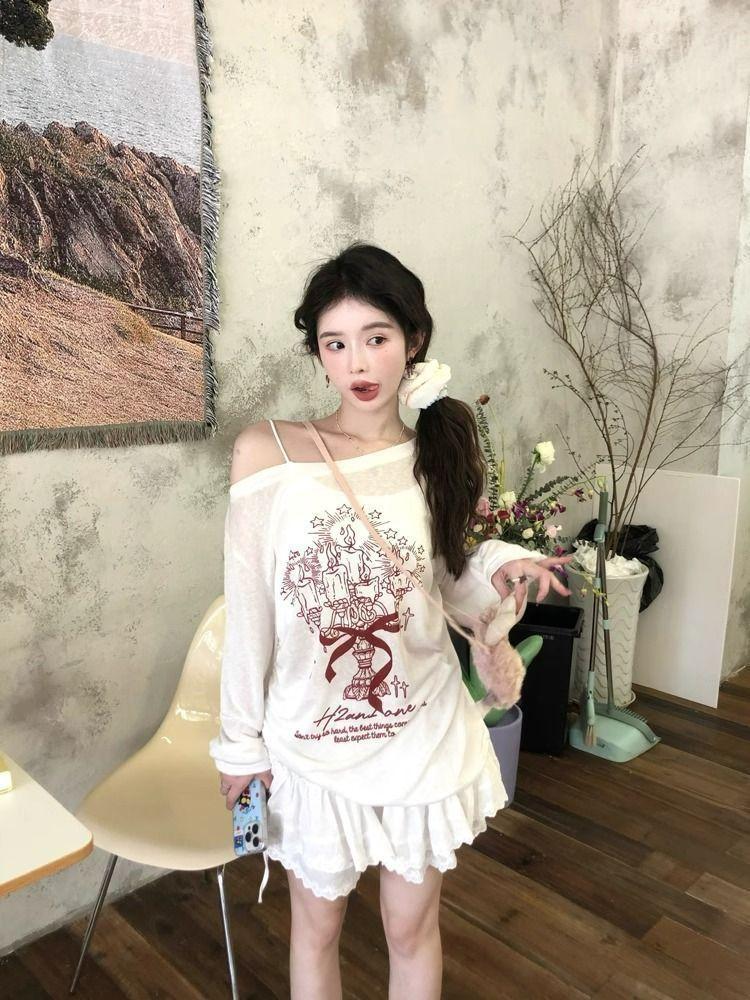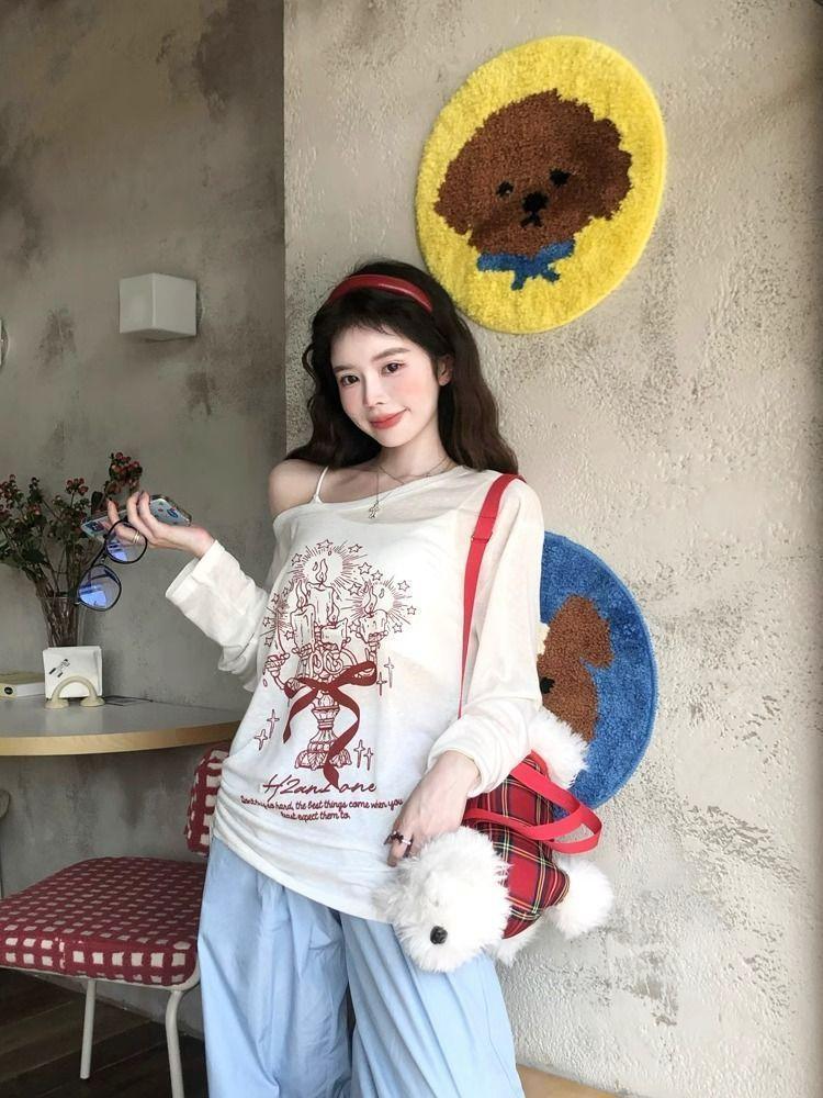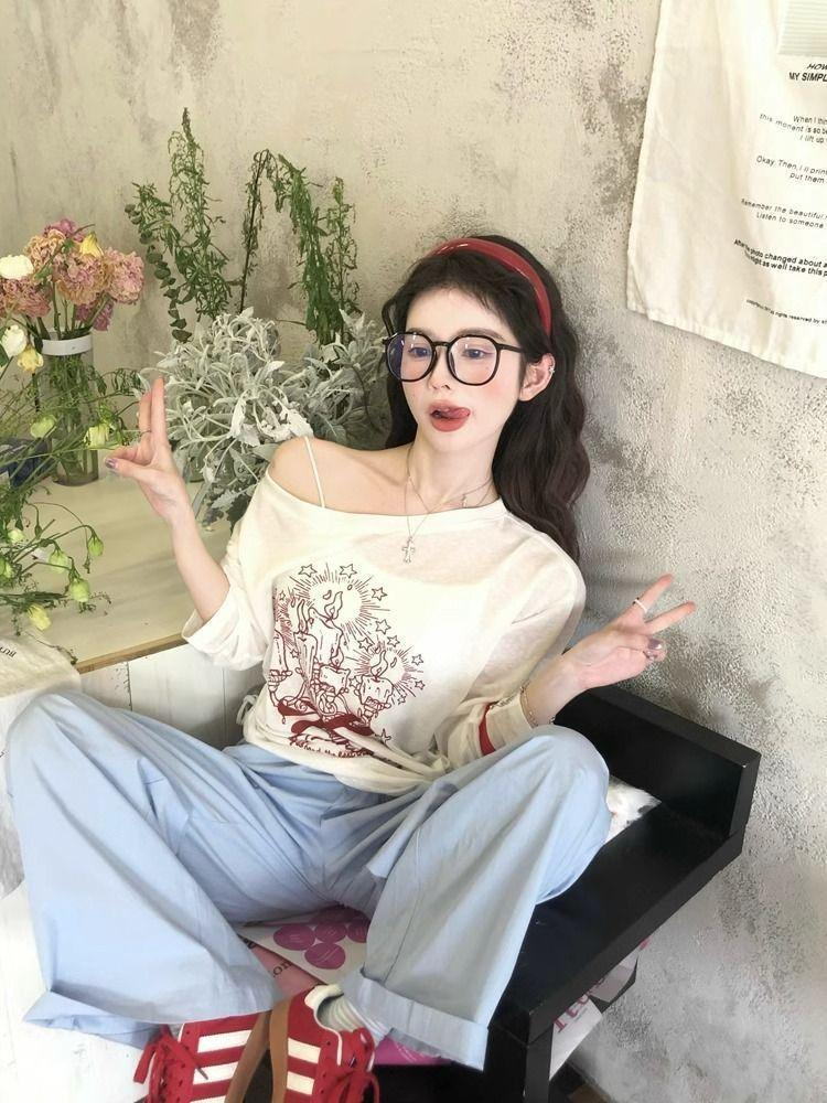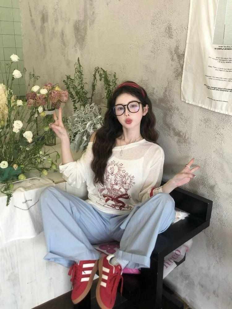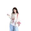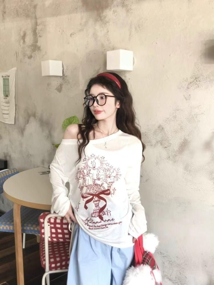 Camiseta de Manga Larga Simple de Estilo Preppy Coreano a la Moda Verano Nueva Versátil Camisa de Protección Solar Diseño Estampado Top para Mujer