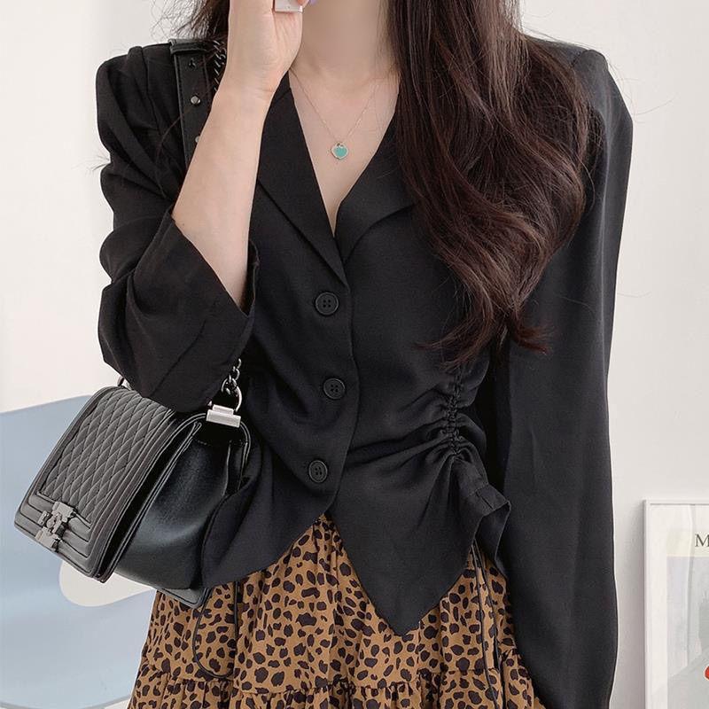 Manga Larga Otoño Nuevo Temperamento Simple Cuello Vuelto Tres Botones Cintura con Cordón Adelgazante Chaqueta de Traje para Mujer Top
