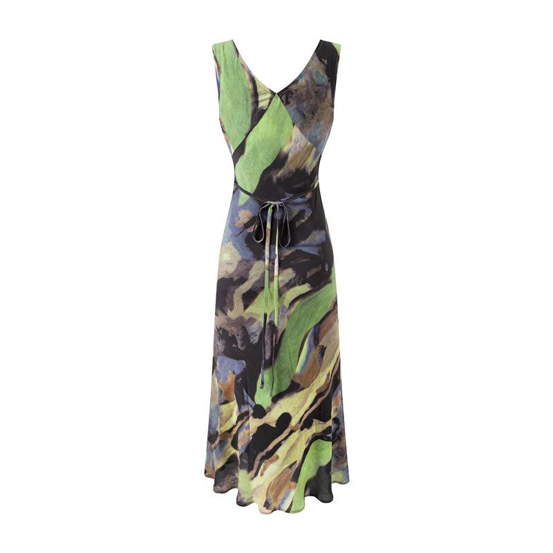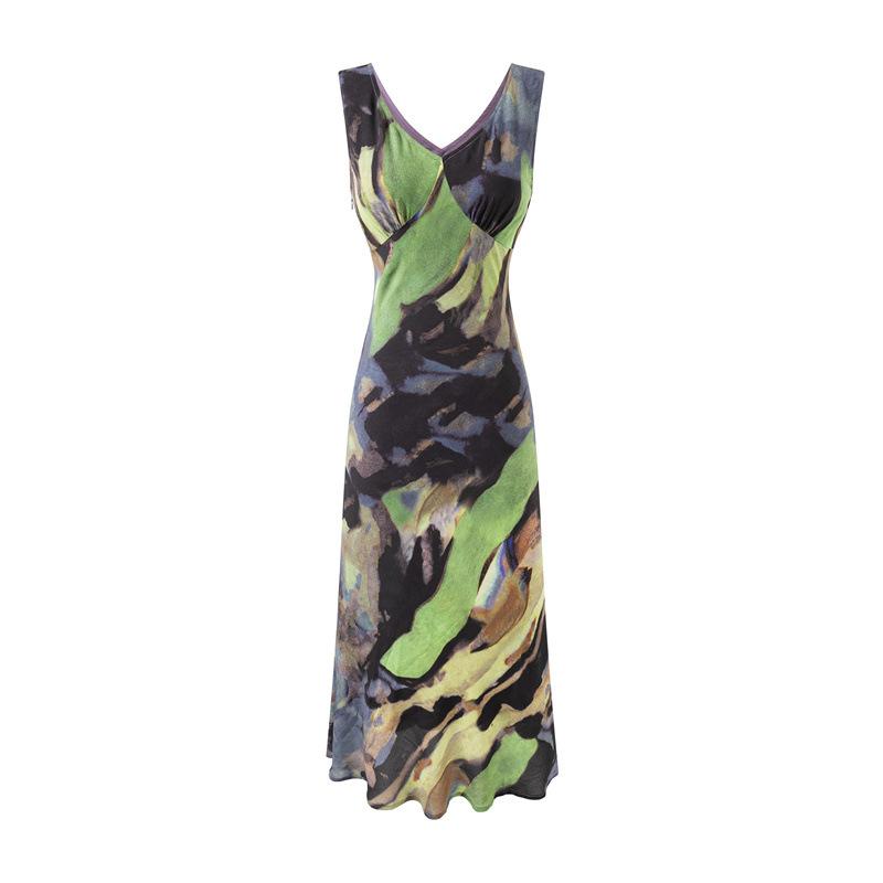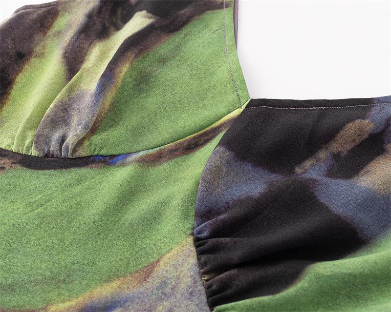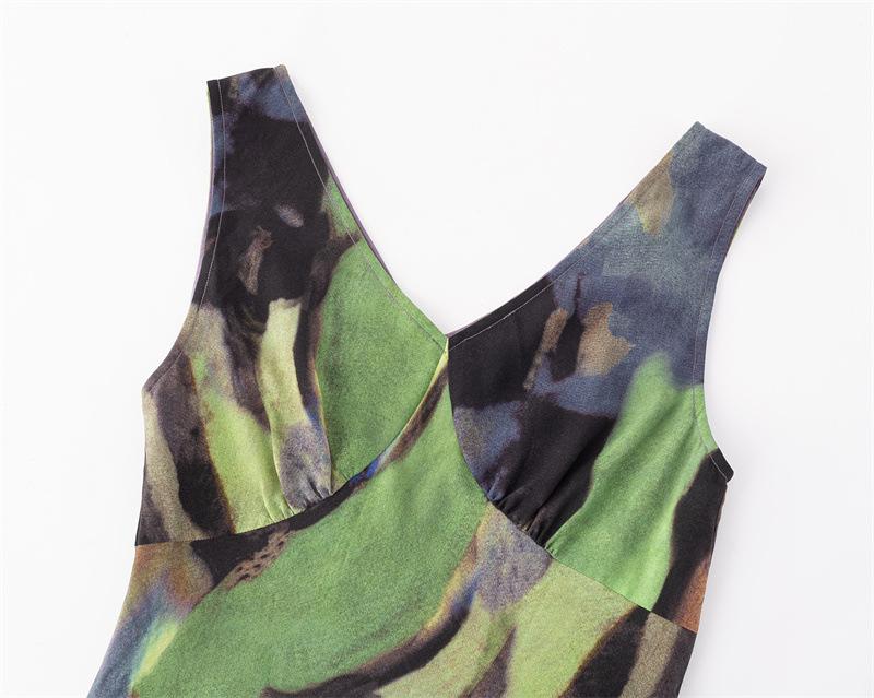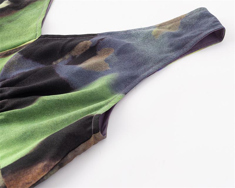 Vestido de Verano Ajustado de Alta Gama, Elegante y Sexy con Cuello en V Profundo y Estampado de Cintura Difuminada