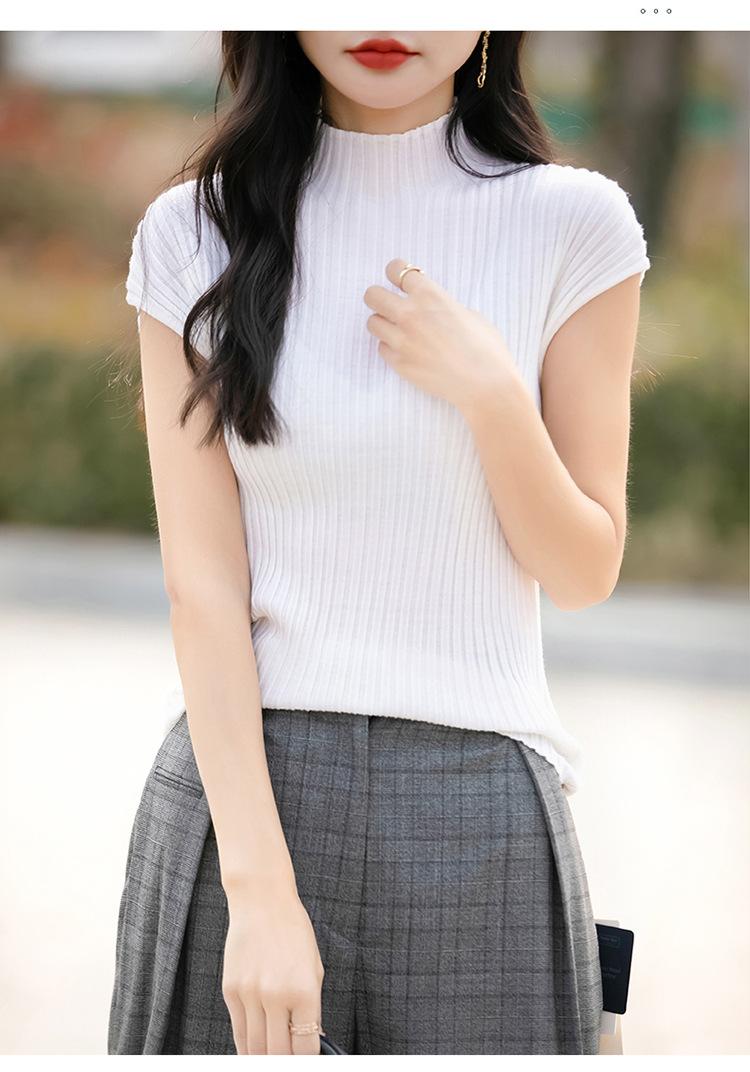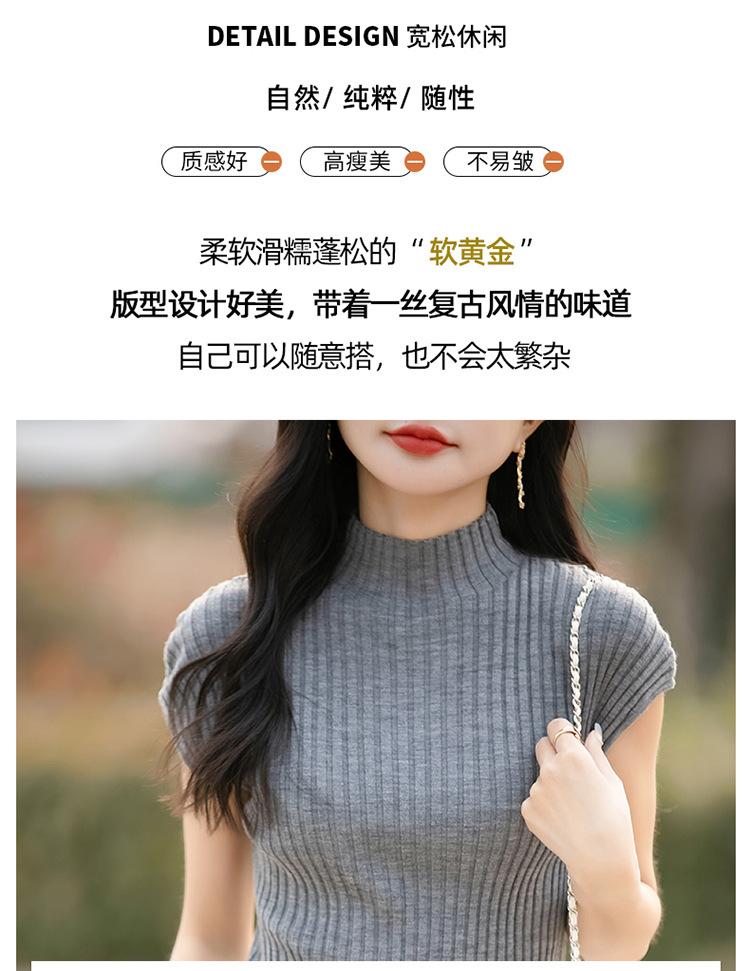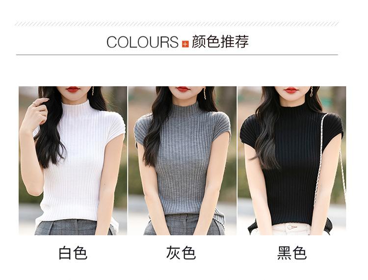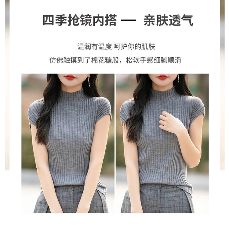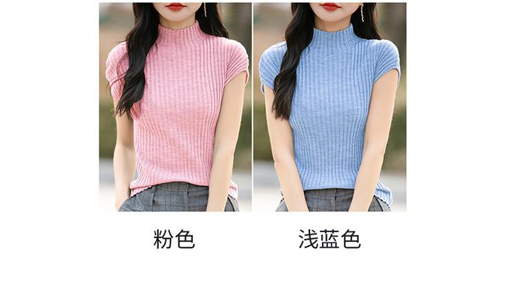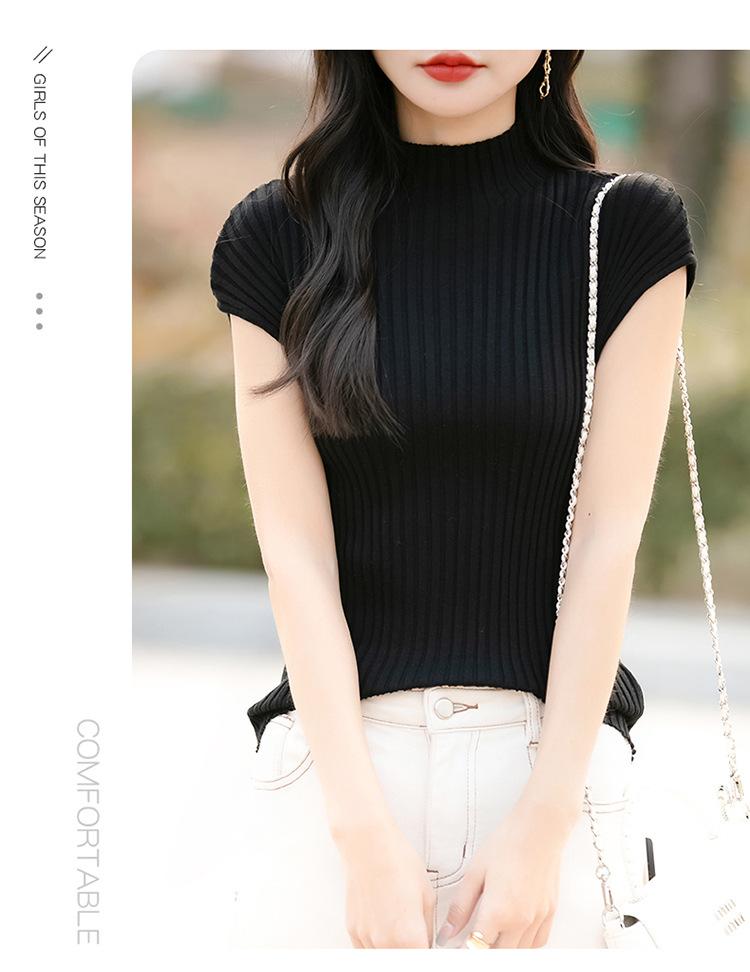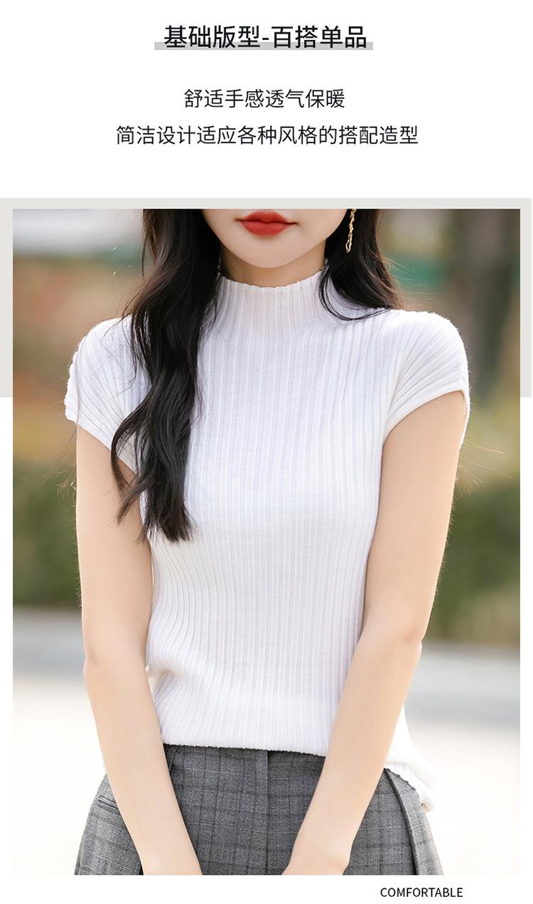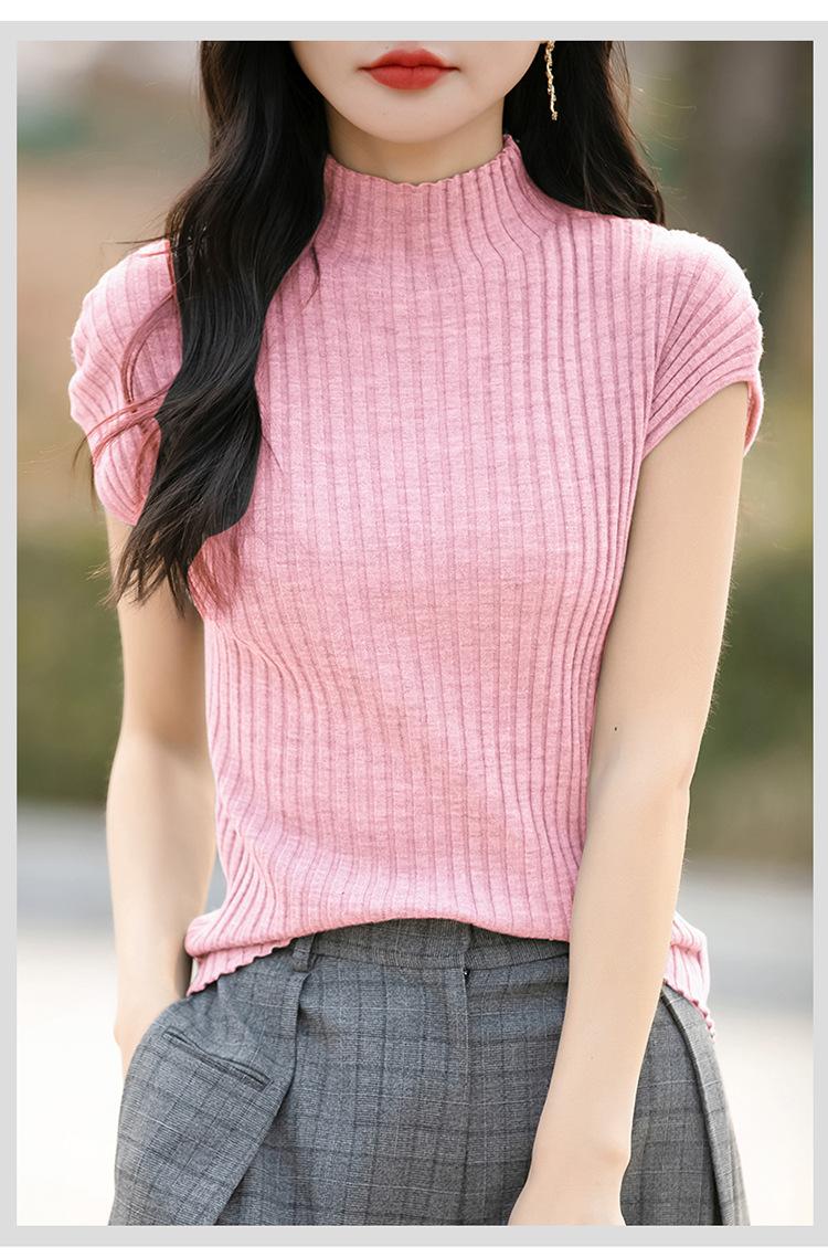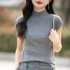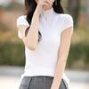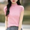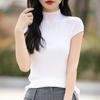 Suéter de Lana Peinada de Cuello Semialto de Primavera 2025 de Nueva Llegada de Manga Corta Color Sólido Holgado Básico para Mujer