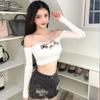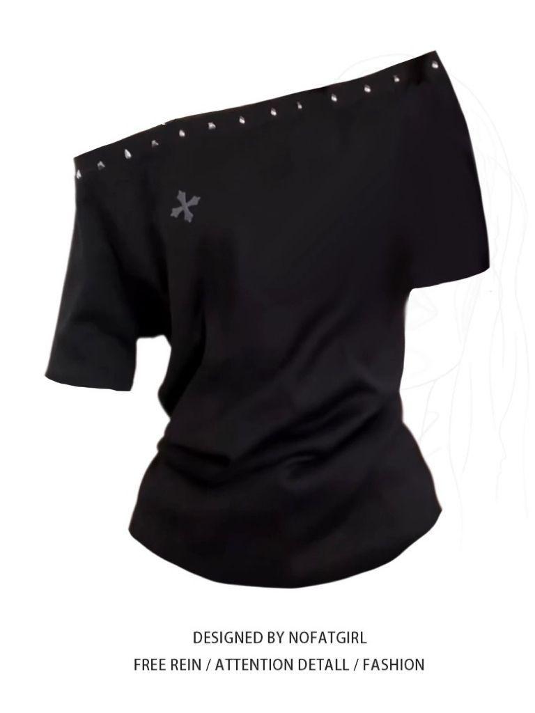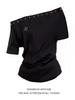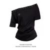 Sexy Camiseta de Manga Corta con Cuello Asimétrico y Hombro Descubierto para Mujer, Nueva Tendencia de Verano Estilo Holgazán Negro Top Adelgazante Suelto
