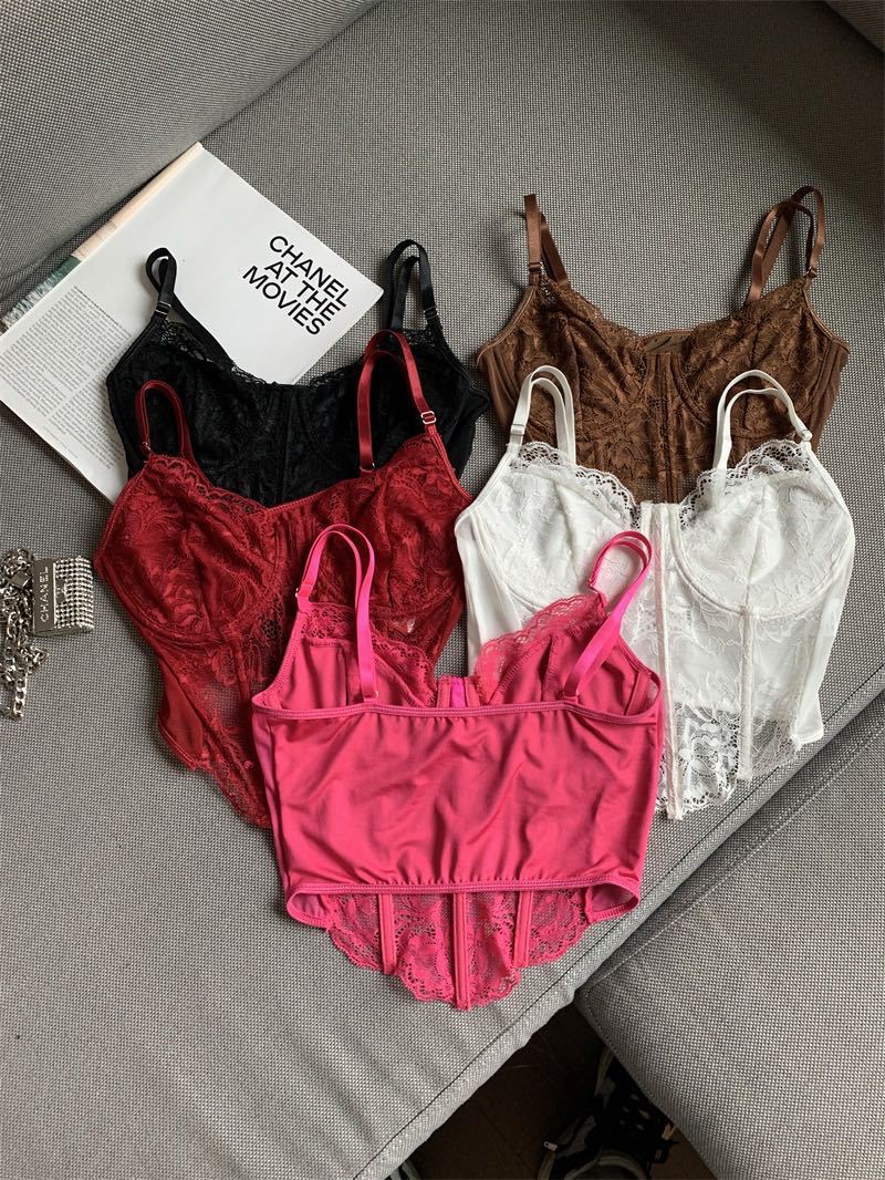 900 # Corsé Sexy de Encaje con Tirantes Corsé para Mujer Corsé Ropa Exterior Corsé Europeo y Americano Transpirable Moldeador de Cuerpo Chaleco Interior