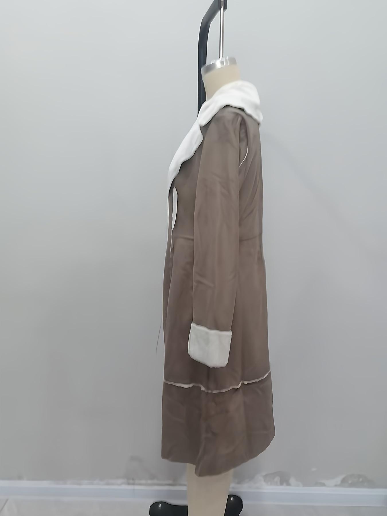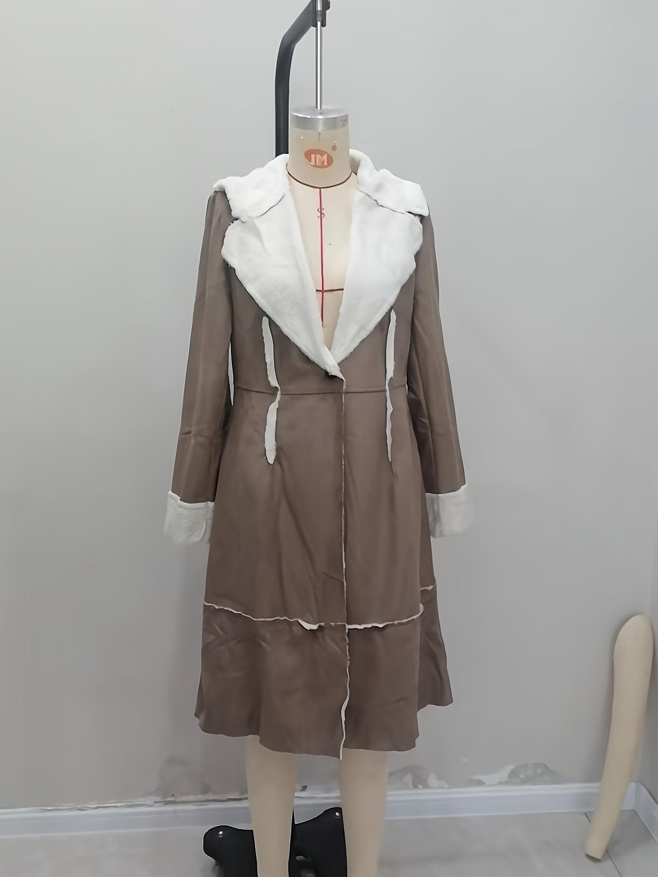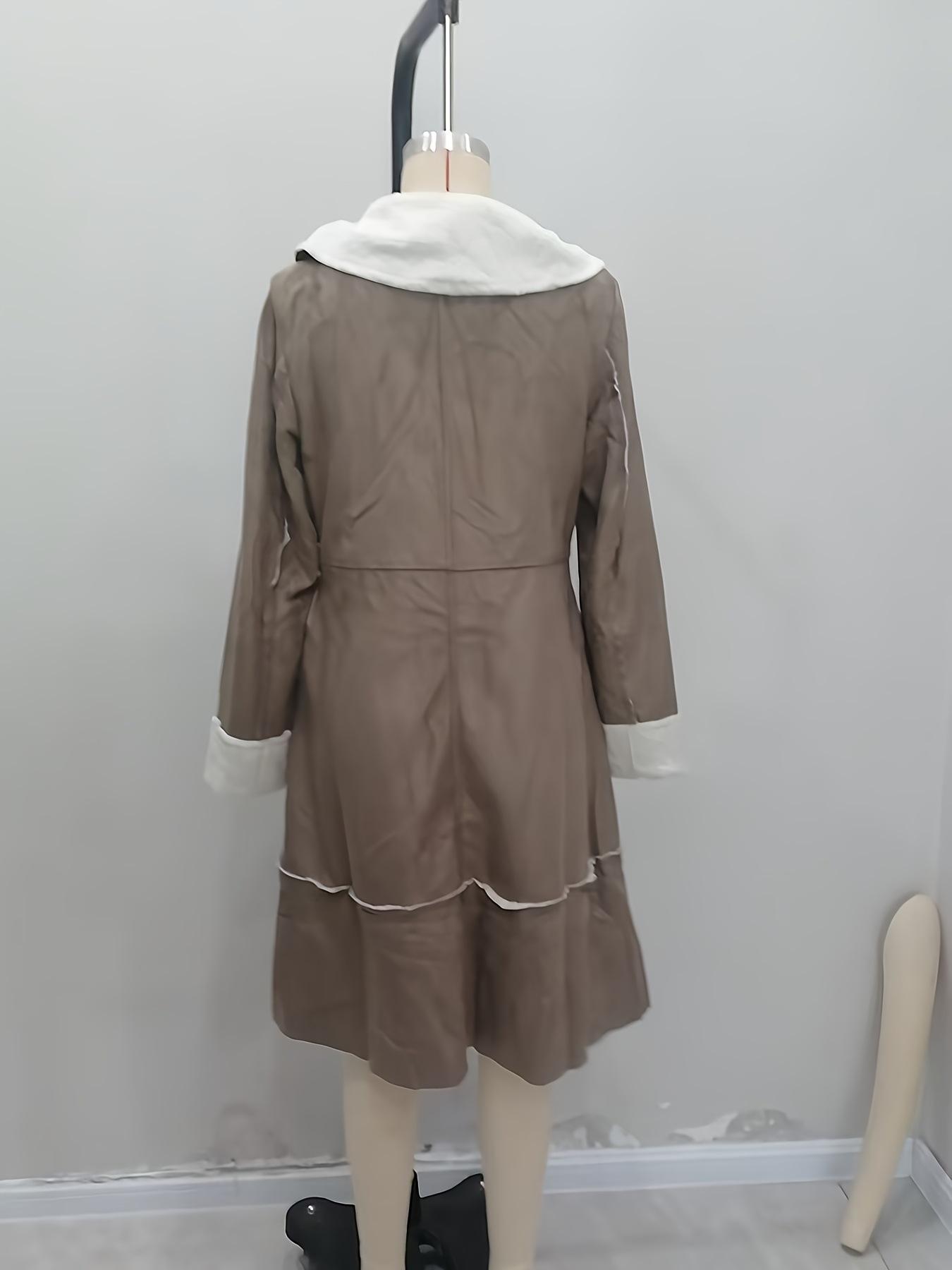 Chaqueta de Invierno para Mujer Europea y Americana Transfronteriza Acolchada de Algodón Casual Retro Marrón Media Longitud Plus Terciopelo Compuesto Cálida