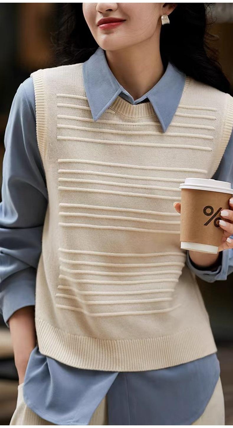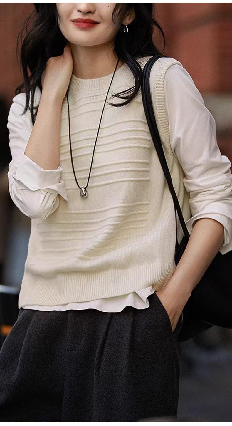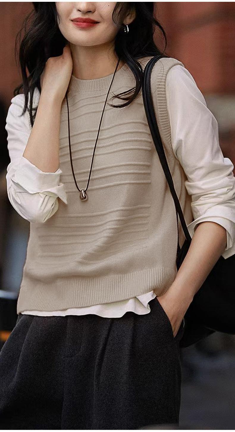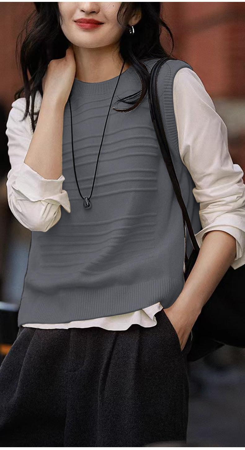 25 Otoño/Invierno Nuevo 100% Lana Cuello Redondo Chaleco Tejido para Mujer Holgado Versátil Sencillo Moda Sin Mangas Tank Top para Superponer