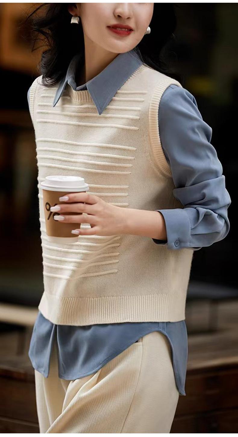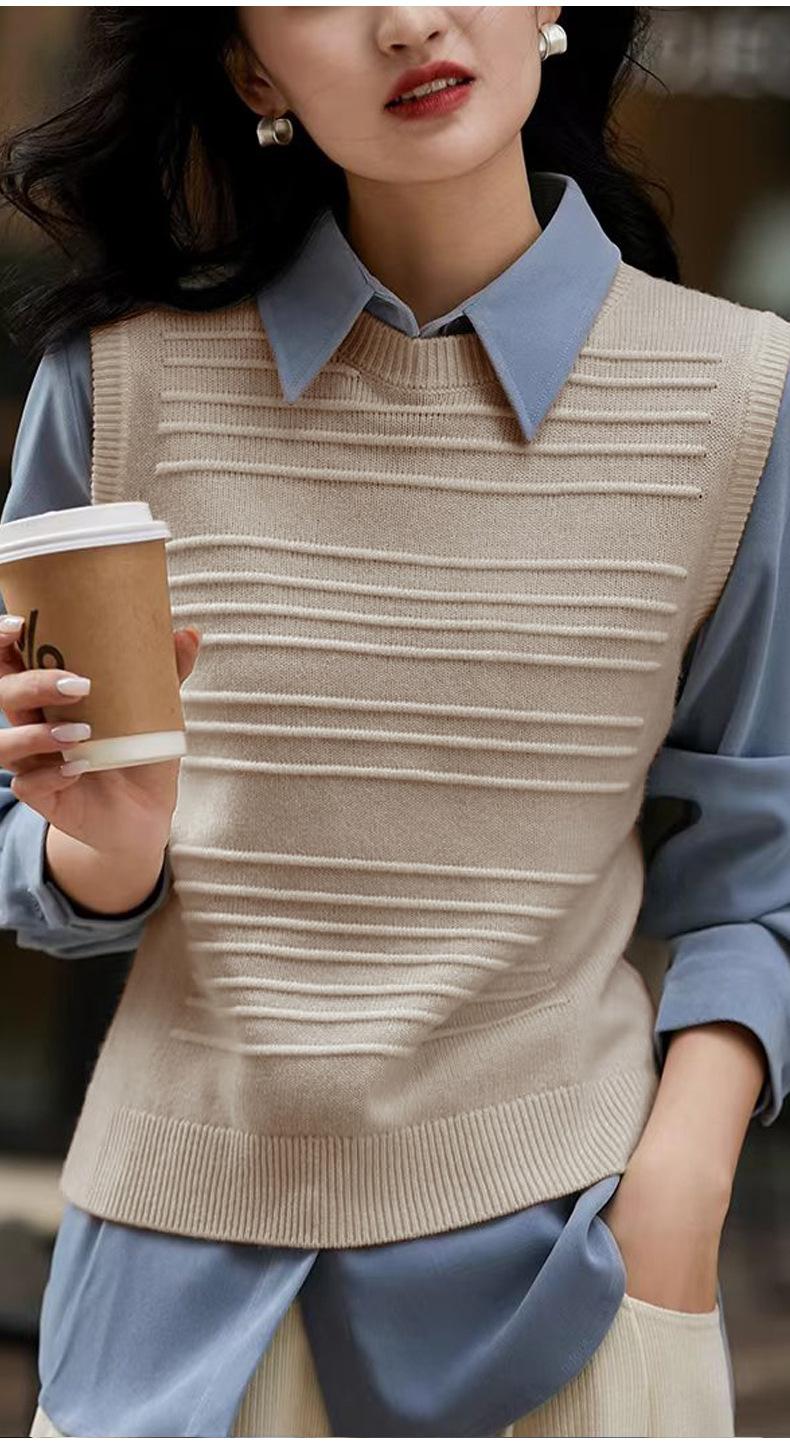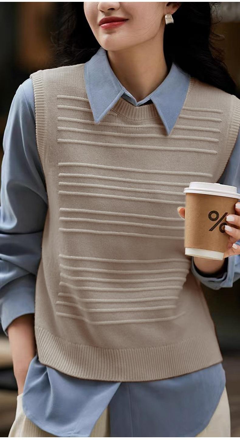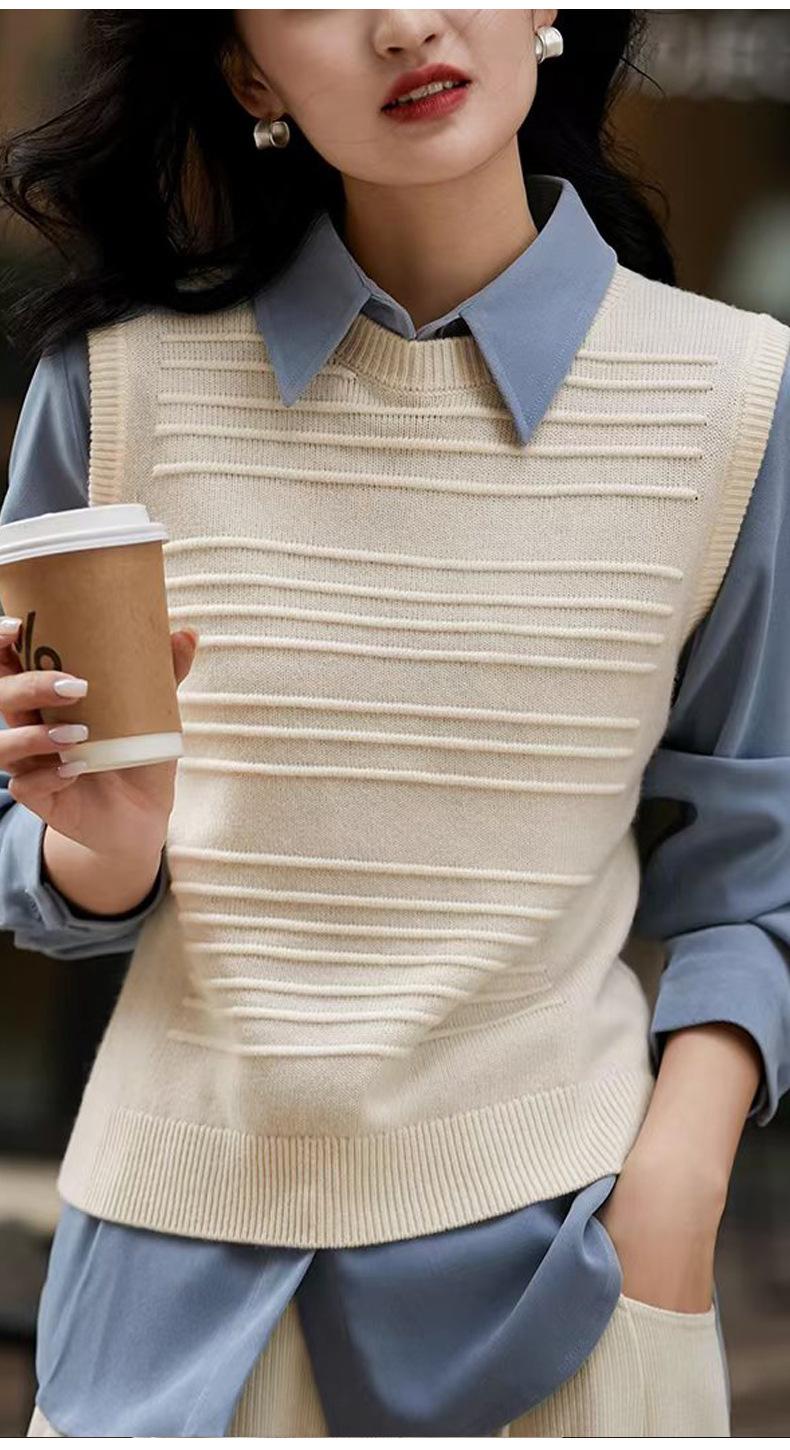 25 Otoño/Invierno Nuevo 100% Lana Cuello Redondo Chaleco Tejido para Mujer Holgado Versátil Sencillo Moda Sin Mangas Tank Top para Superponer