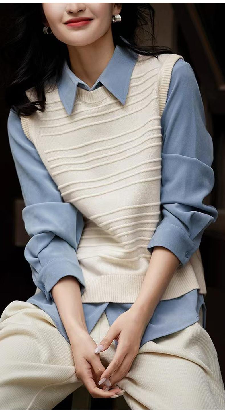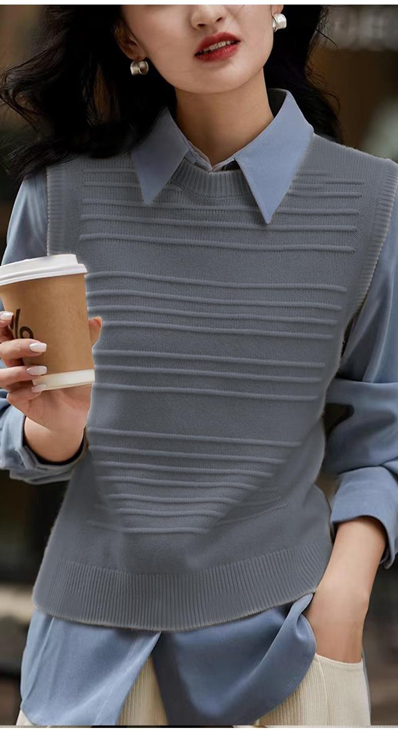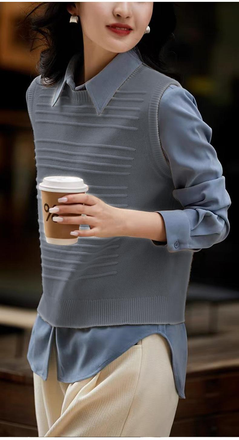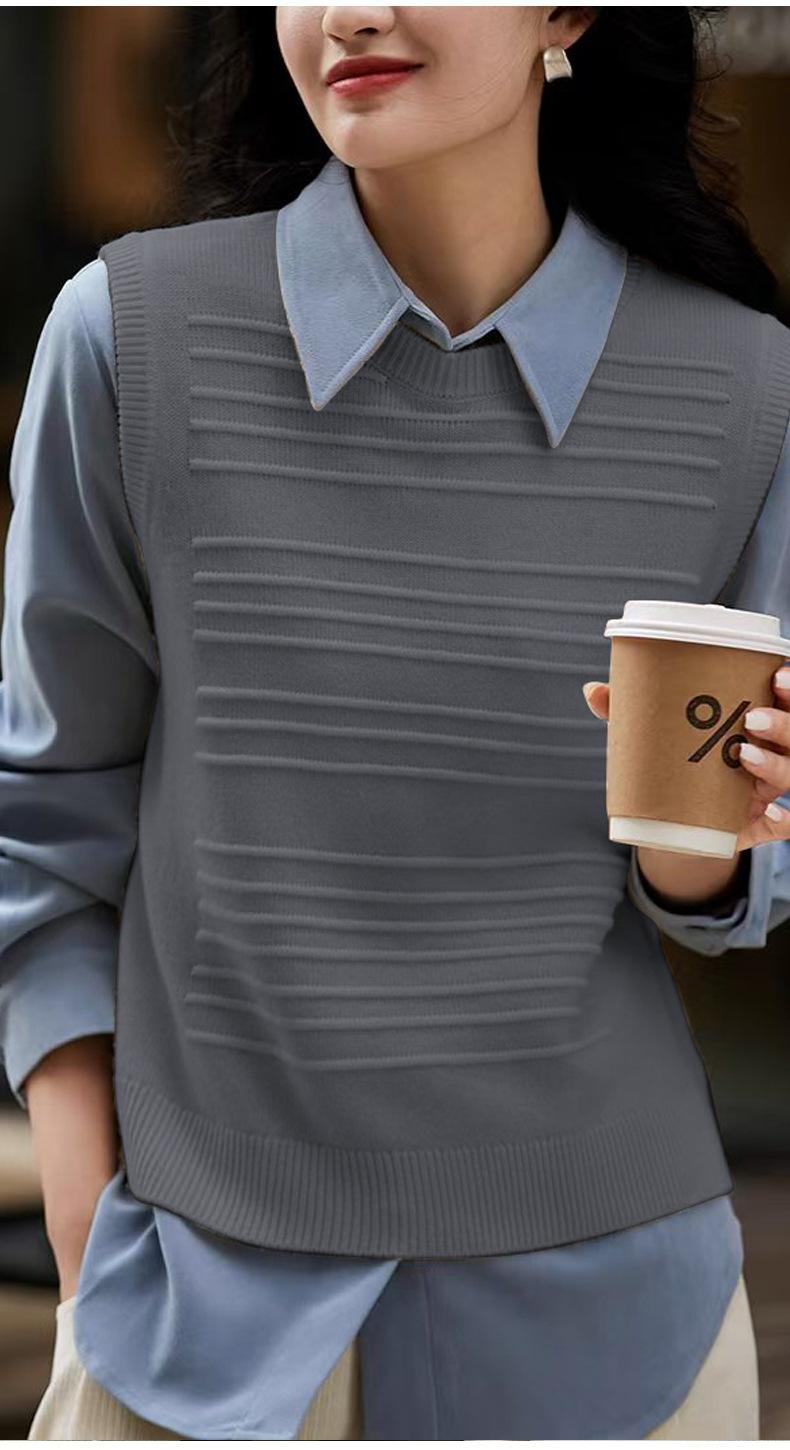 25 Otoño/Invierno Nuevo 100% Lana Cuello Redondo Chaleco Tejido para Mujer Holgado Versátil Sencillo Moda Sin Mangas Tank Top para Superponer