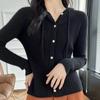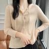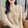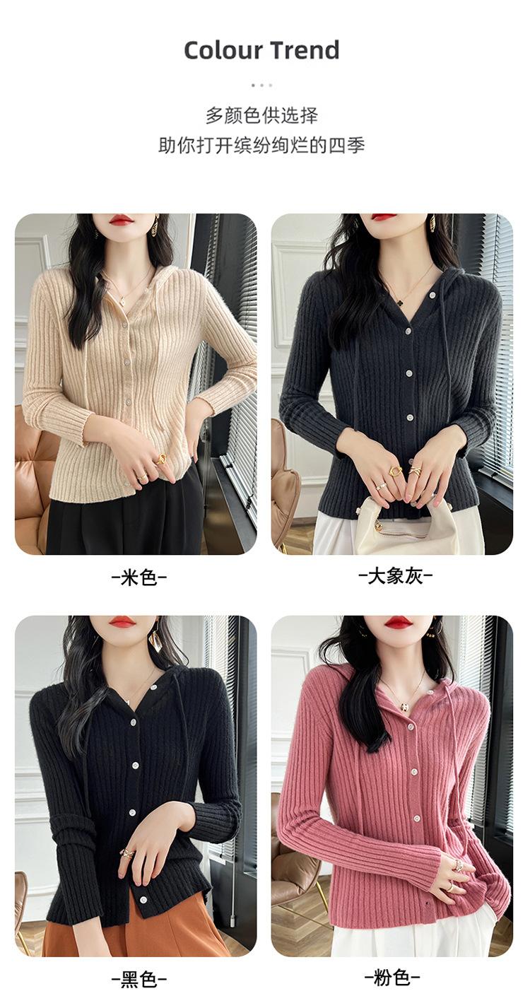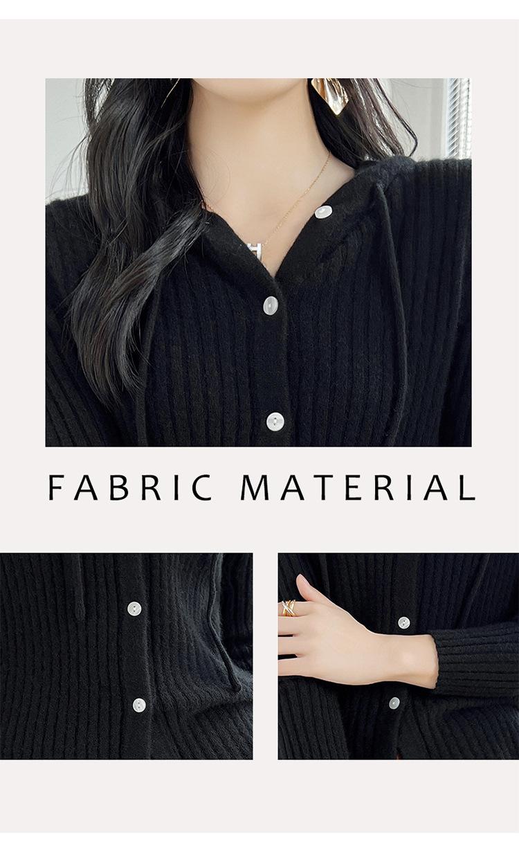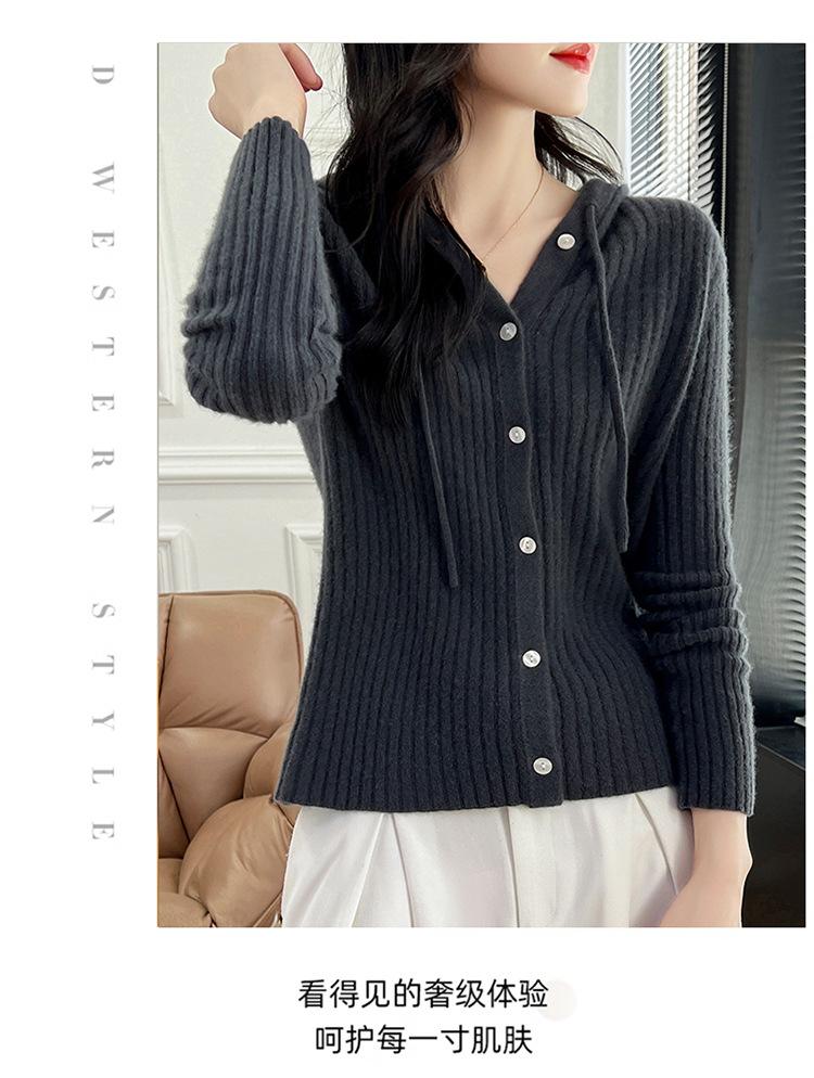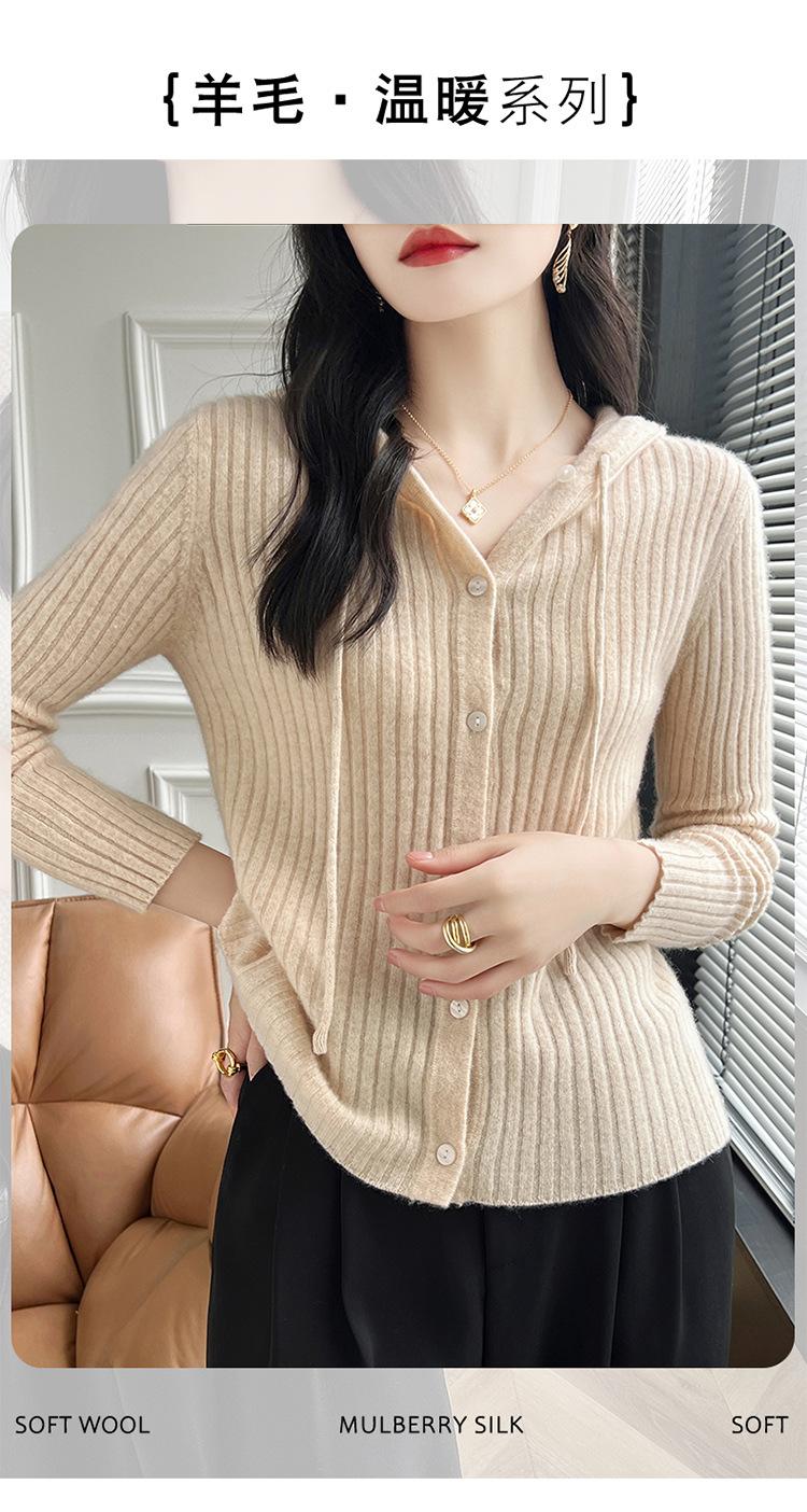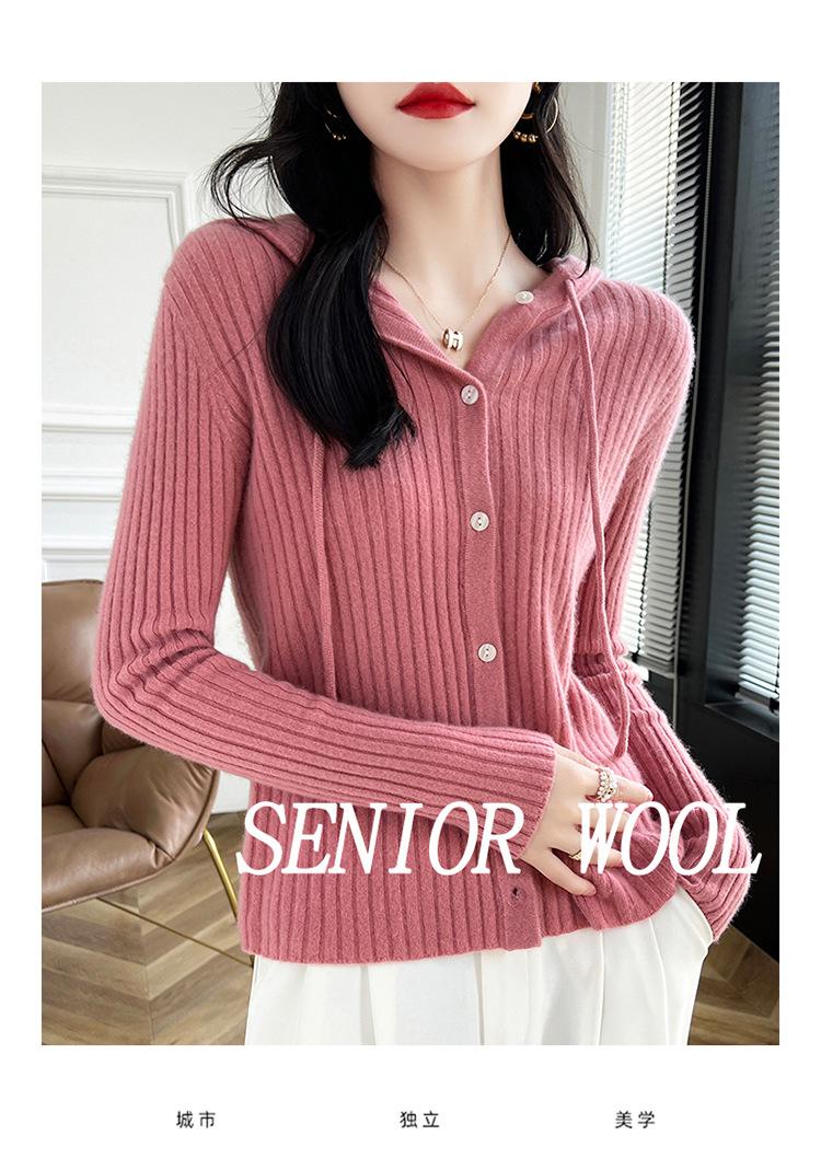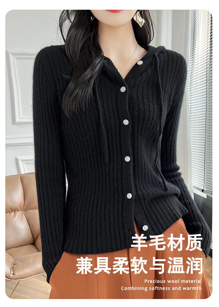 Cárdigan de Punto con Capucha de Lana Pura Nuevo Otoño e Invierno 2024 Ajustado Adelgazante Color Sólido Abrigo Suéter para Mujer