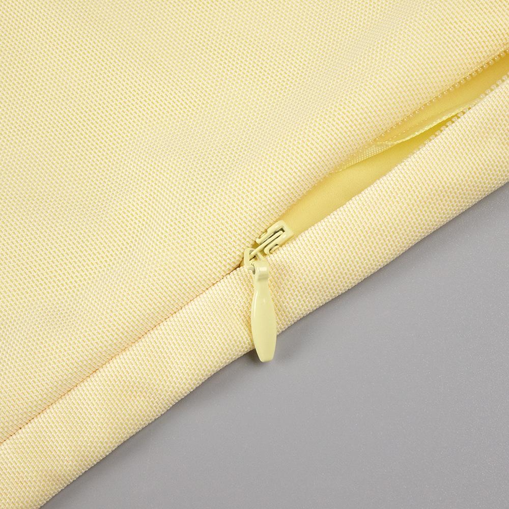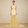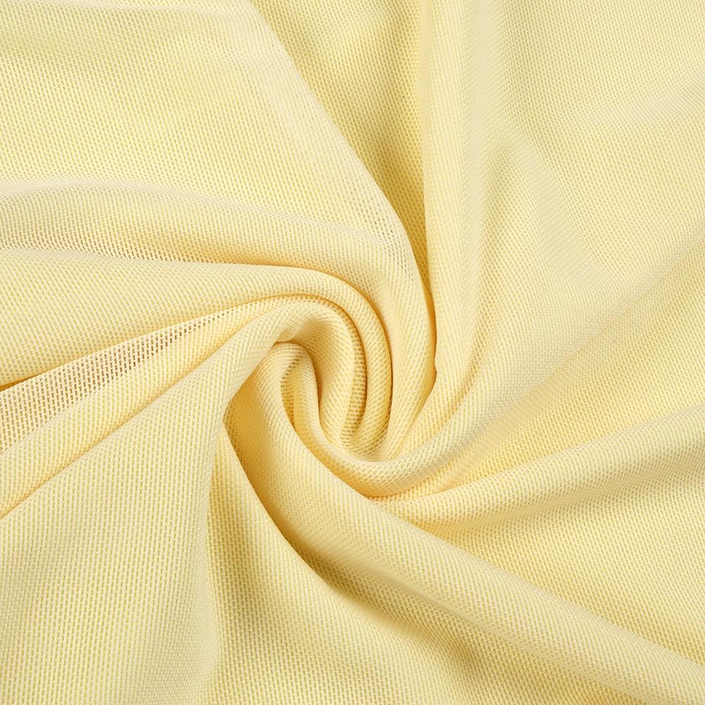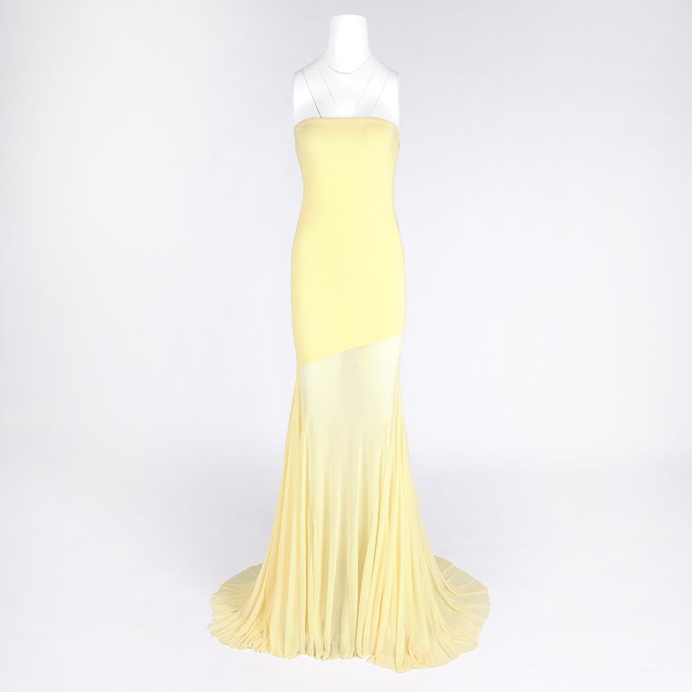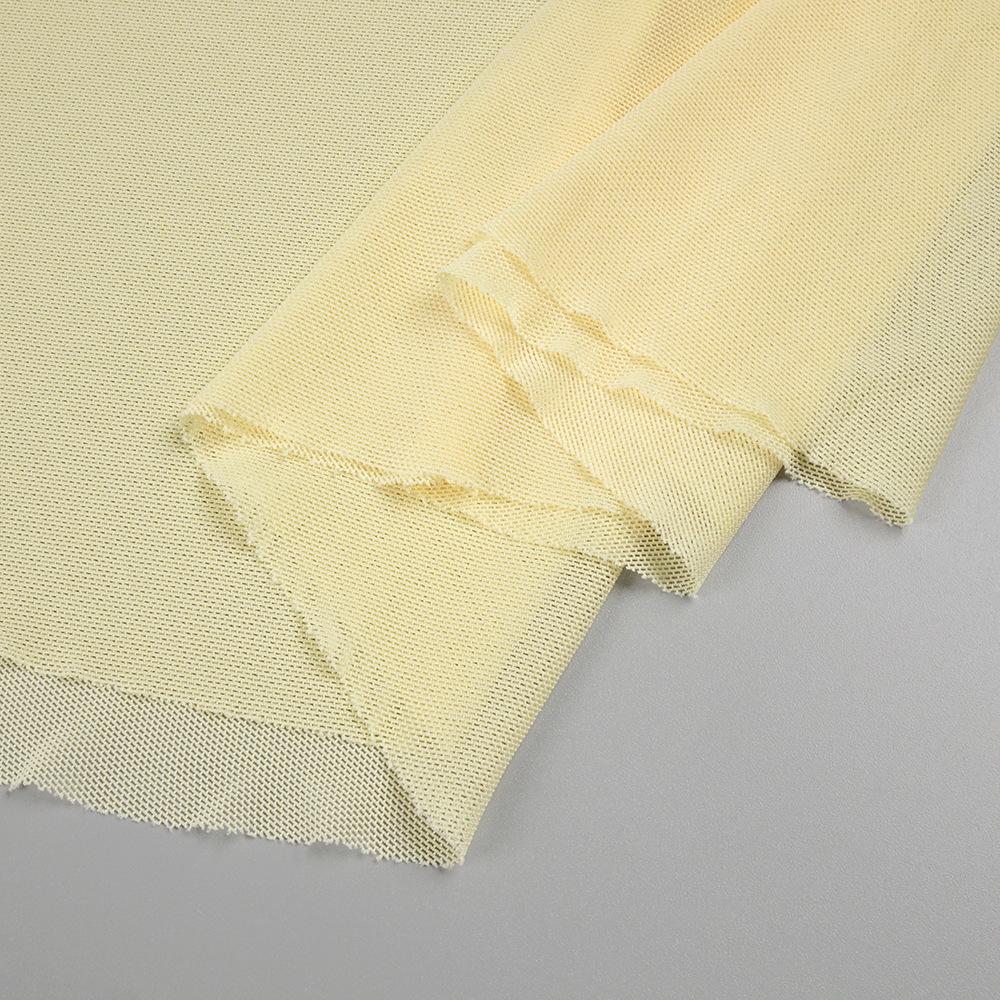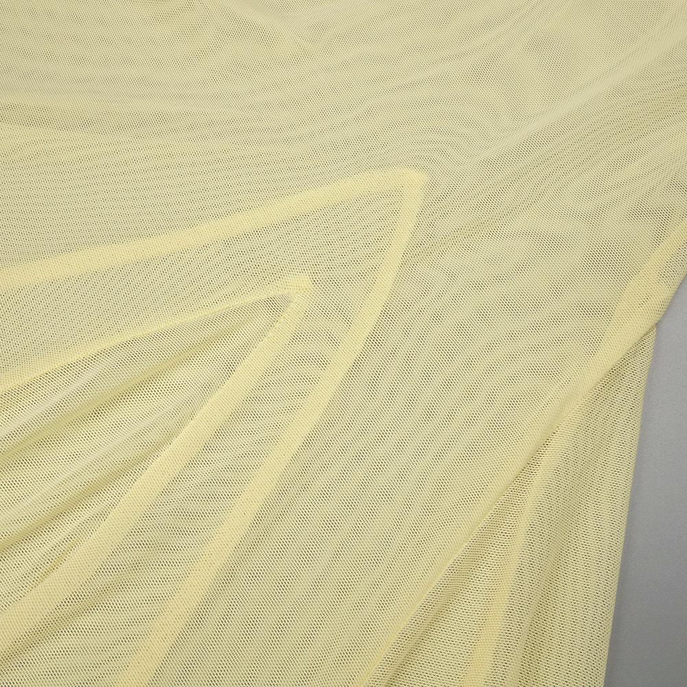 Vestido strapless de retazos de malla de seda de hielo amarillo claro de nuevo estilo suave europeo y americano para mujer, falda grande, ajuste ceñido, vestido con drapeado en la cadera