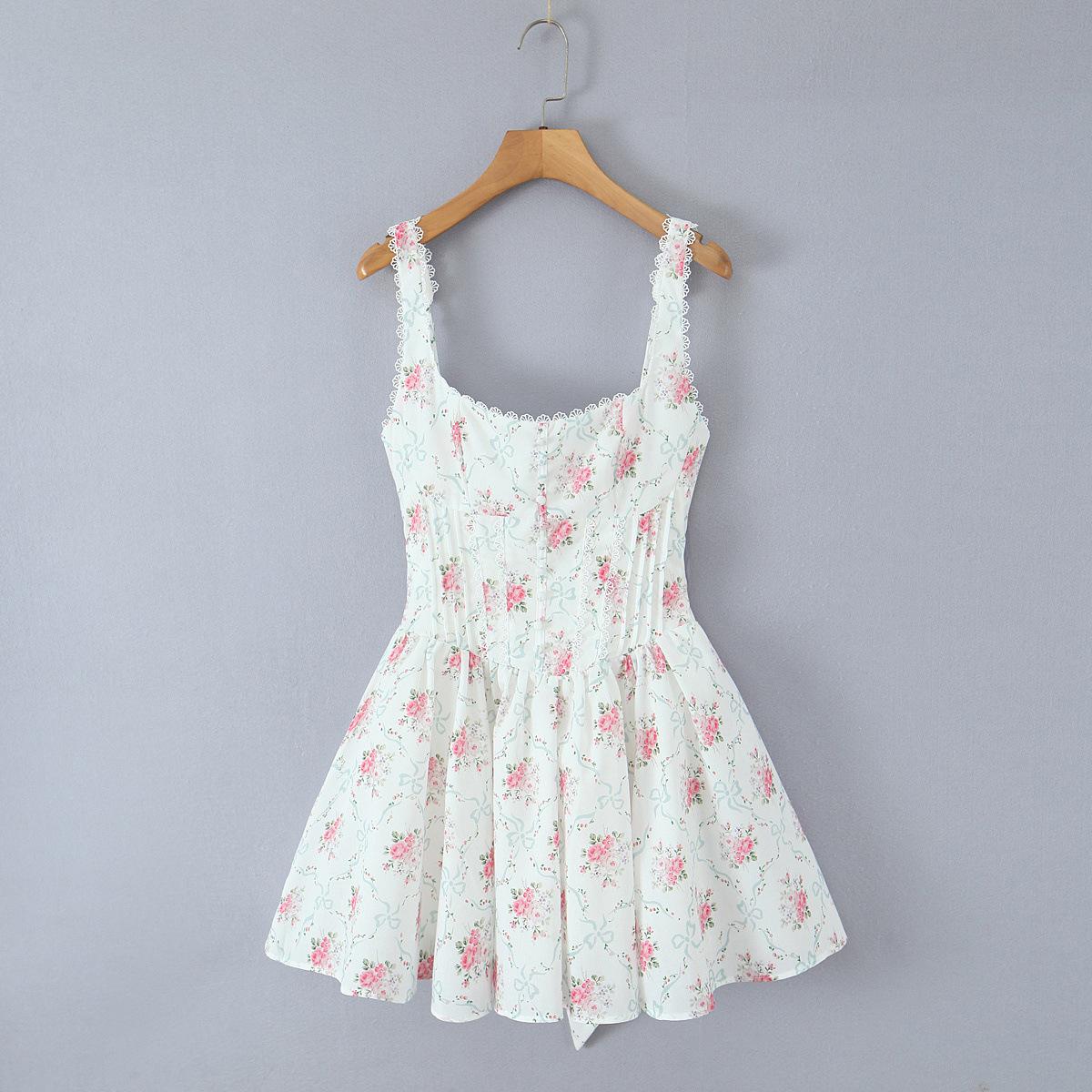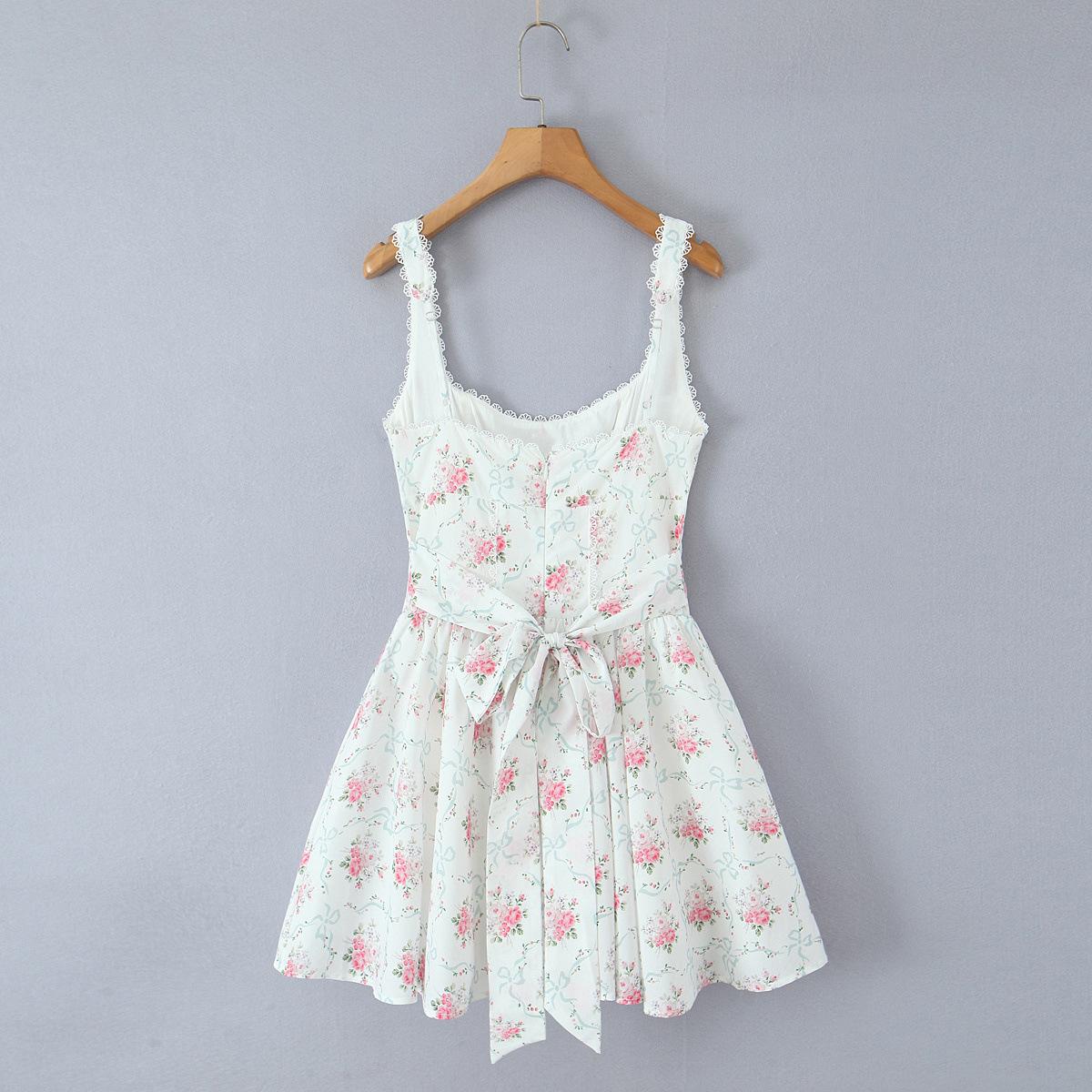 Exportación Transfronteriza Ropa de Mujer 2025 Verano Estilo Europeo y Americano Encaje Costuras Cinturón Vestido Corto para Mujer C27563