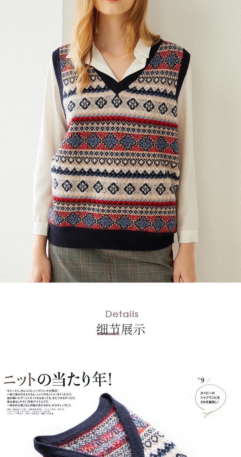 Chaleco holgado retro literario para mujer 100% cachemira pura, suéter de punto versátil, nuevo top sin mangas estilo universitario para otoño e invierno