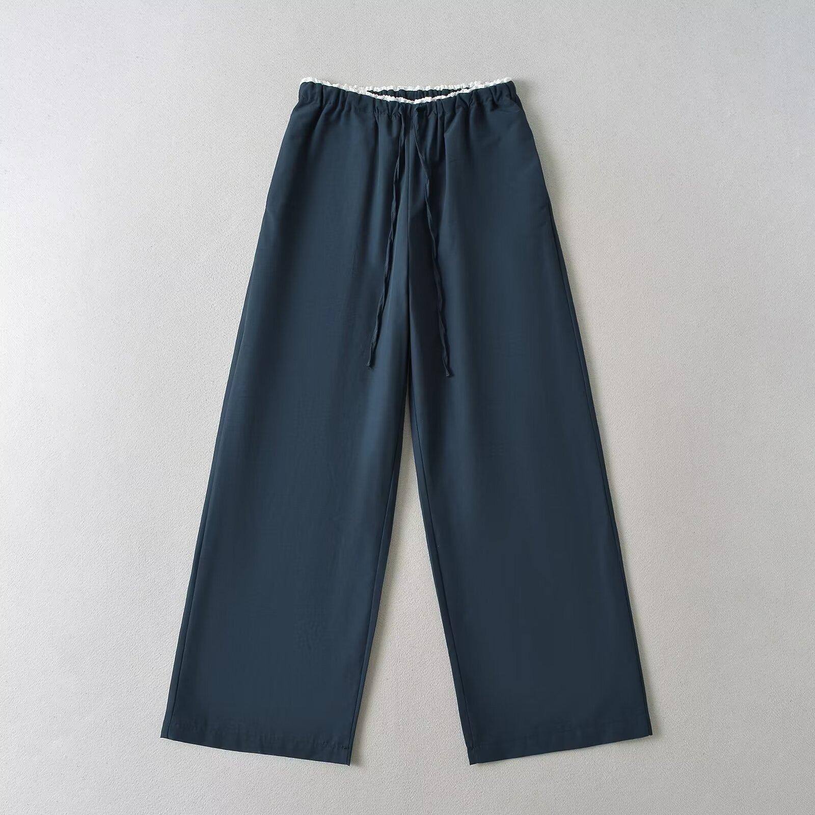 Pantalones Deportivos Holgados Rectos de Moda Perezosa Falsa de Dos Piezas de Cintura Alta Adelgazantes de Pierna Ancha para Mujer Otoño 2024 Pantalones Rectos Holgados Pantalones de Chándal
