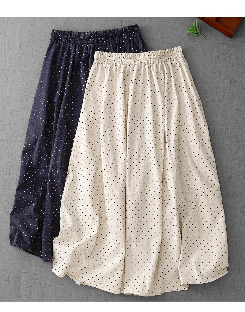 Estilo Literario Falda de Lunares Onda Retro Falda Paraguas Vestido Largo de Línea A Adelgazante de Cintura Alta para Mujer Primavera Verano 2025 Combinable