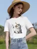 Top Holgado con Estampado de Gato Estilo Coreano para Mujer Verano 2025 Algodón Pesado Manga Corta Hombro Derecho Diseño Versátil Camiseta