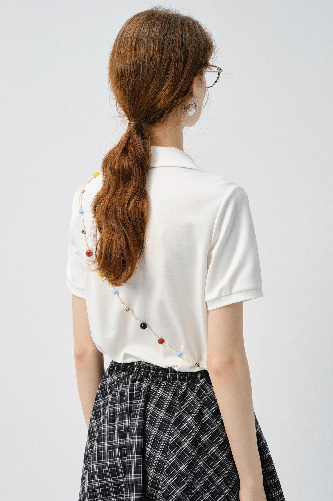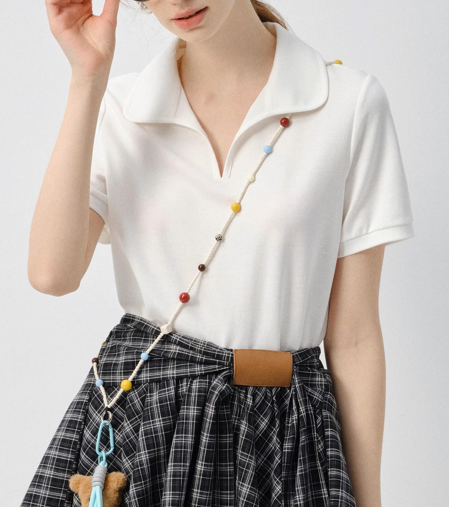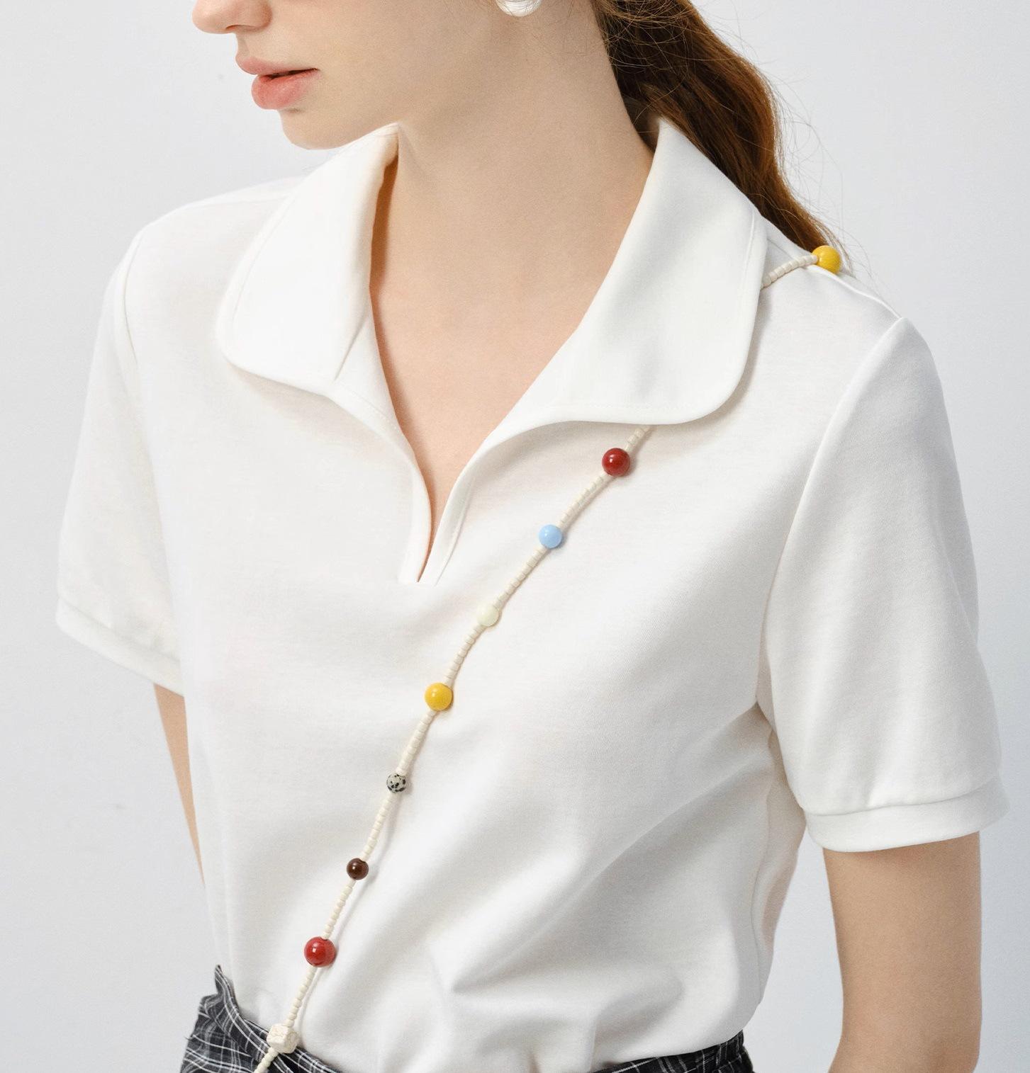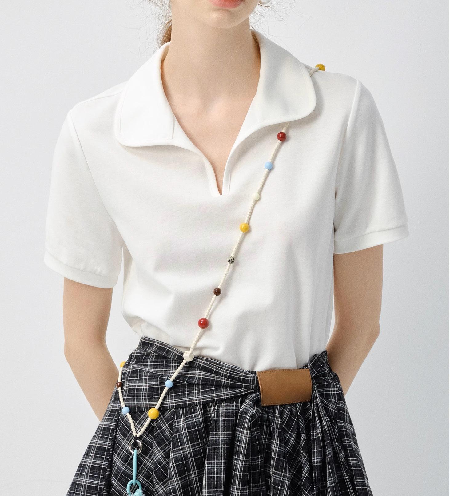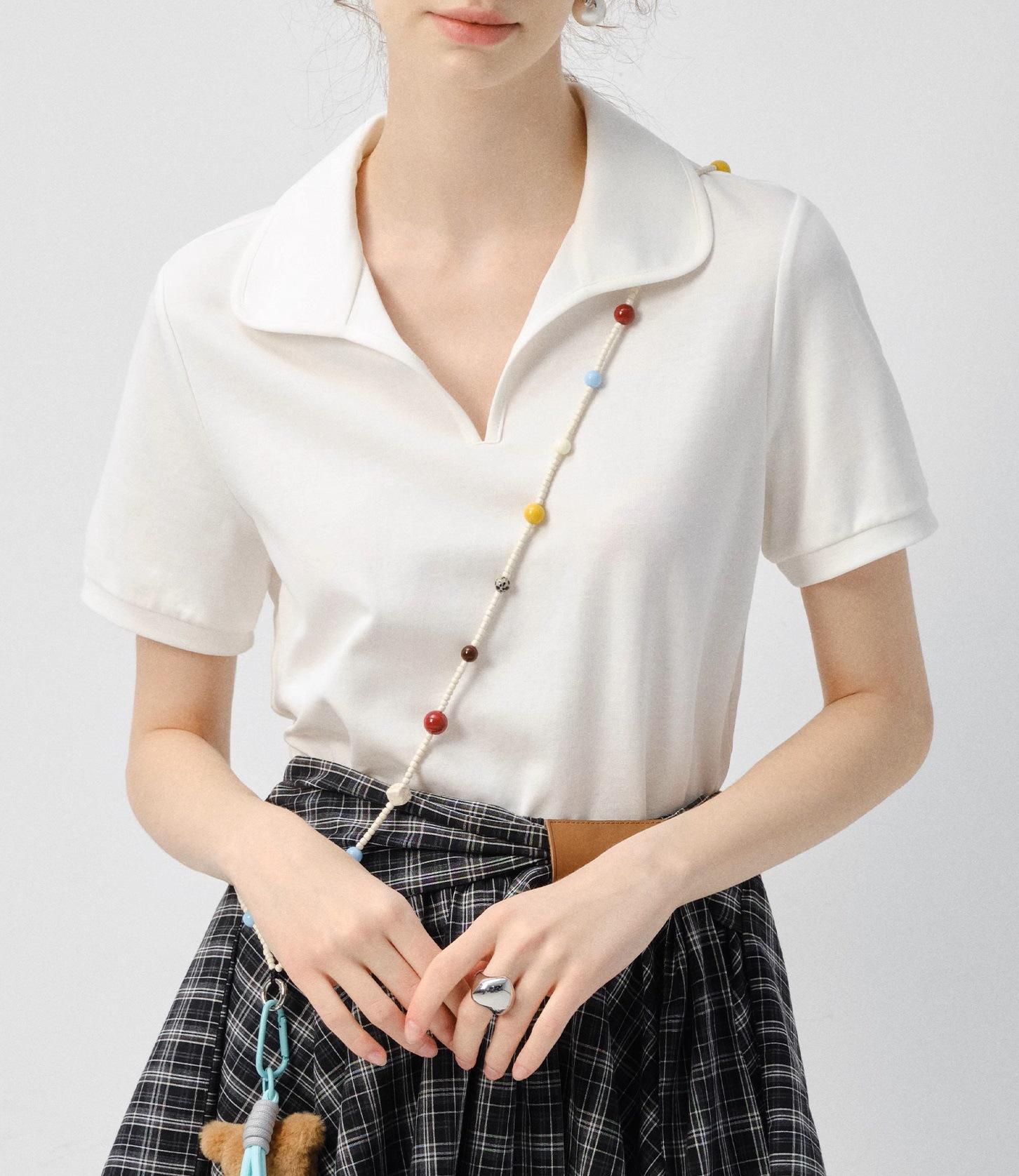Camiseta de manga corta Mujer 2025 Verano Nuevo Color Sólido Camisa Polo Casual Combinable Top de Hombro