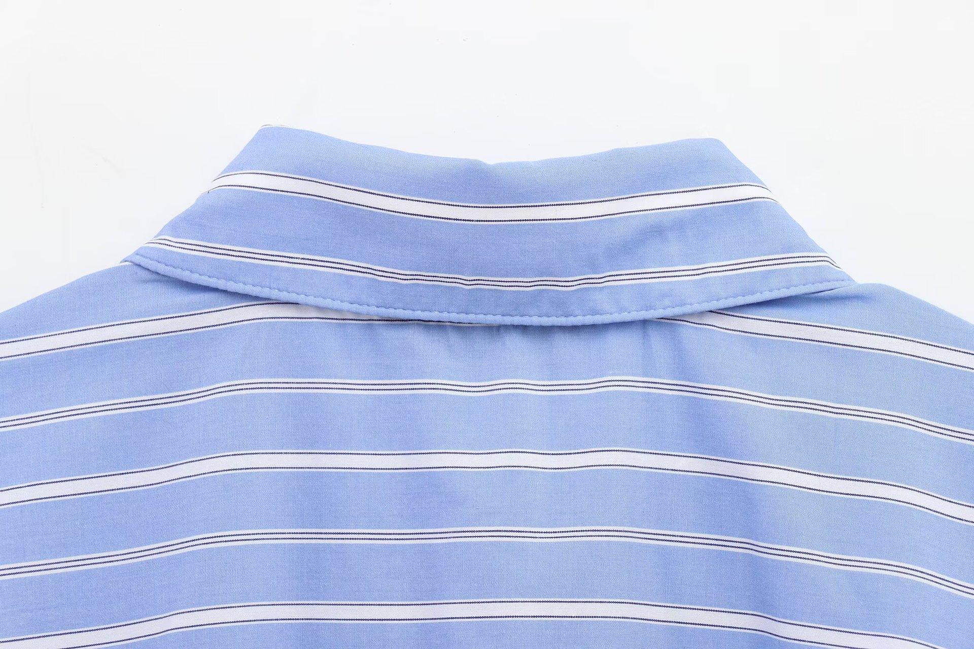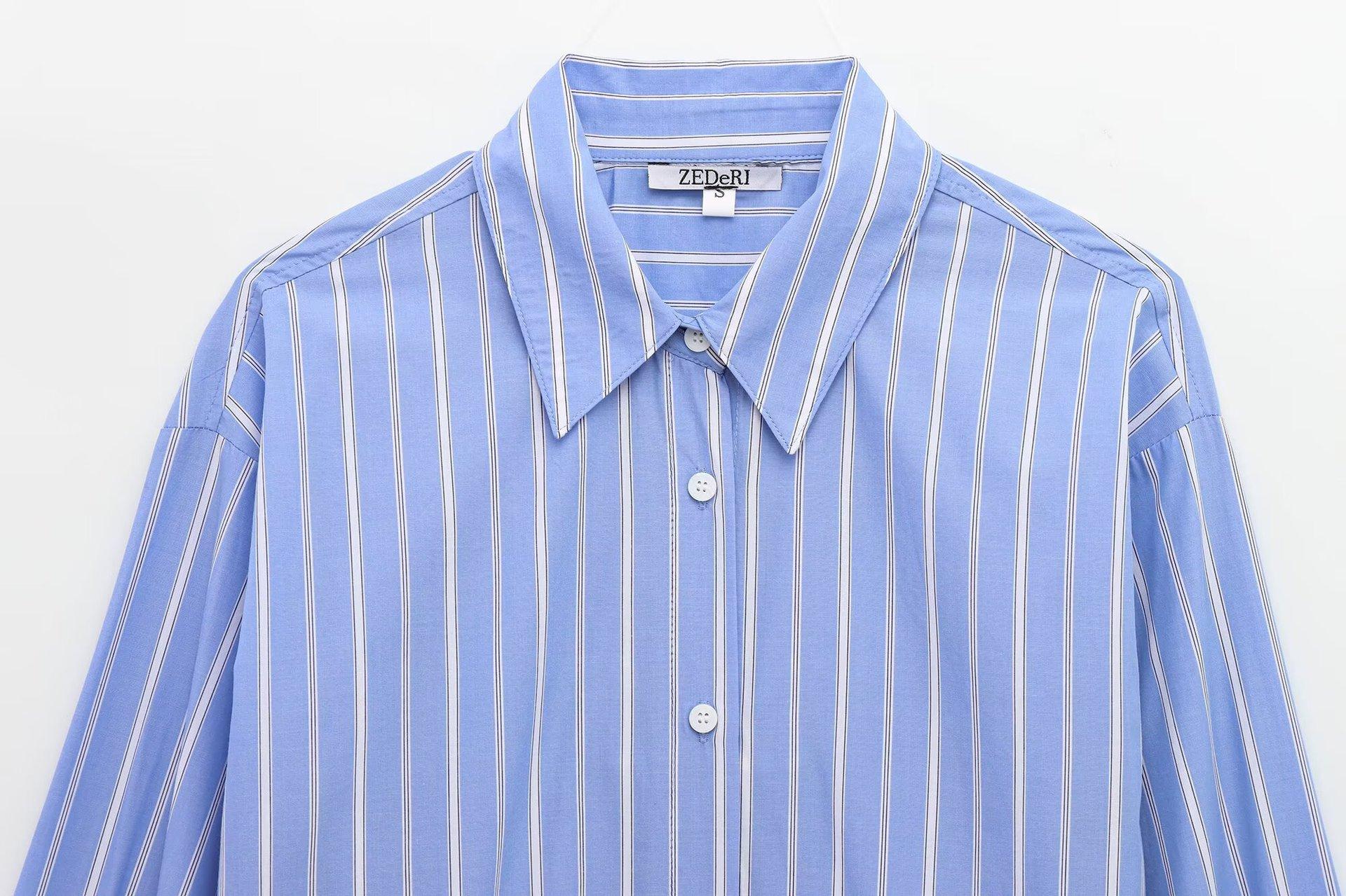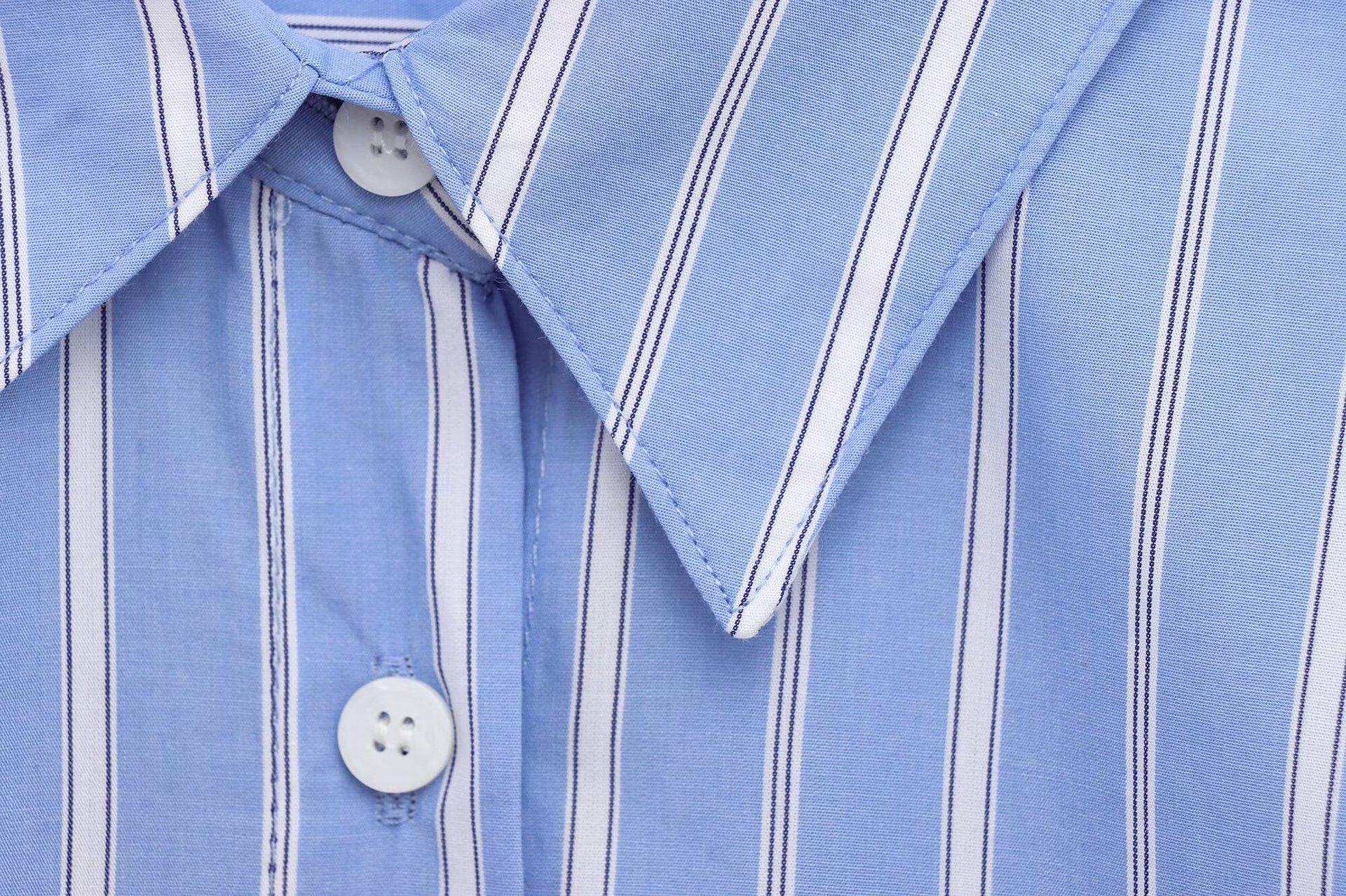 Camisa Popelina Rayada Versátil Casual Simple de Moda Popular Europea y Americana Transfronteriza