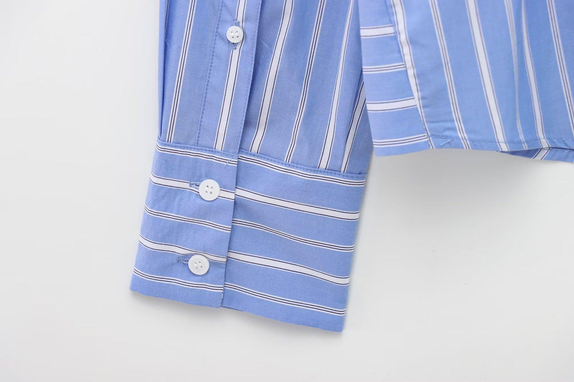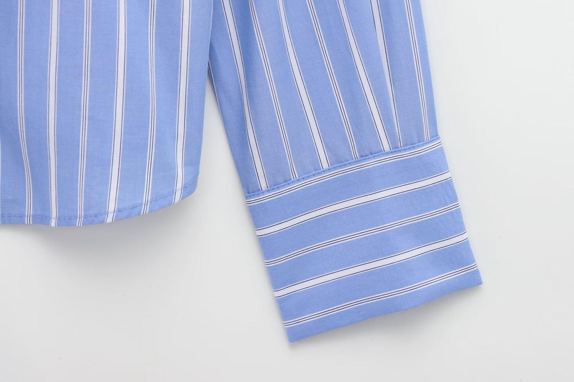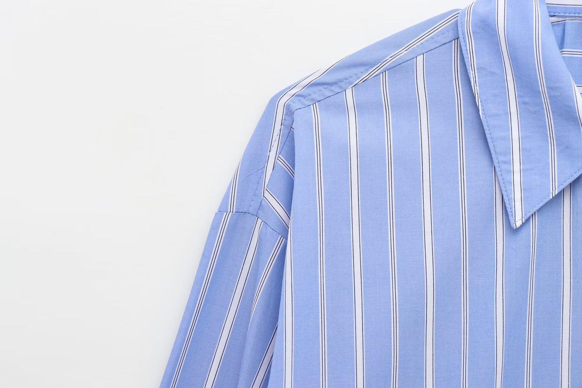 Camisa Popelina Rayada Versátil Casual Simple de Moda Popular Europea y Americana Transfronteriza