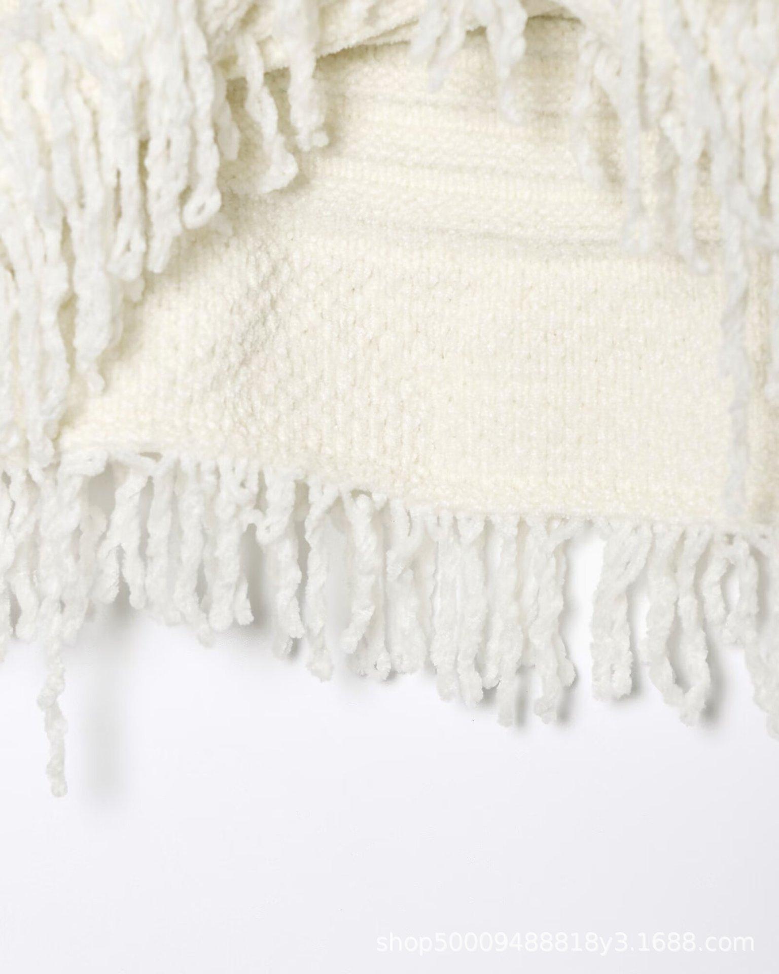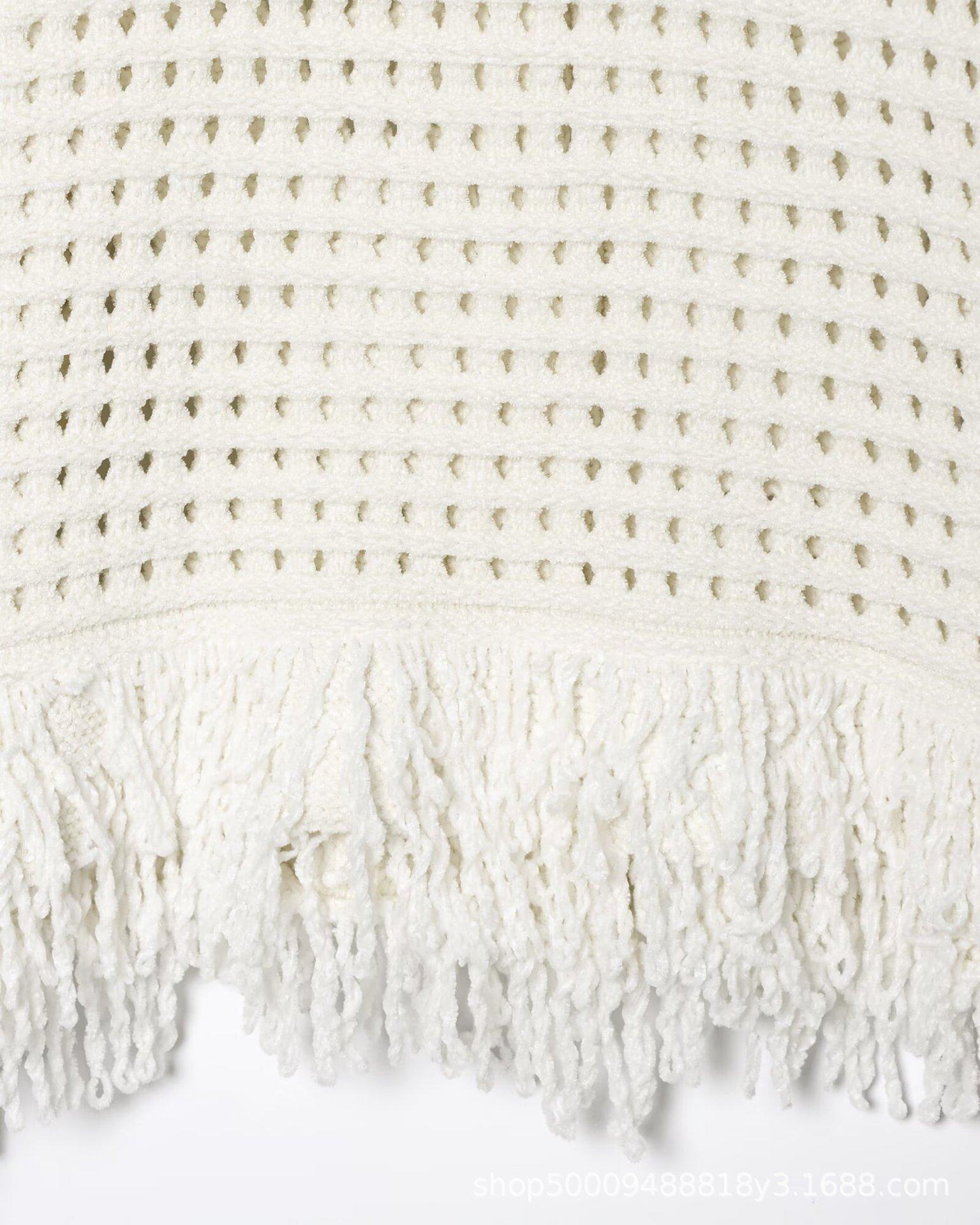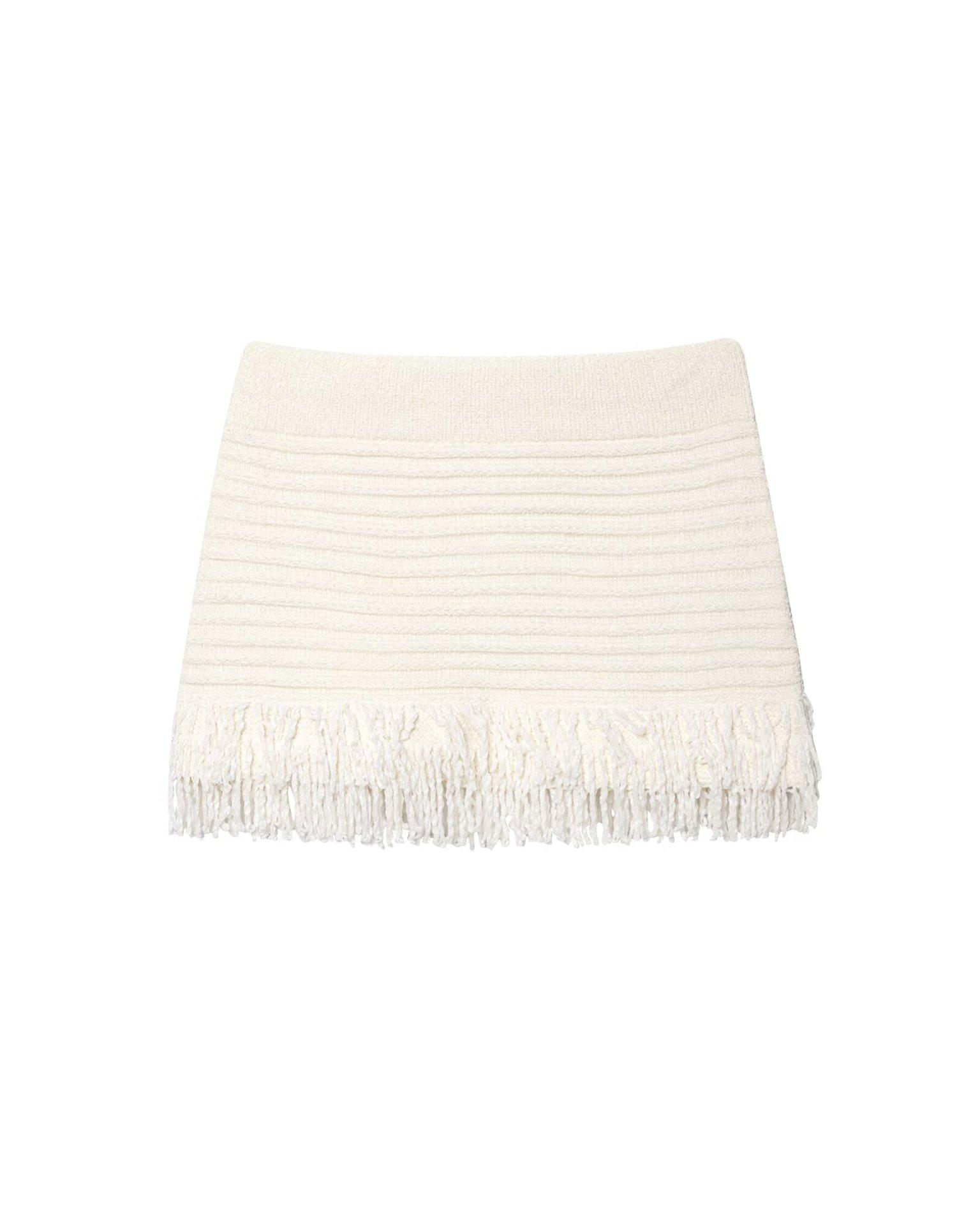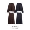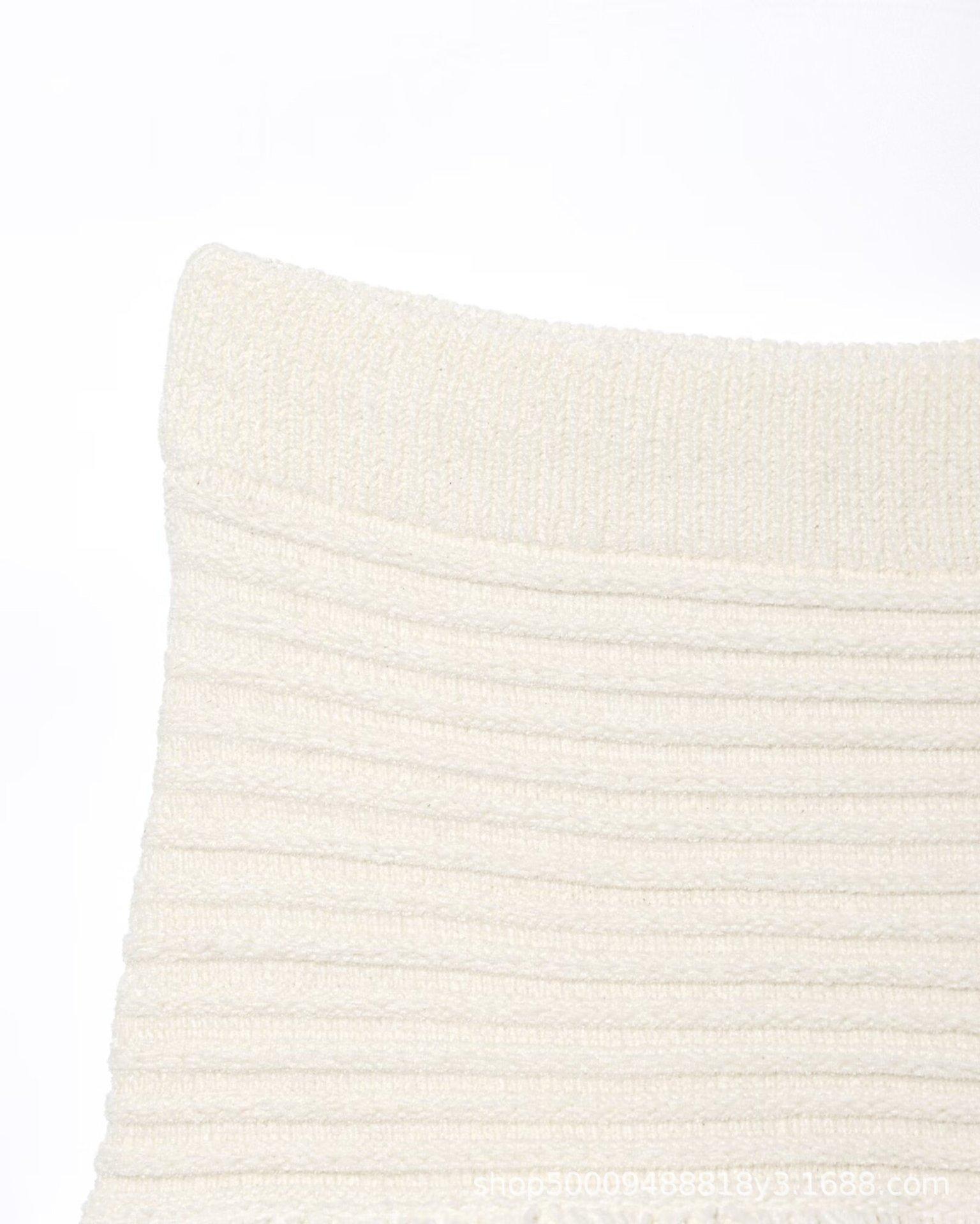 Comercio Exterior Mujeres Primavera y Verano Estilo Europeo y Americano Chaqueta Tejida de Solapa de Manga Corta Decorada con Flecos + Traje de Falda Tejida