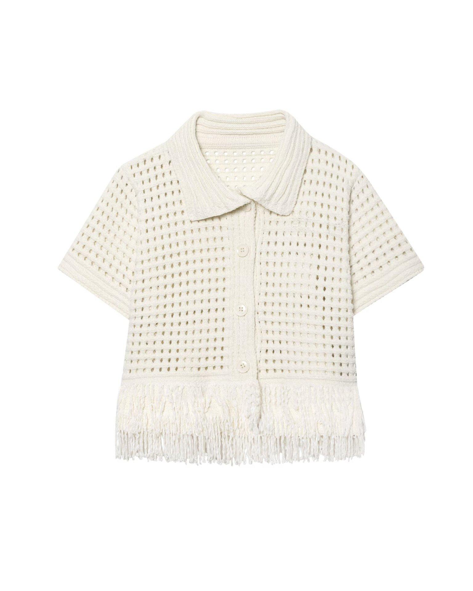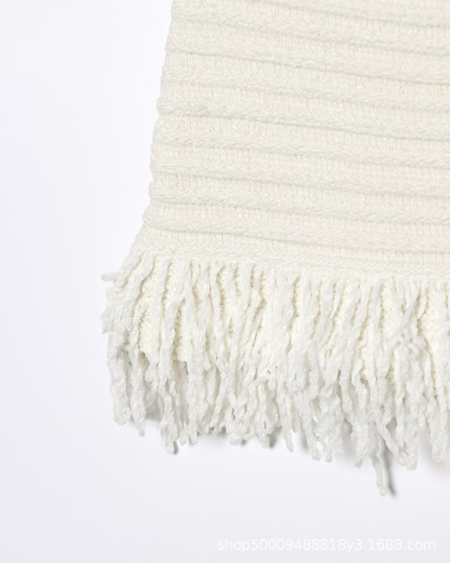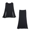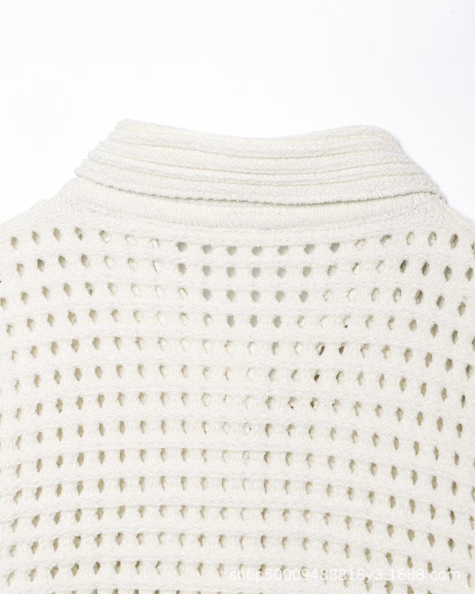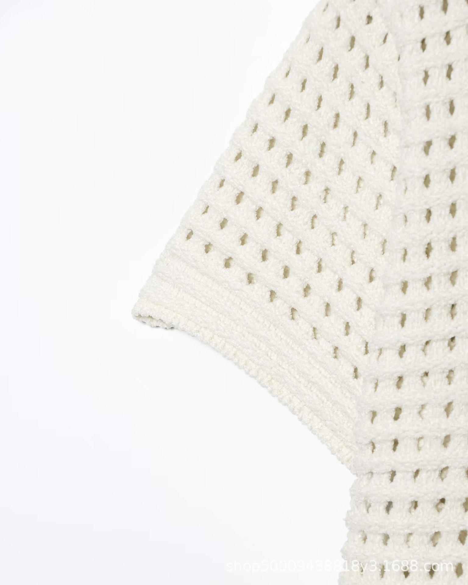 Comercio Exterior Mujeres Primavera y Verano Estilo Europeo y Americano Chaqueta Tejida de Solapa de Manga Corta Decorada con Flecos + Traje de Falda Tejida